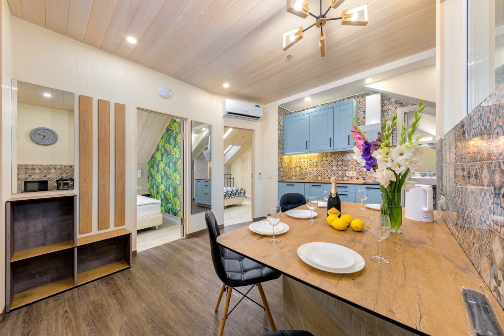 Отель открылся 18 августа 2018 года, а его здание и территория выполнены в европейском стиле. На территории есть круглогодичный бассейн с джакузи и финской сауной. Вокруг бассейна расположен ряд шезлонгов. Беседка со столом и мангалом для приготовления шашлыка. В высокий сезон питание организуется по системе «шведский стол», а в низкий — континентальные завтраки. Свежемолотый кофе можно приготовить по своему вкусу на кофемашине. Для самых маленьких гостей во дворе есть игровая зона, а для взрослых — лаунж-зона для вечернего отдыха. Вся территория облагорожена разнообразием цветов. Цветочные перголы, лавочки, качели. Для гостей, путешествующих на автомобиле, предусмотрена платная парковка на территории Виллы по предварительному бронированию и бесплатная за её пределами под видеонаблюдением при наличии свободных мест. Установлено сантехническое, отопительное и охлаждающее оборудование.