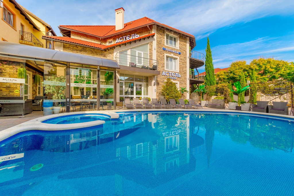 Отель «Астель Вилла» находится на первой береговой линии, в 100 м от моря и набережной, в центре города Геленджик. Парк аттракционов, океанариум, магазины, кафе, рестораны и столовые находятся в шаговой доступности.