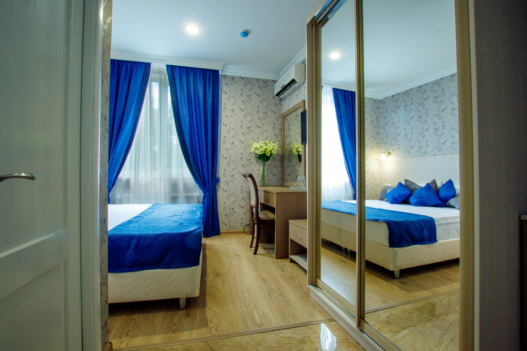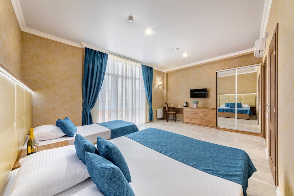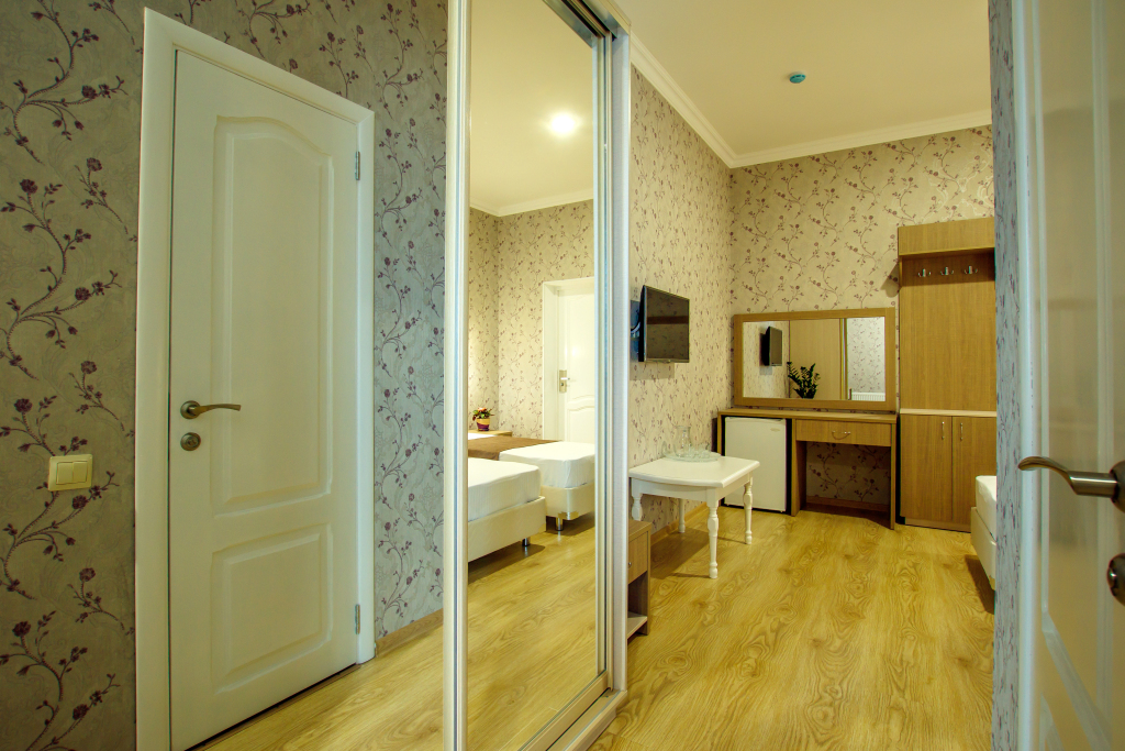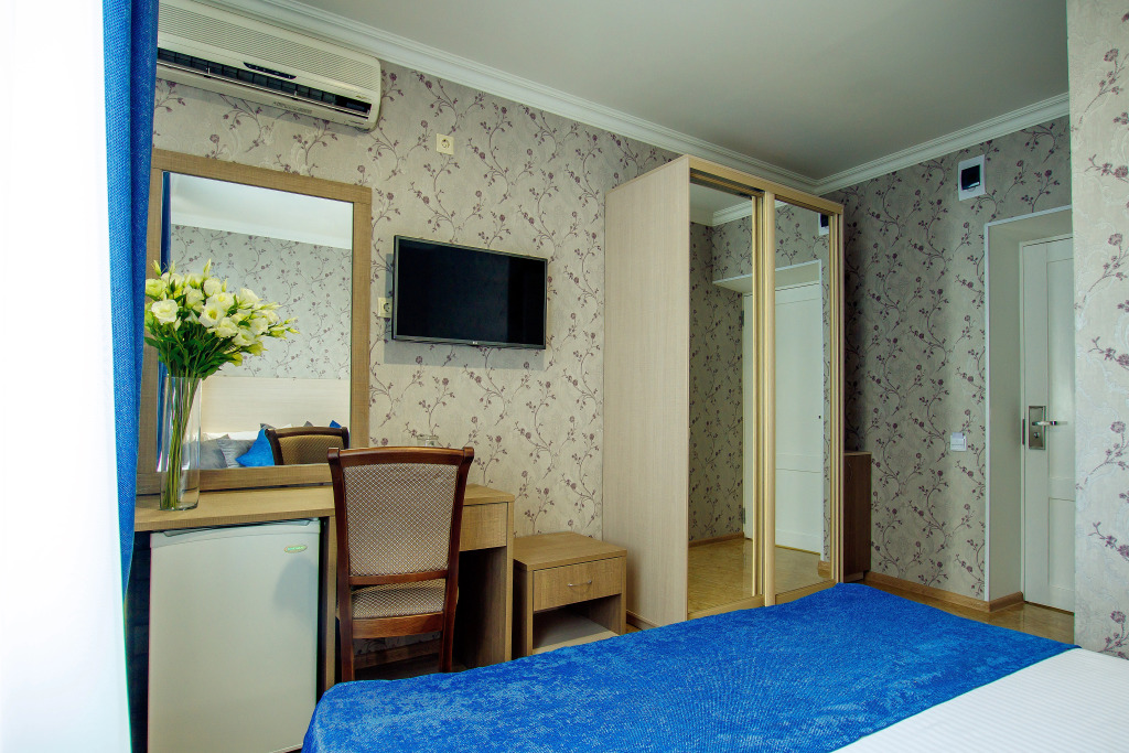 В номере вы найдёте телевизор, мини-бар и халат. Перечисленные услуги есть не во всех номерах.