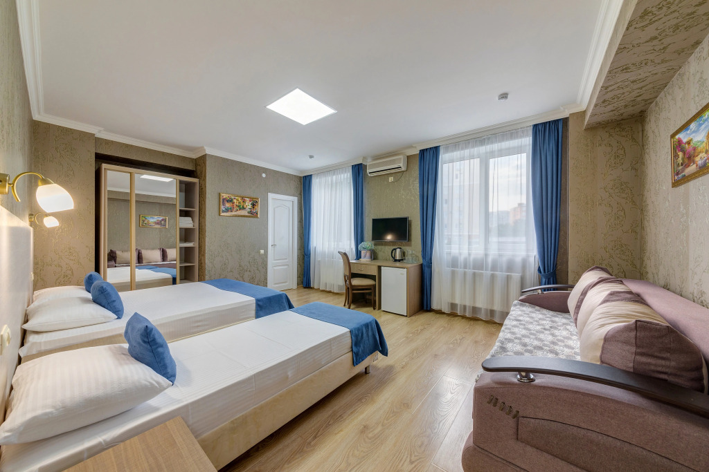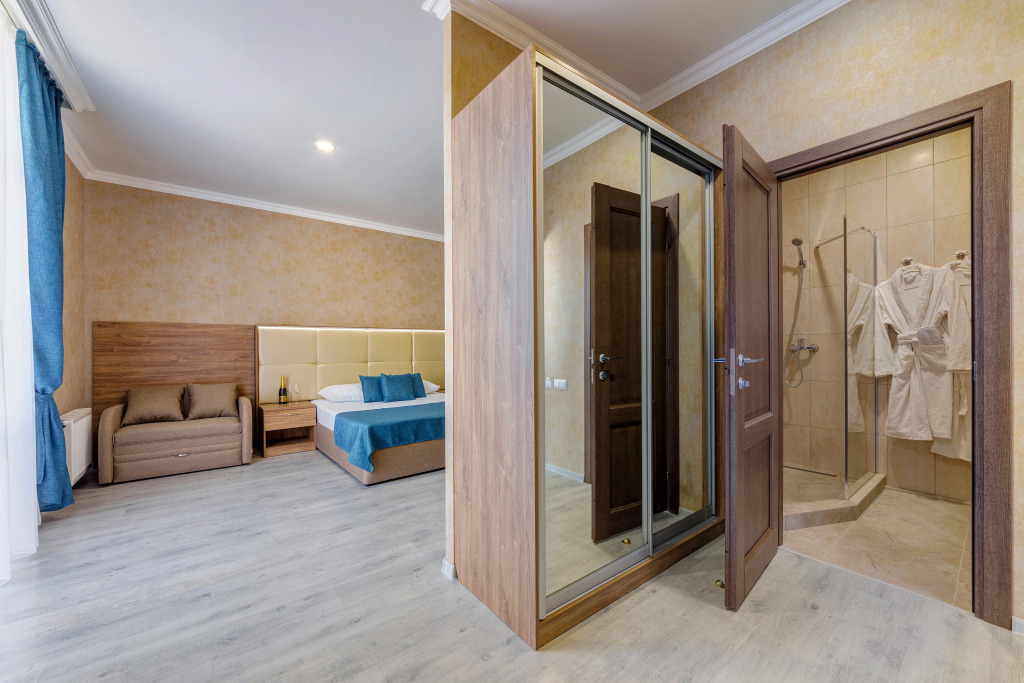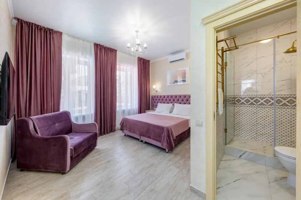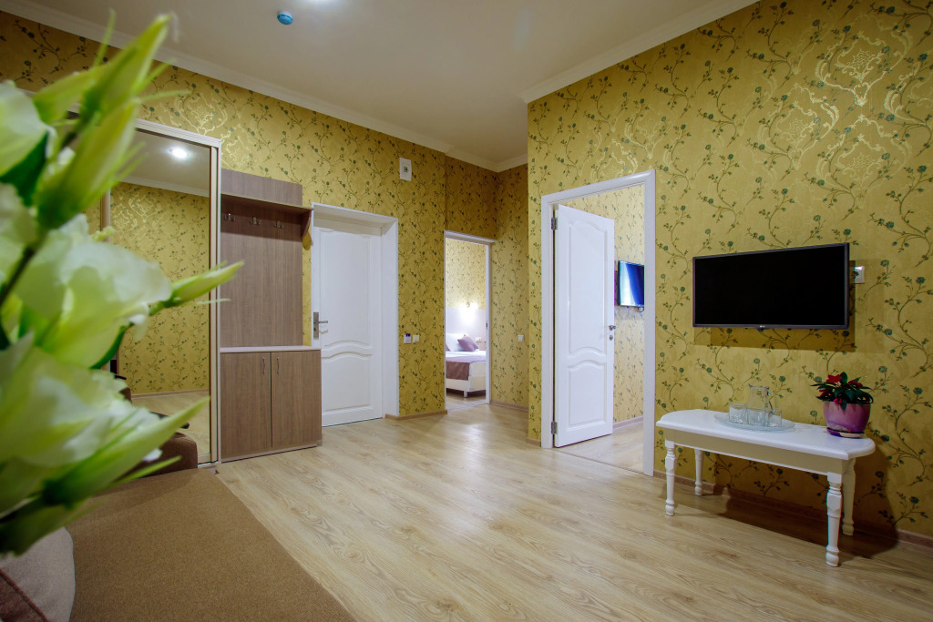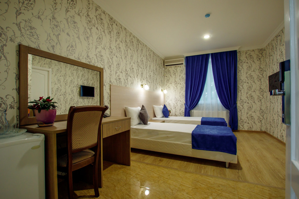 В номере вы найдёте телевизор, мини-бар и халат. Перечисленные услуги есть не во всех номерах.