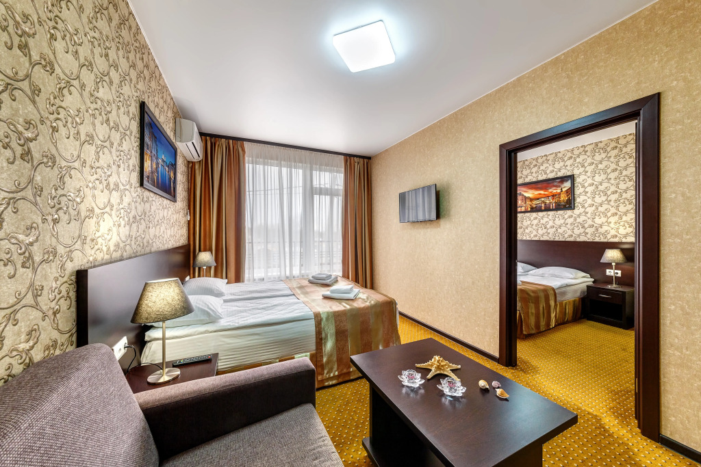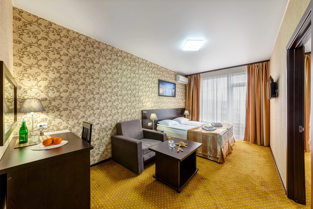 Номер уютно обставлен и оснащён необходимым, чтобы отдохнуть после долгого и насыщенного дня. Имеются телевизор. Оснащение зависит от выбранной категории номера.