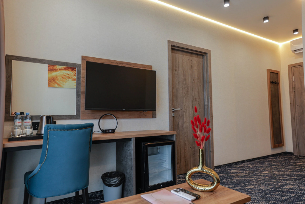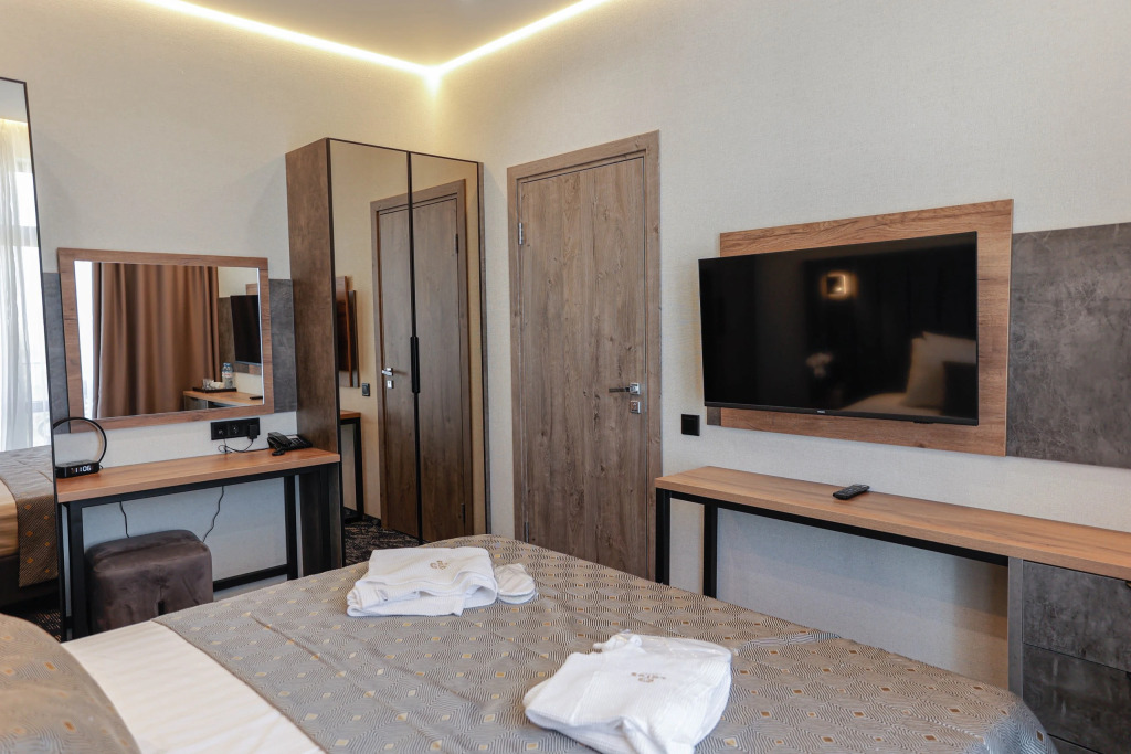 Чтобы вы могли отдохнуть после долгого дня, в номере есть телевизор и халат. Перечисленные услуги есть не во всех номерах.