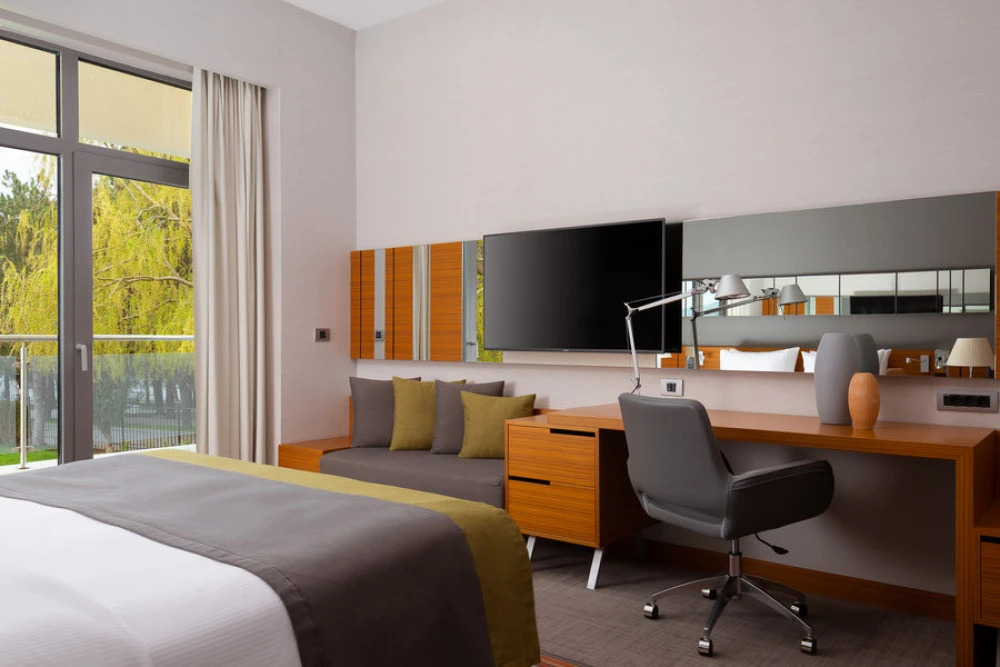 В номере вас будут ждать будильник, душ, телевизор, мини-бар, халат и тапочки. Оснащение зависит от выбранной категории номера.