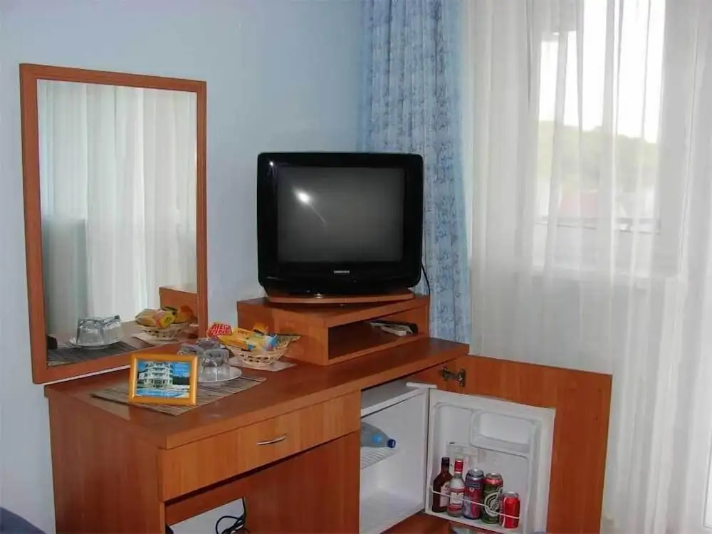 В номере вас будут ждать телевизор, мини-бар и халат. Оснащение зависит от выбранной категории номера.