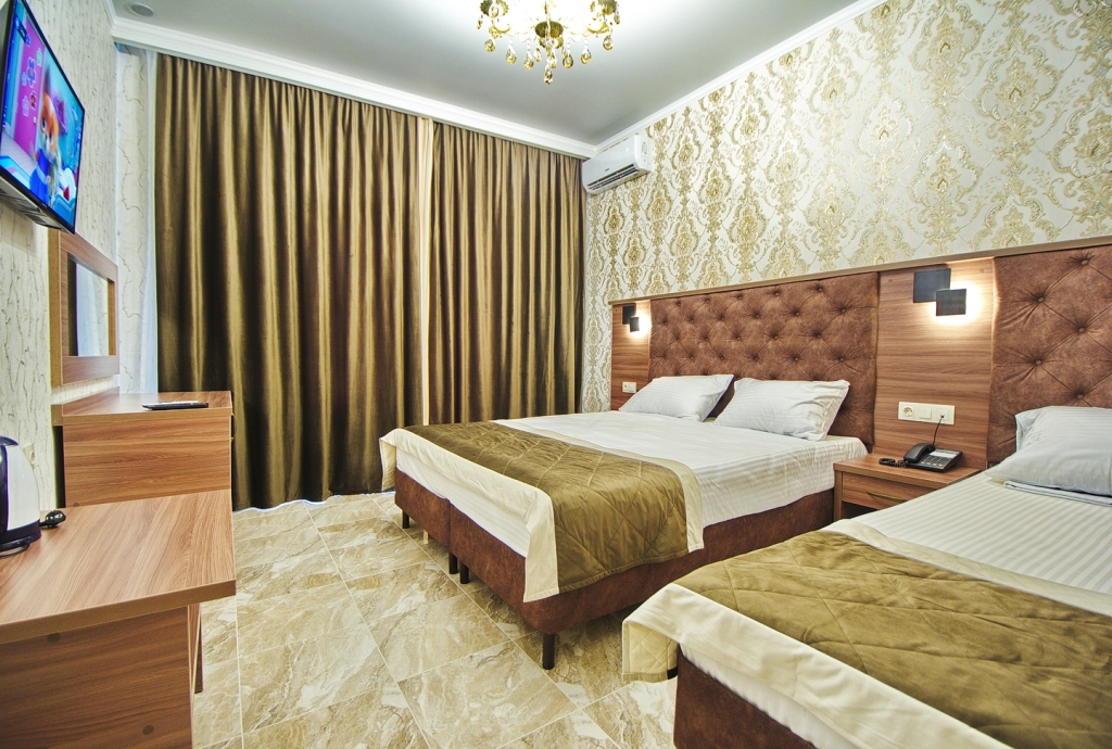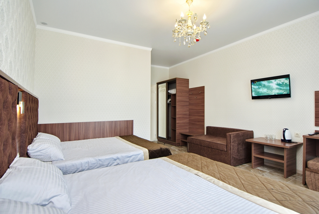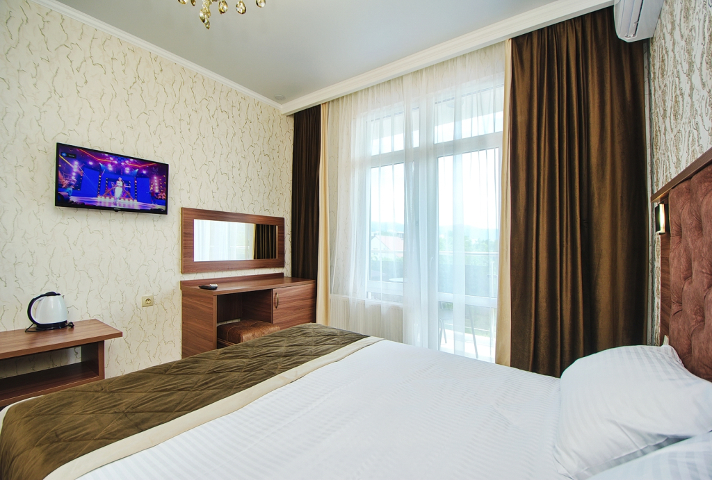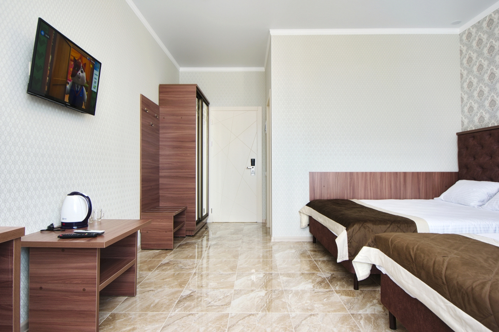 В номере вас будут ждать халат. Оснащение зависит от выбранной категории номера.