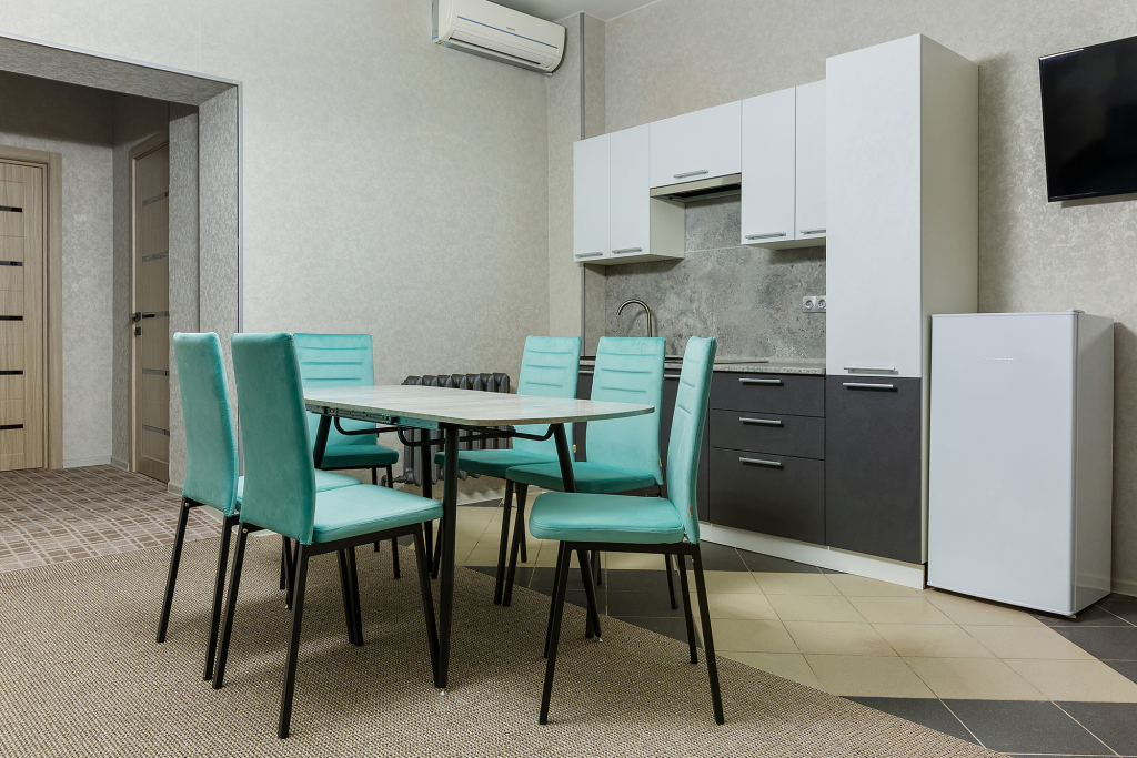 В номере вас будут ждать телевизор и халат. Оснащение зависит от выбранной категории номера.