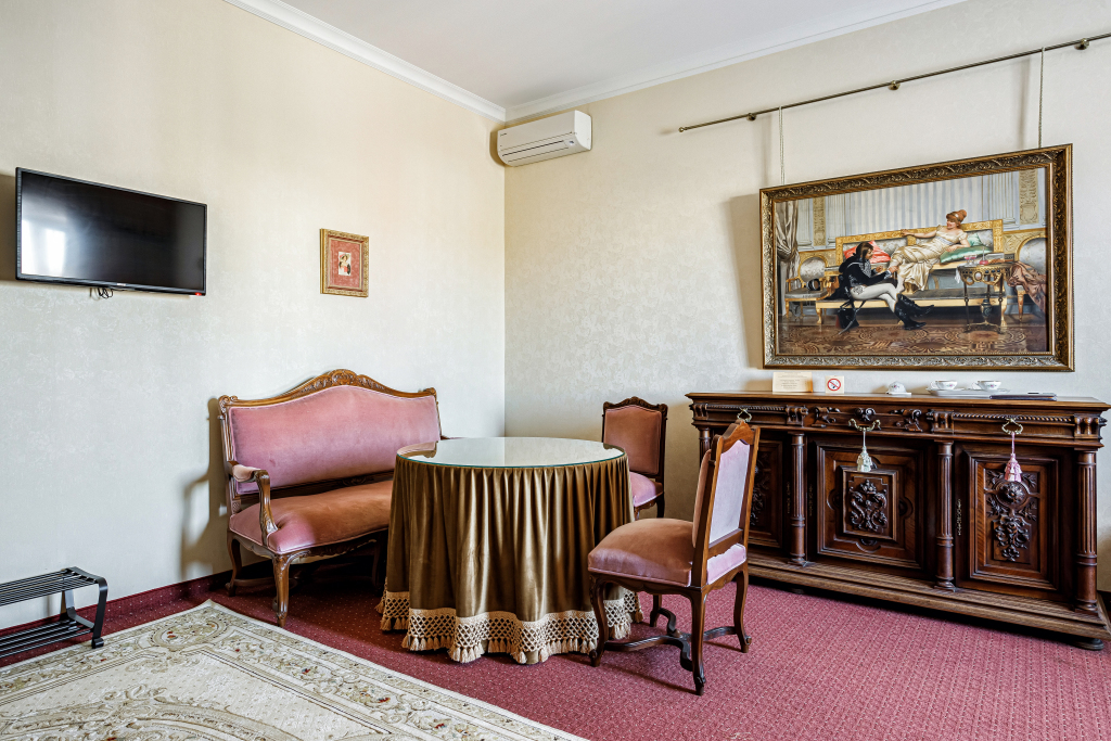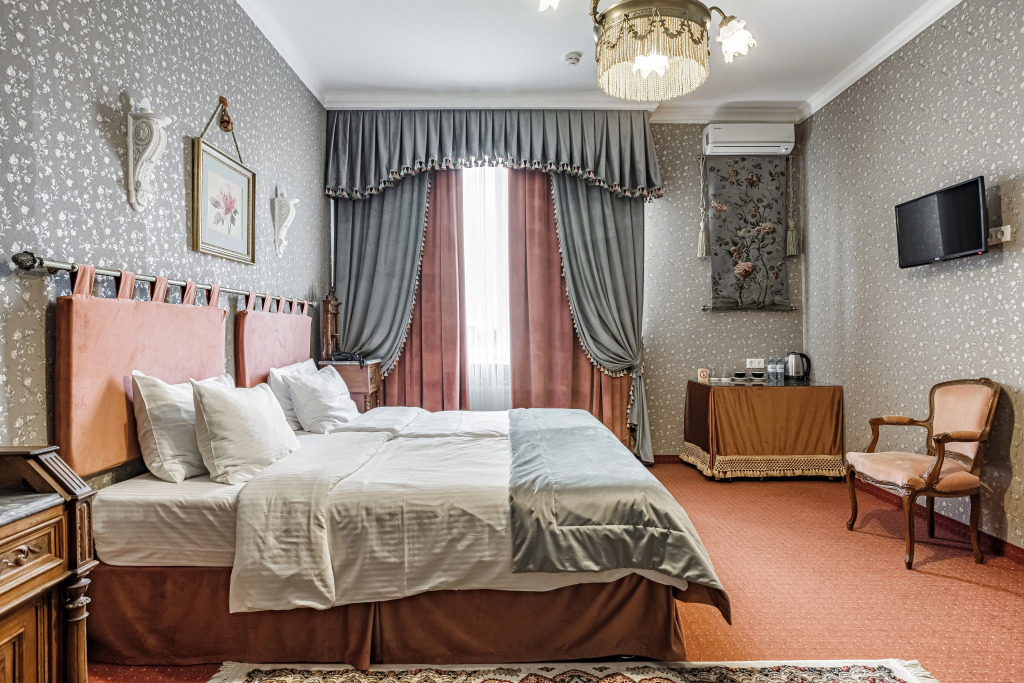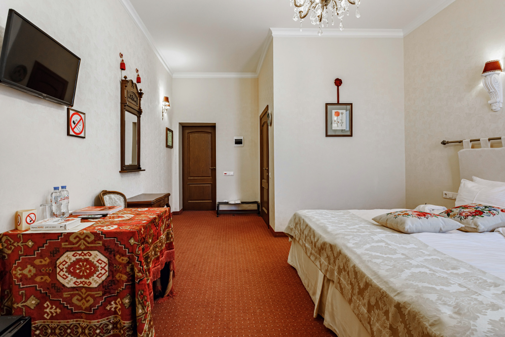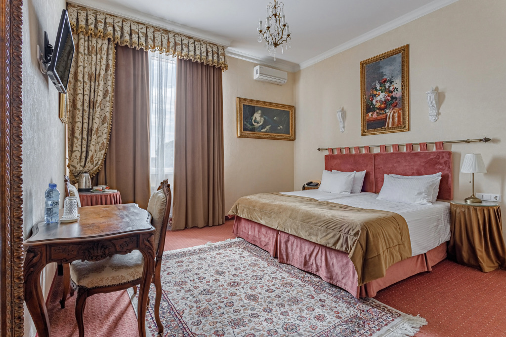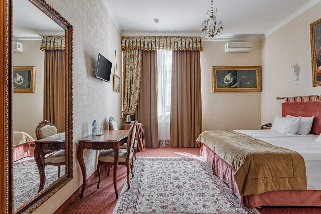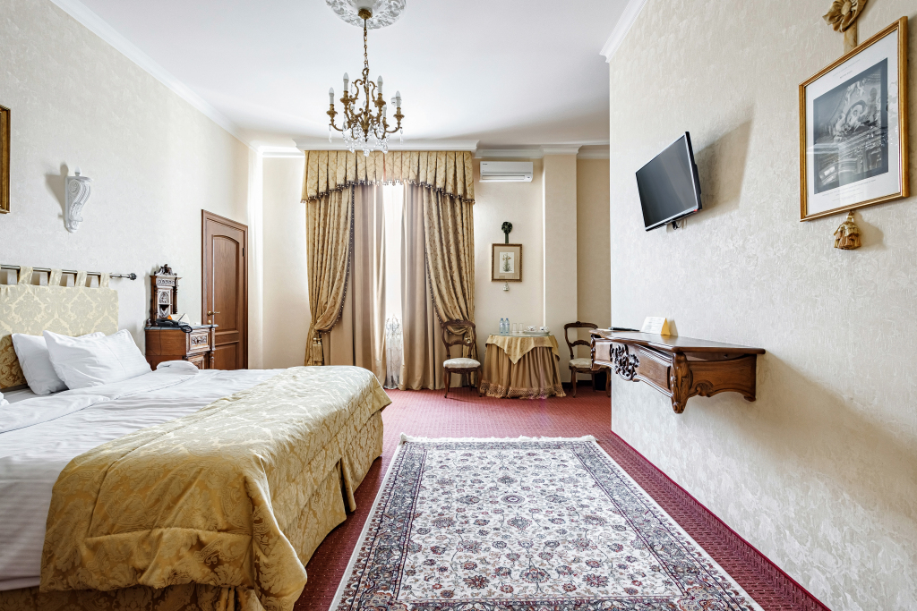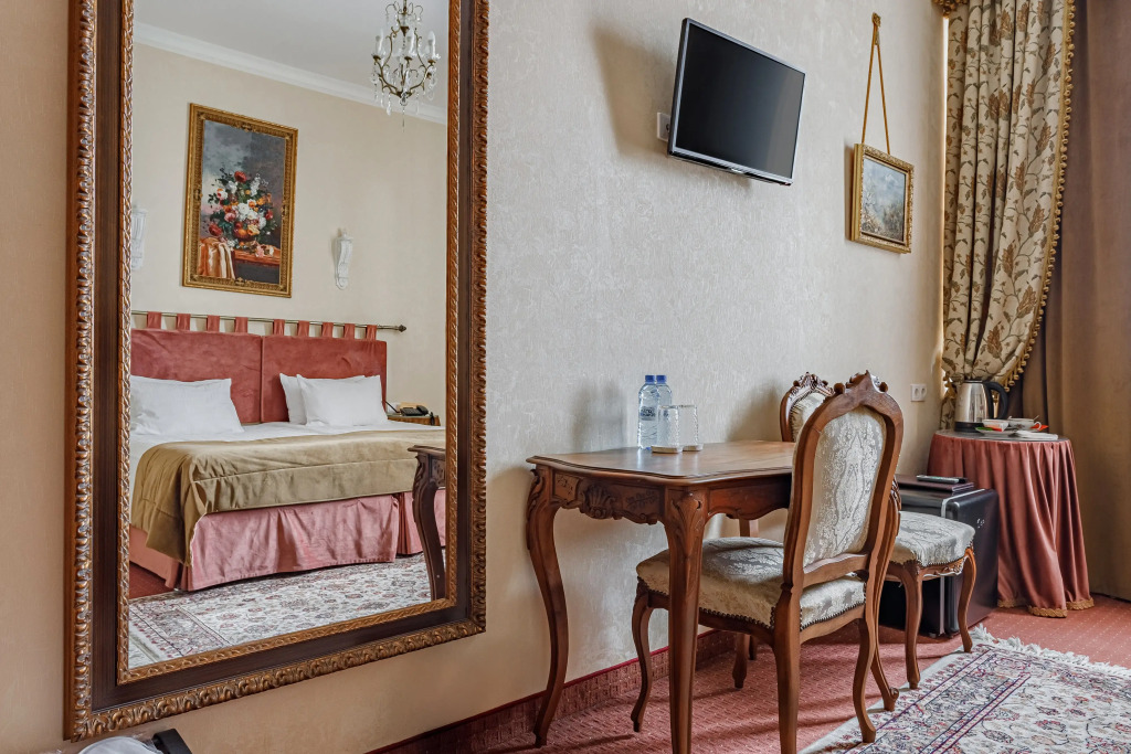 В номере вас будут ждать телевизор, мини-бар и халат. Перечисленные услуги есть не во всех номерах.
