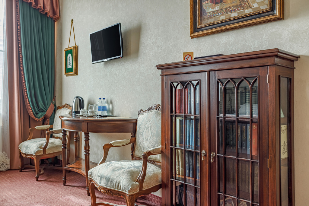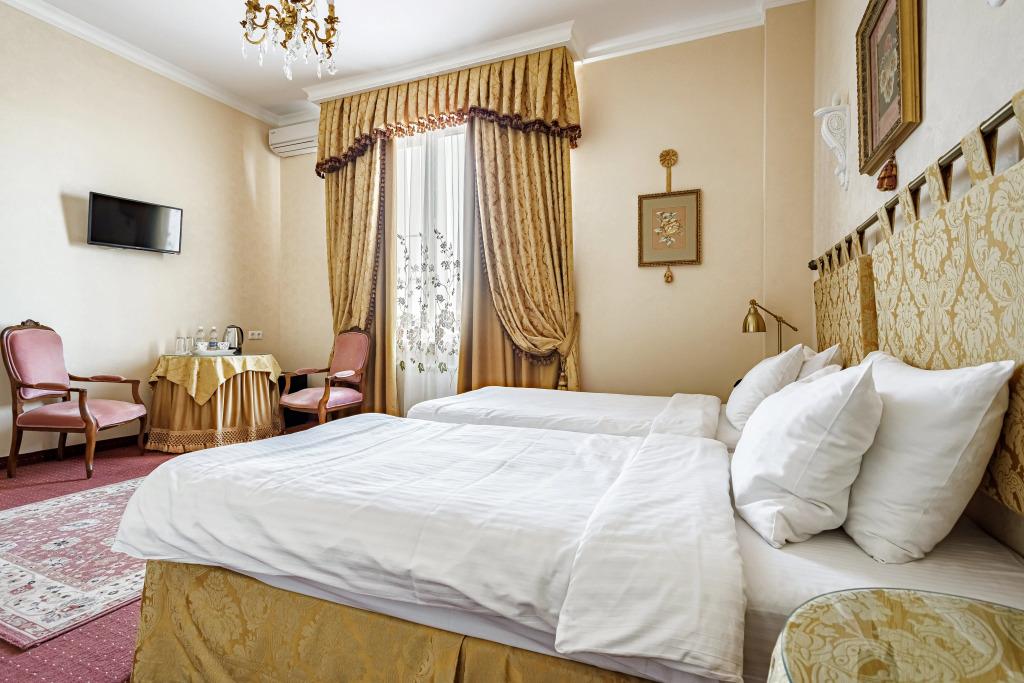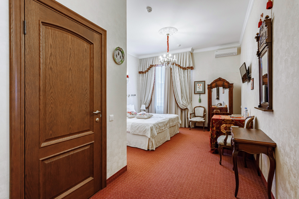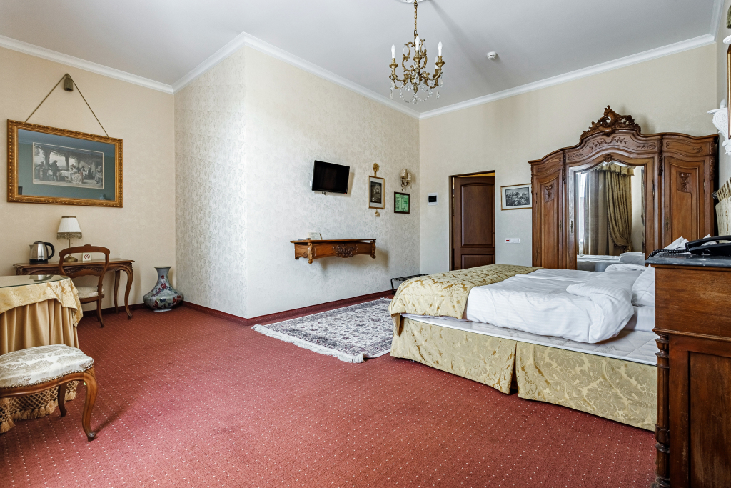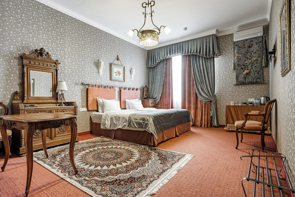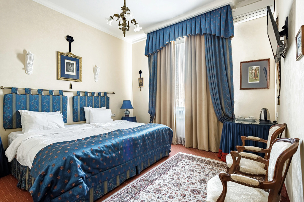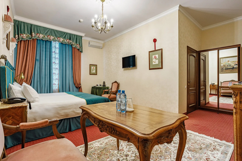 В номере вас будут ждать телевизор, мини-бар и халат. Перечисленные услуги есть не во всех номерах.