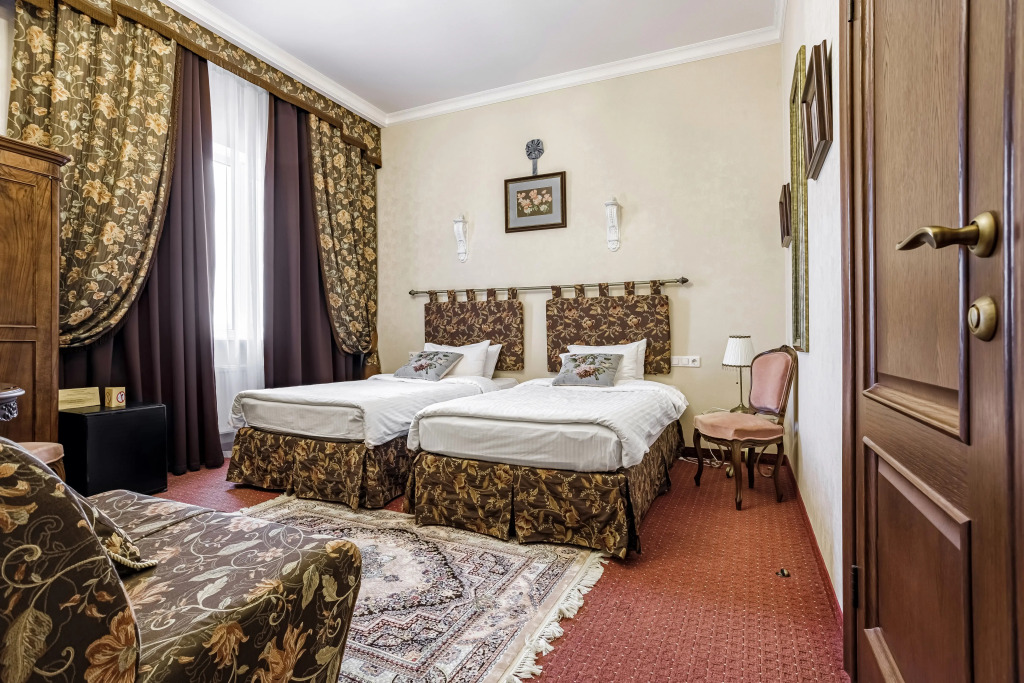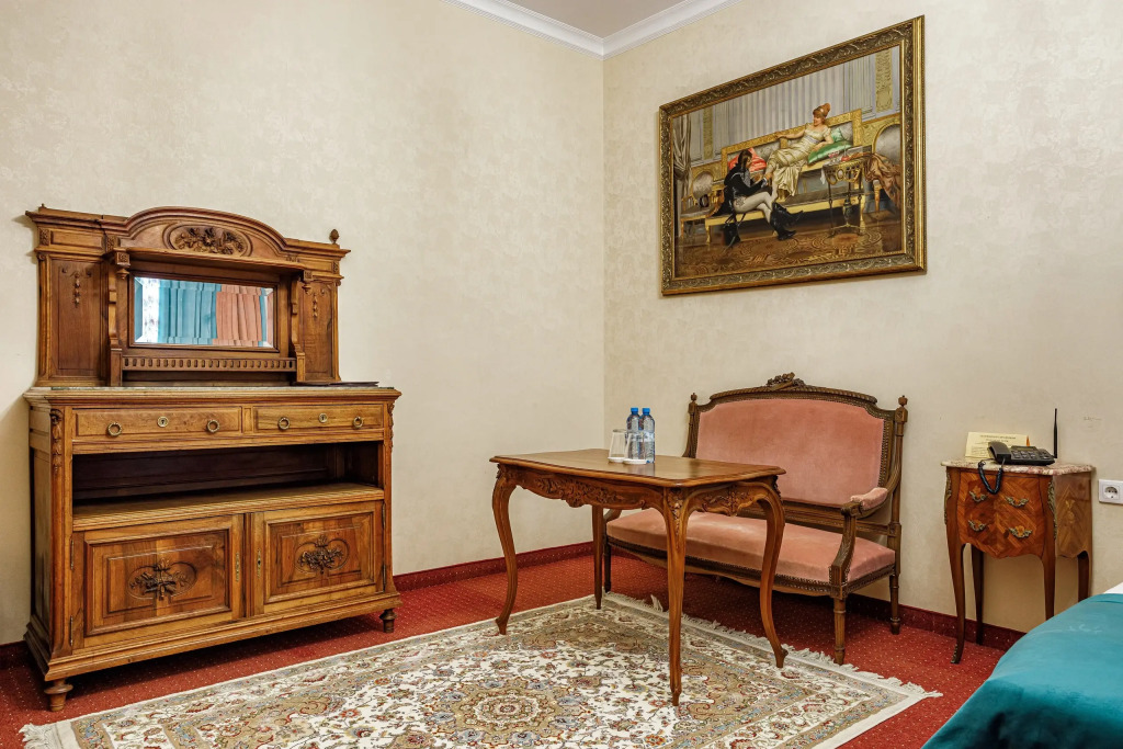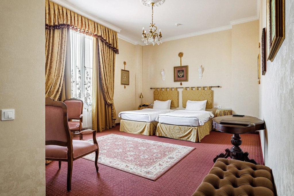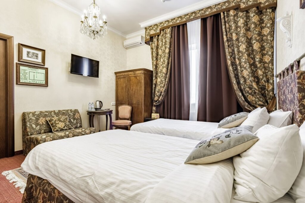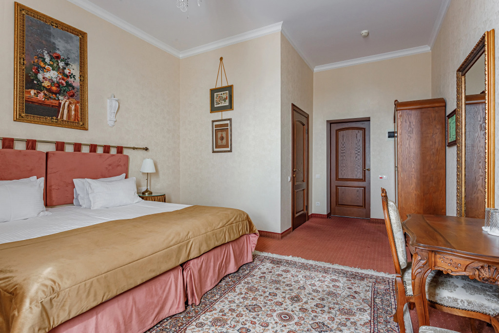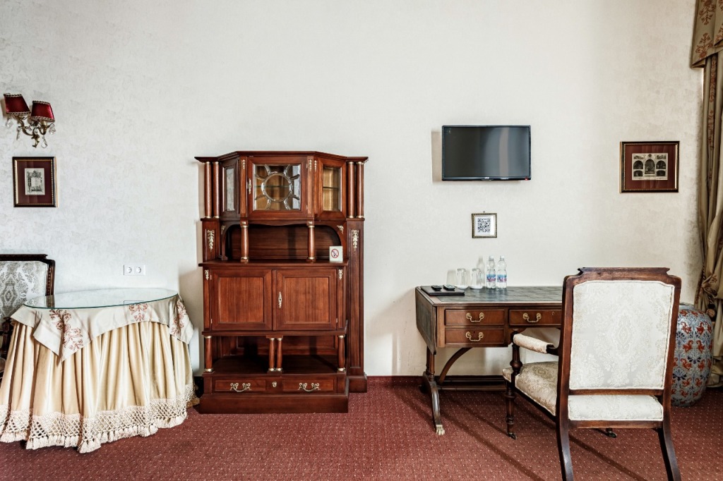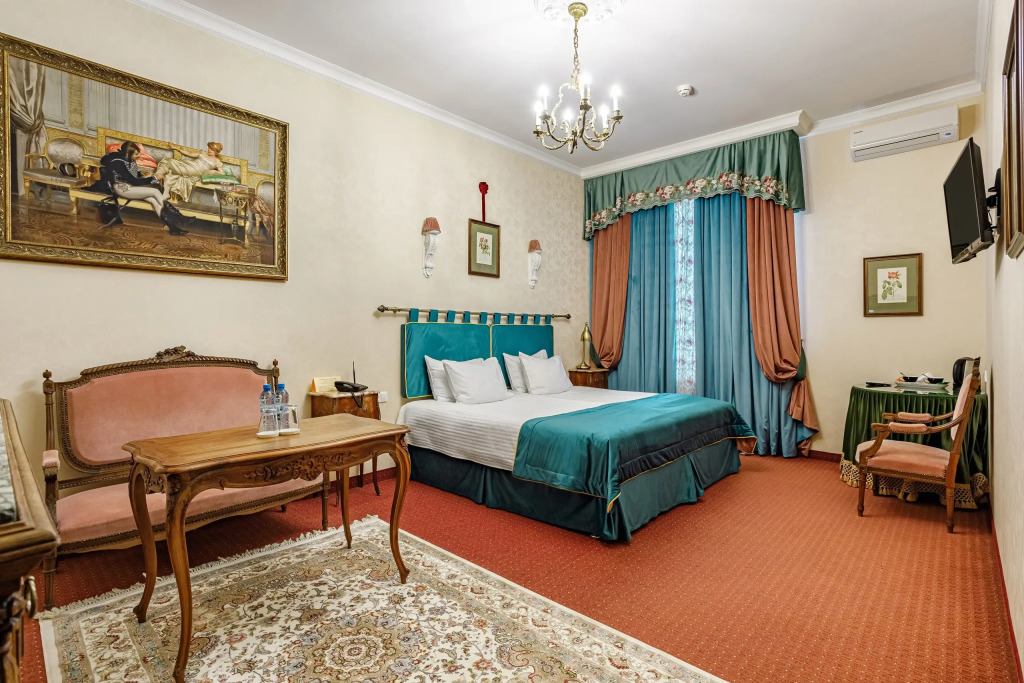 В номере вас будут ждать телевизор, мини-бар и халат. Перечисленные услуги есть не во всех номерах.