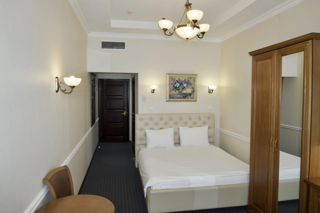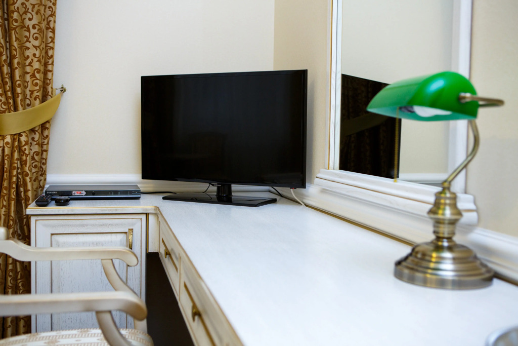 В номере вы найдёте телевизор и халат. Оснащение зависит от выбранной категории номера.