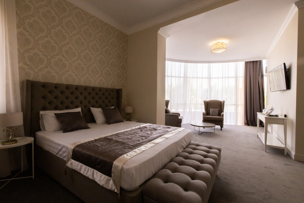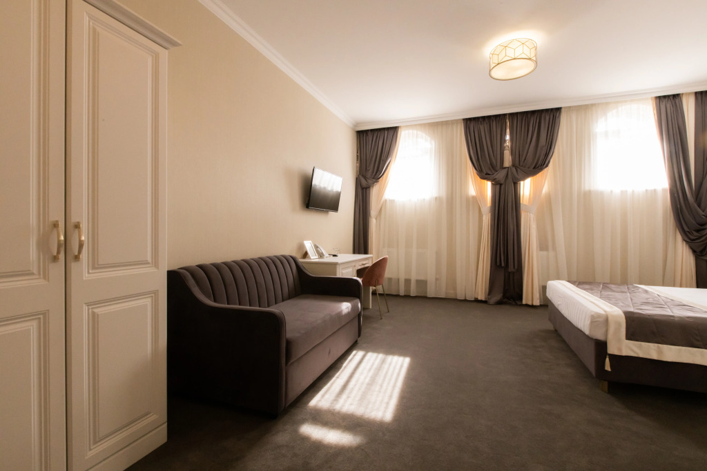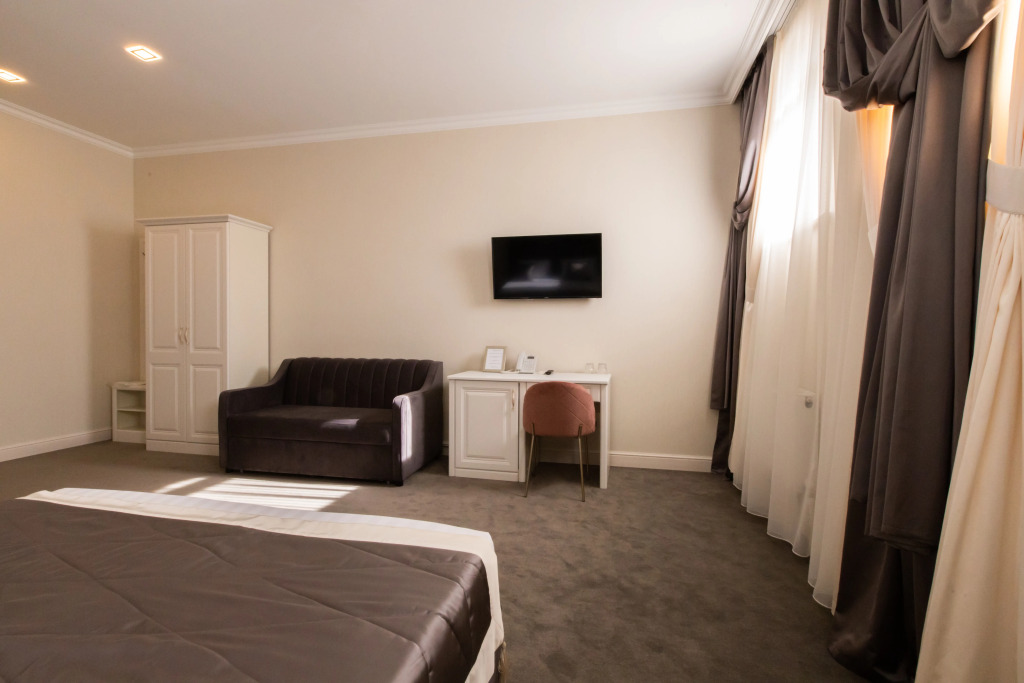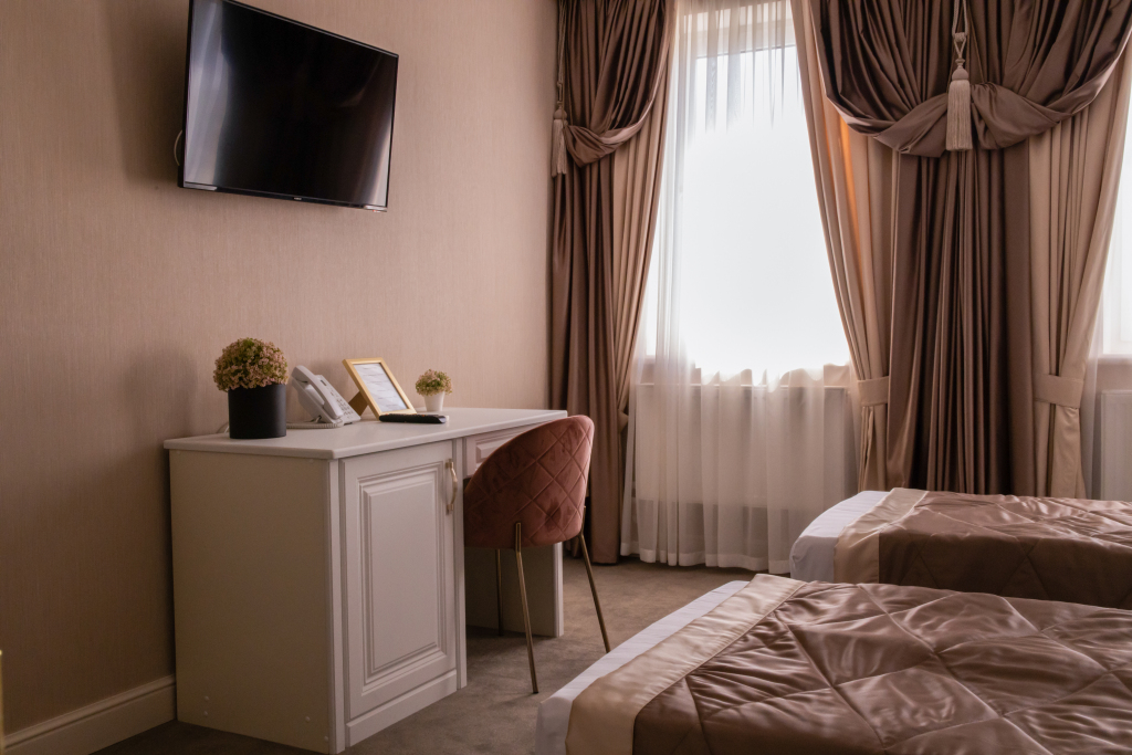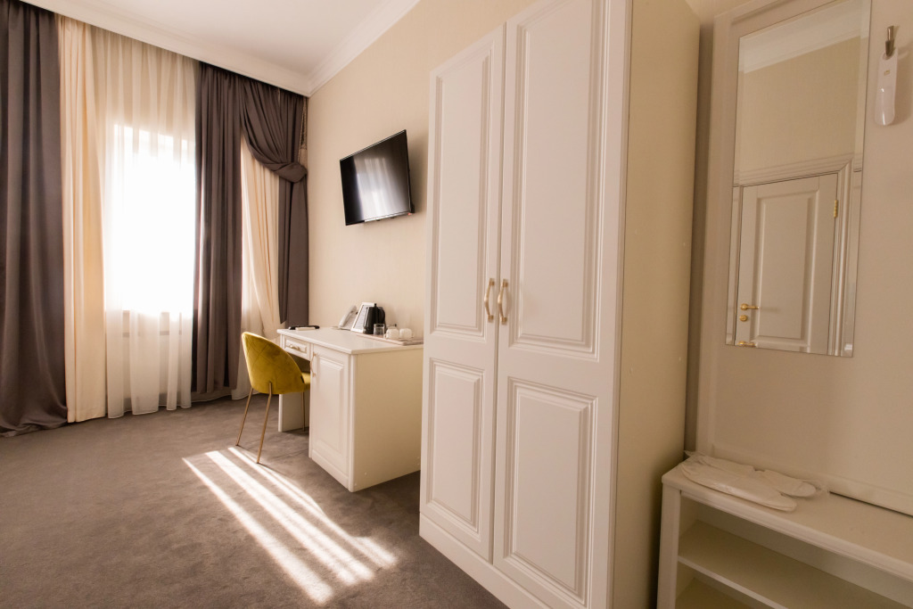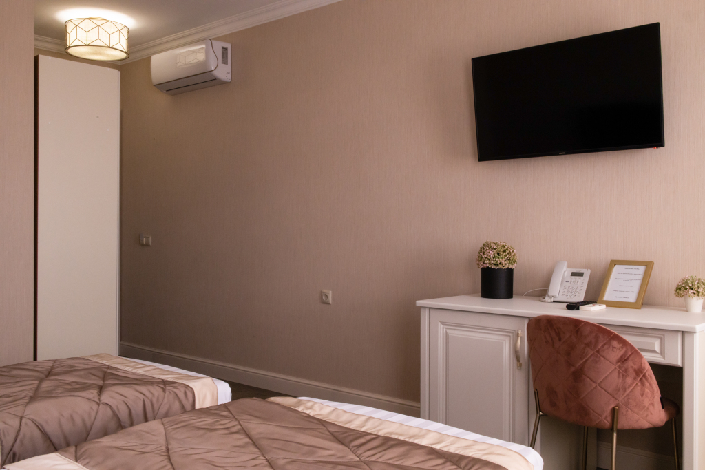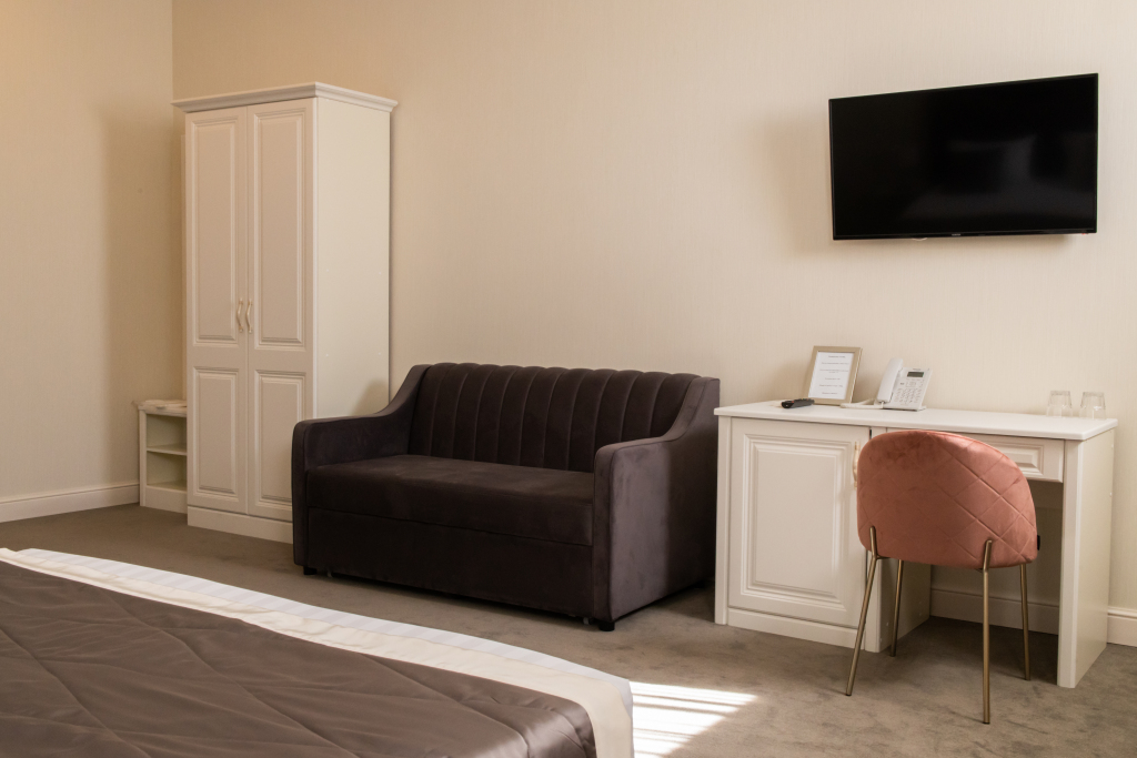 В номере гостей ждут телевизор и халат. Перечисленные услуги есть не во всех номерах.