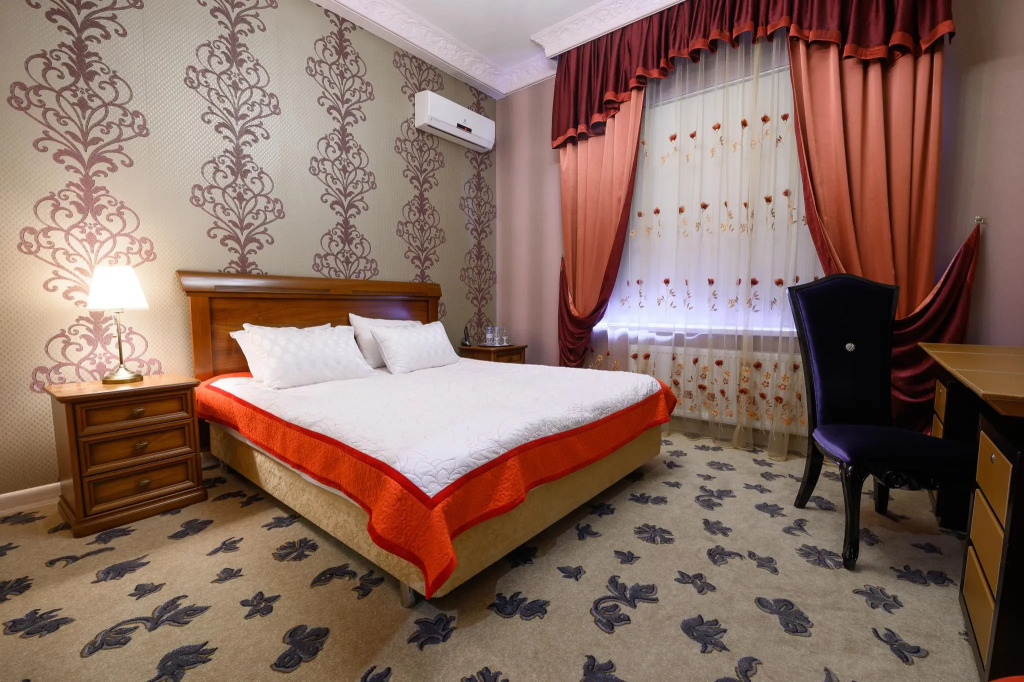 Отель предлагает 36 номеров, в каждом из которых есть хрустальные люстры и бархатные подушки. В номерах категории Luxe и Royal Suite гостей ждут премиальные удобства: Яндекс Станции Алиса и авторская парфюмерия.