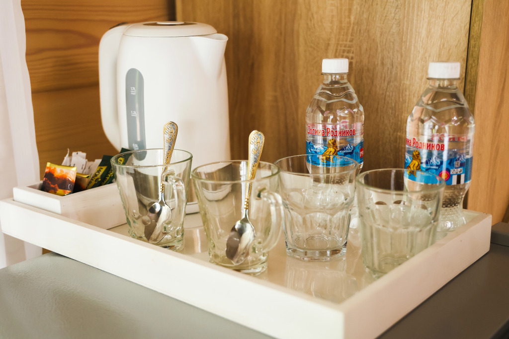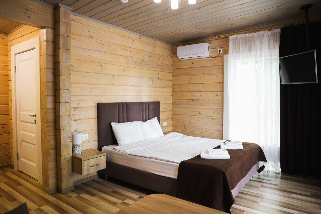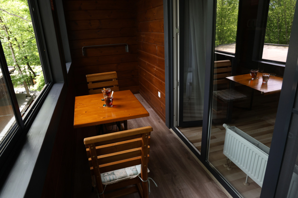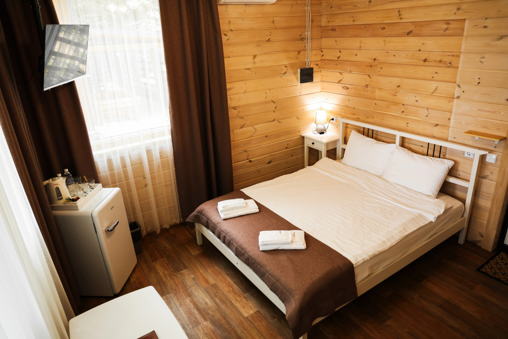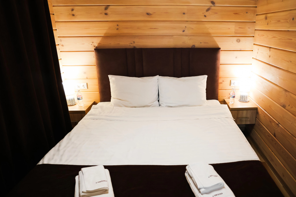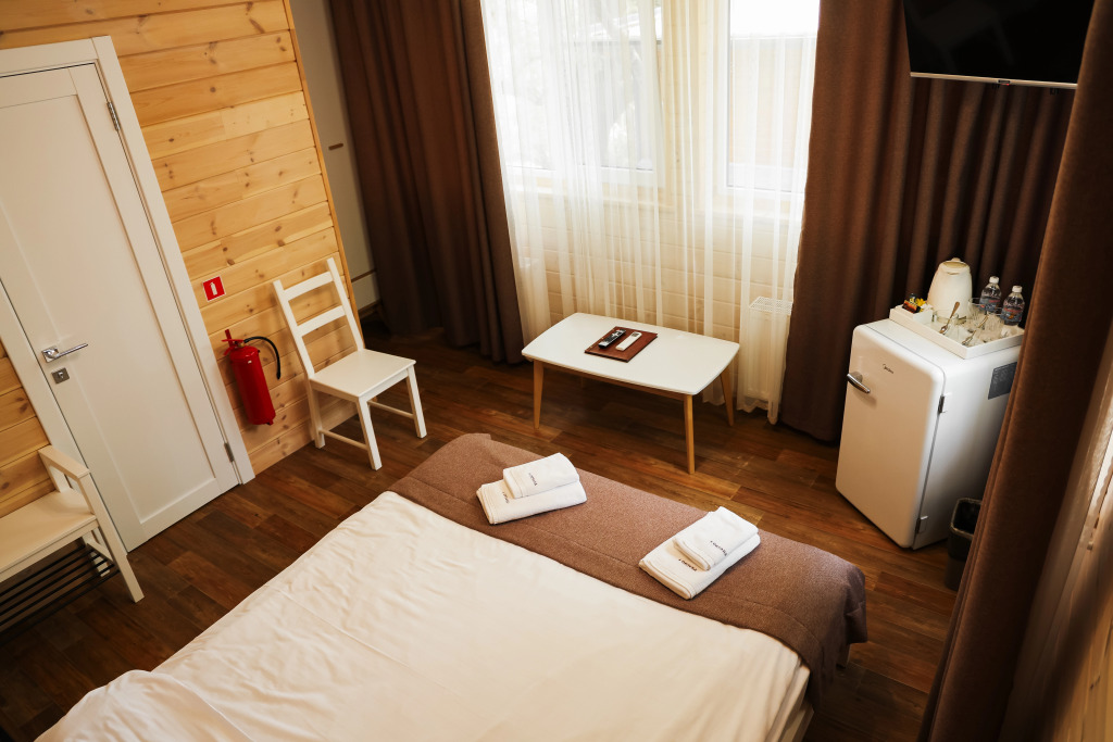 Номера оснащены всем необходимым: бесплатный Wi-Fi, smart-TV, индивидуальный сейф, кондиционер, холодильник, чайник с чайным набором, все постельные принадлежности, полотенца, фен, сушилка для вещей, утюг. Санузел и душ в каждом номере. Дополнительно есть большая лоджия с видом на горы.