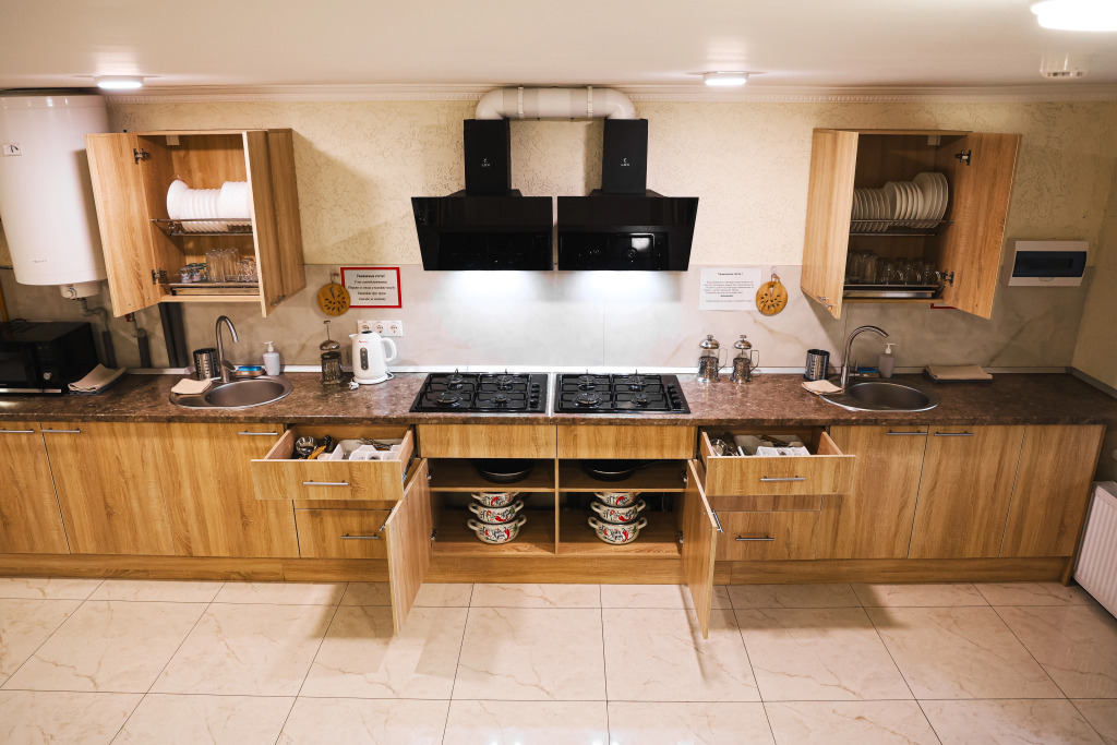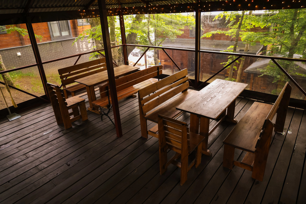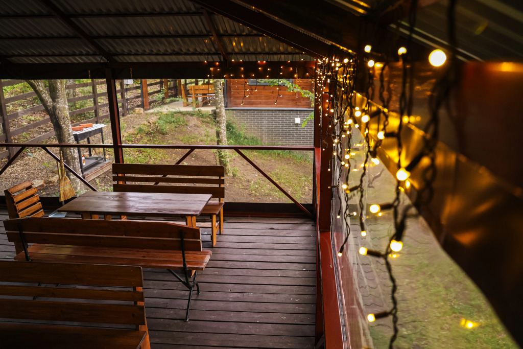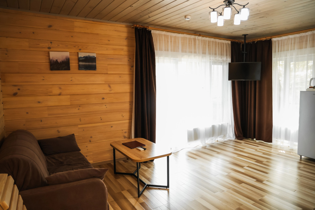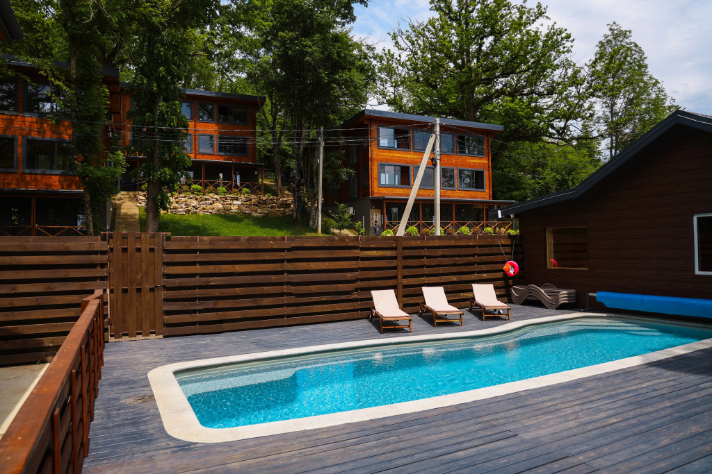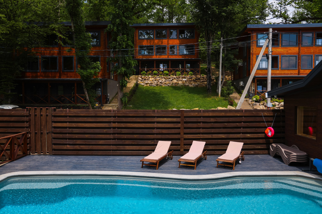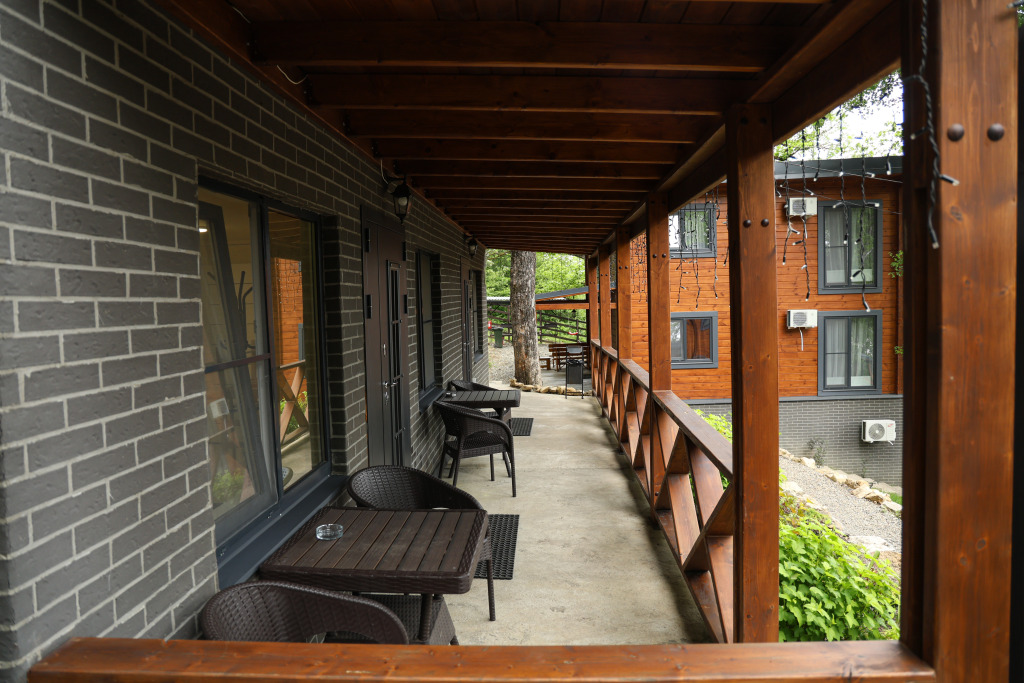 Отель состоит из трёх корпусов по 4 номера в каждом. На территории отеля есть бесплатный WI-FI, парковка, площадка для занятий йогой, гамак, детские качели и уголок для малышей. Для гостей предоставляются три мангальные зоны и принадлежности к ним, три закрытые беседки, две из которых платные. Рядом с отелем есть озеро, где можно порыбачить. В двух корпусах расположены кухни для самостоятельного приготовления пищи, где есть все необходимые электробытовые приборы и посуда. По запросу гостей есть услуги прачечной. В отеле могут предоставить контакты конных прогулок, джипинга, проката квадроциклов.