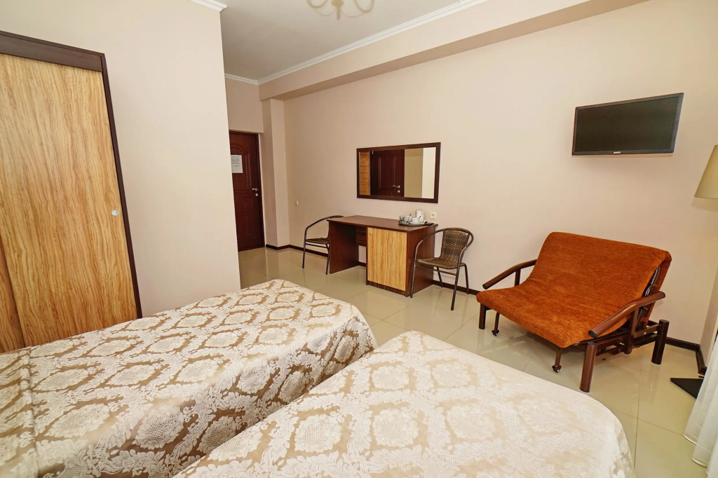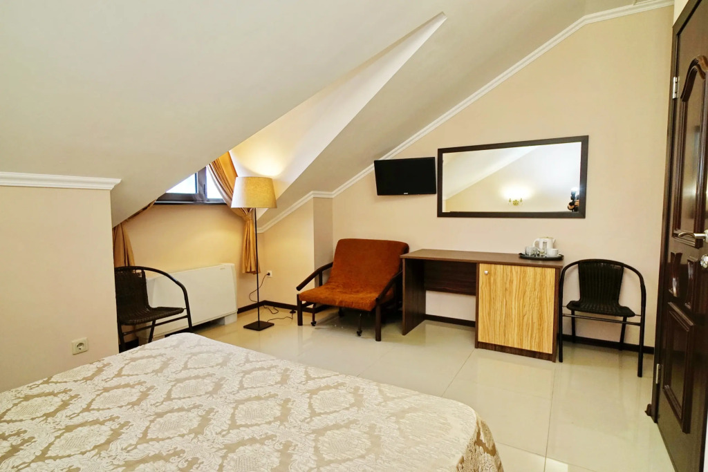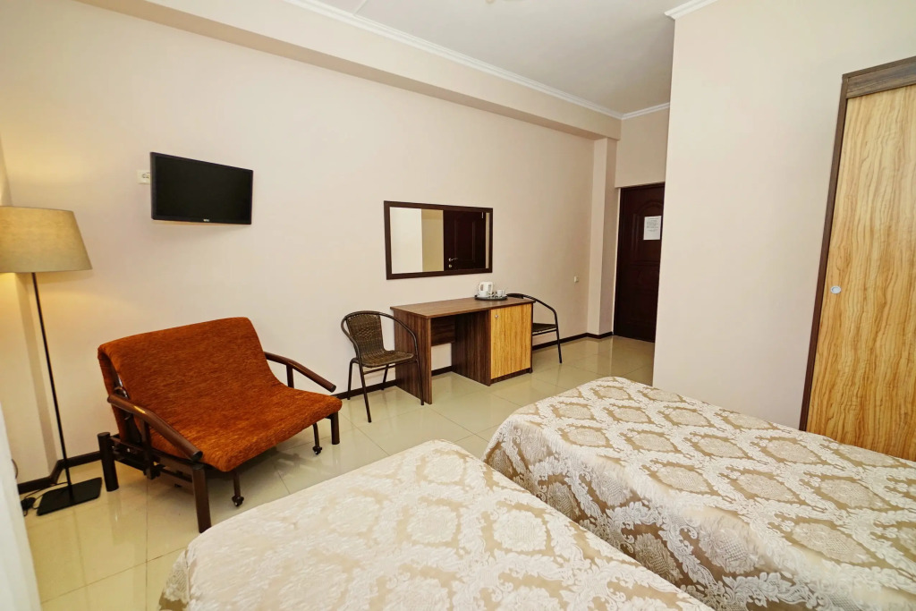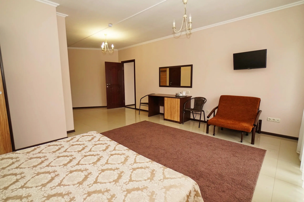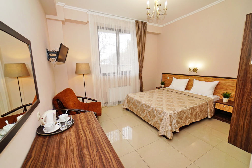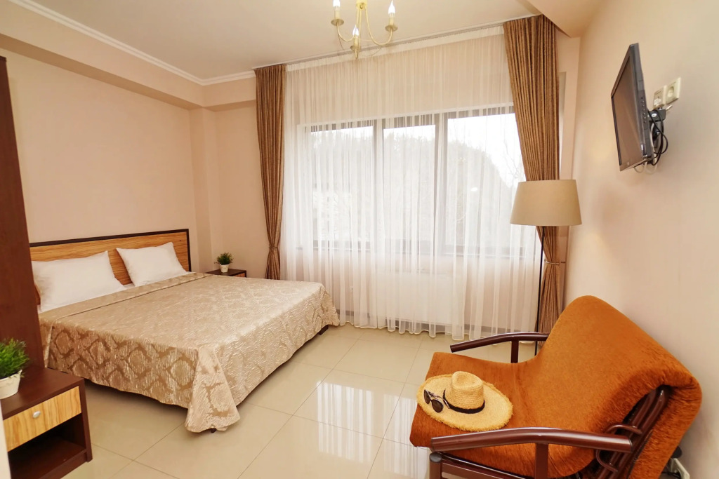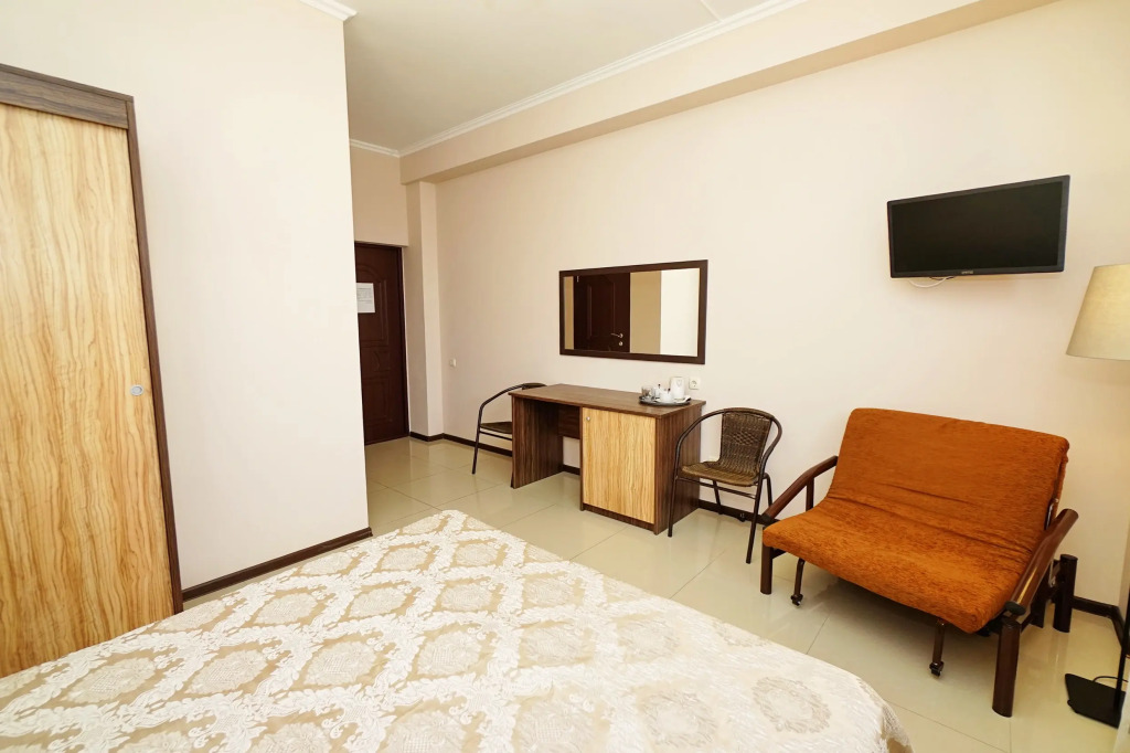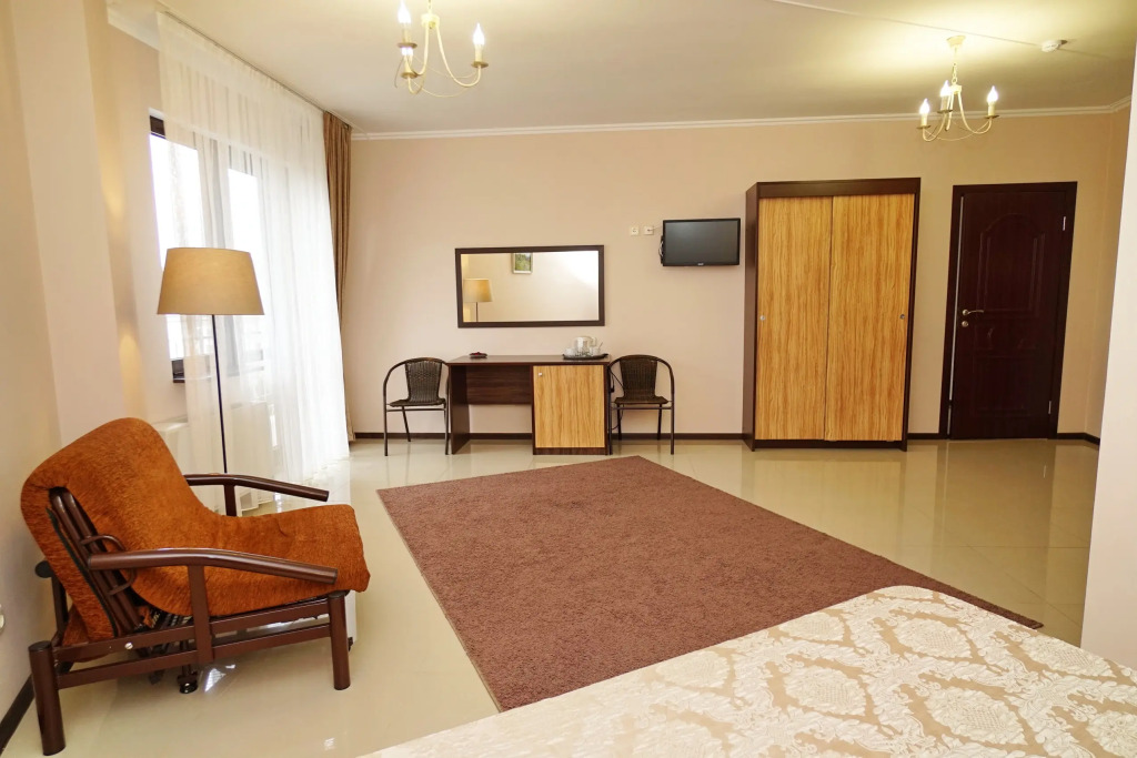 Номер уютно обставлен и оснащён необходимым, чтобы отдохнуть после долгого и насыщенного дня. Имеются телевизор. Оснащение зависит от выбранной категории номера.