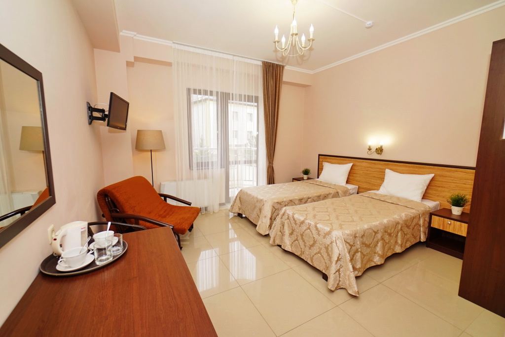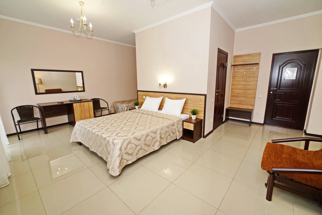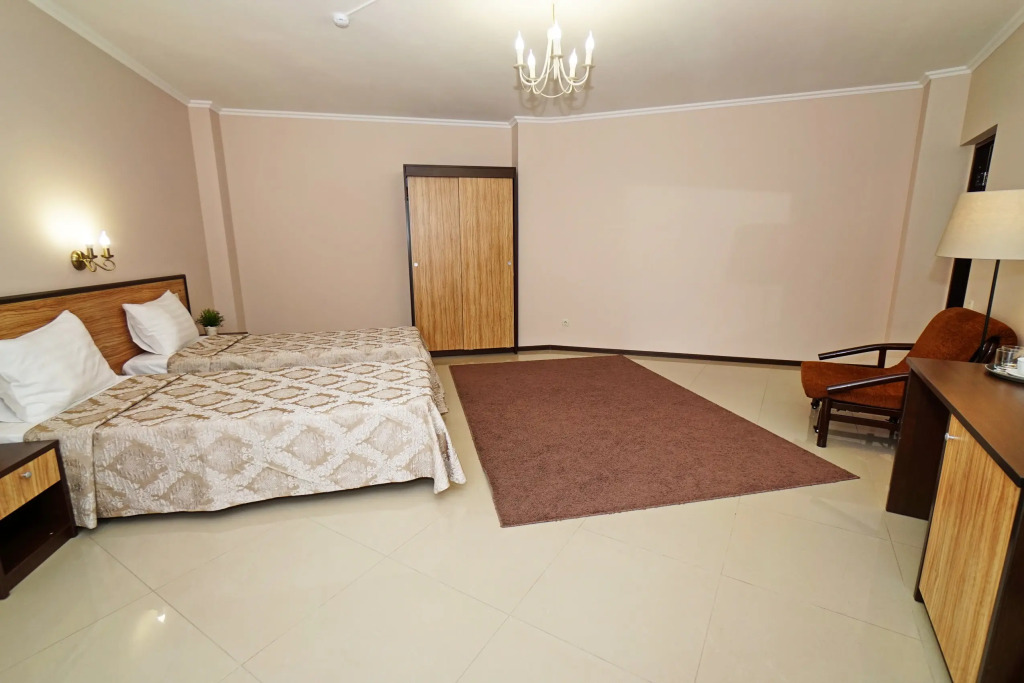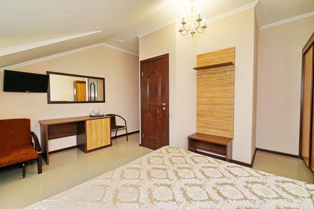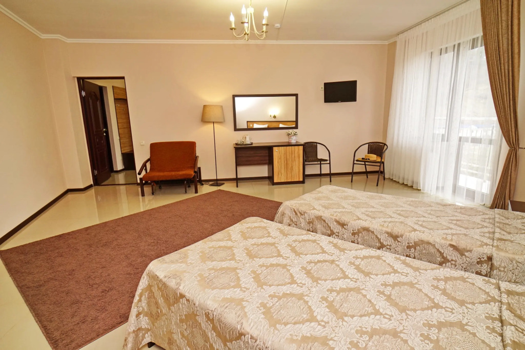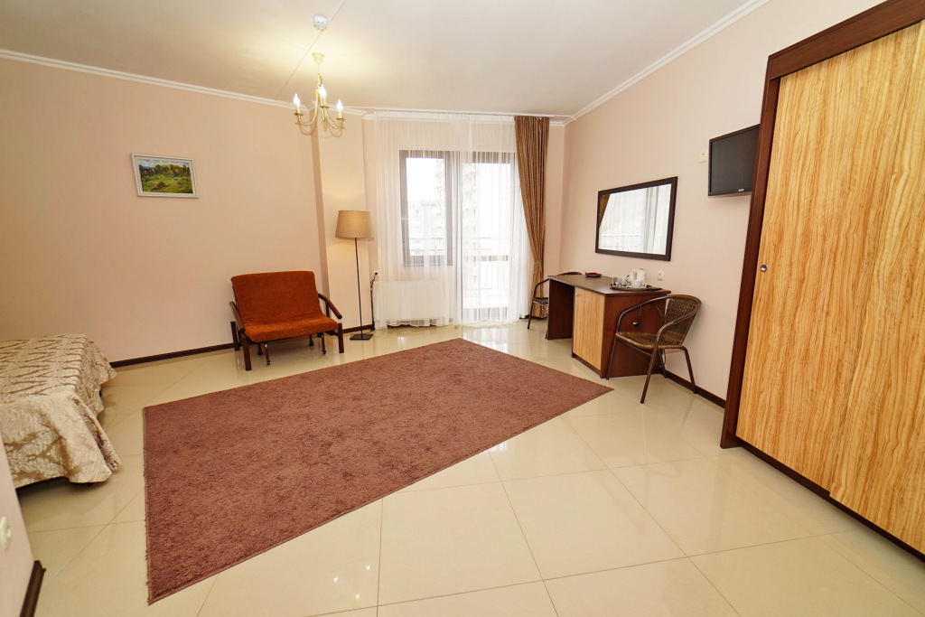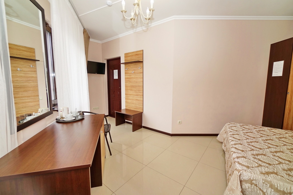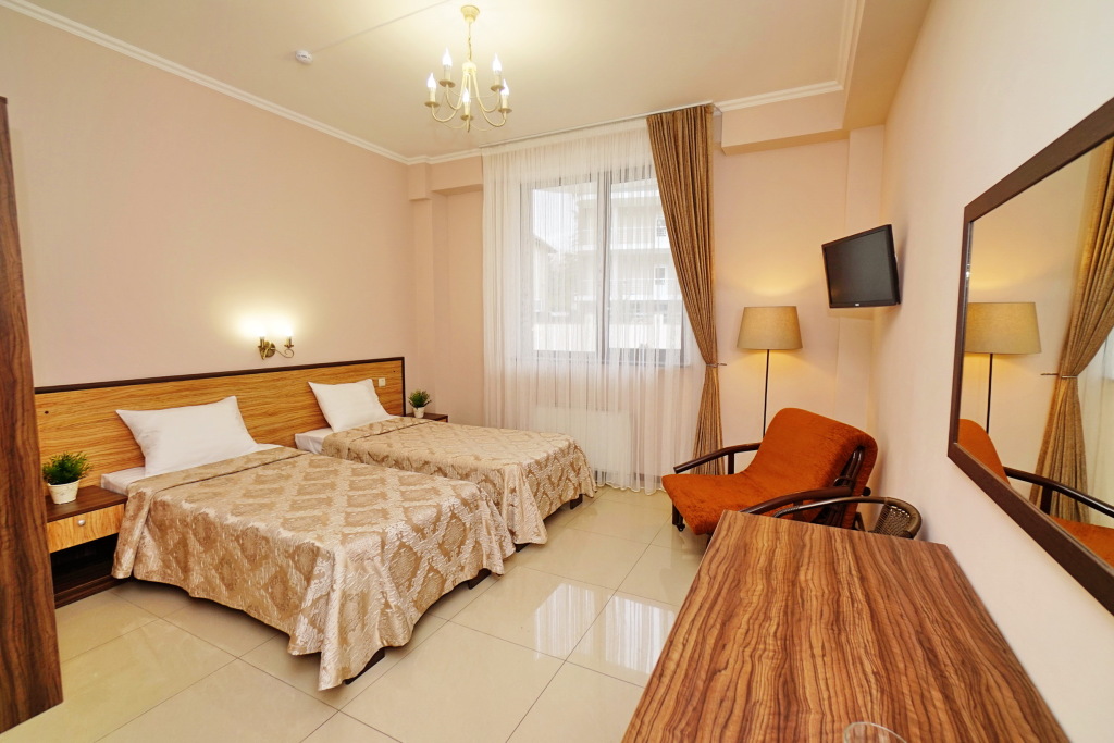 Номер уютно обставлен и оснащён необходимым, чтобы отдохнуть после долгого и насыщенного дня. Имеются телевизор. Оснащение зависит от выбранной категории номера.