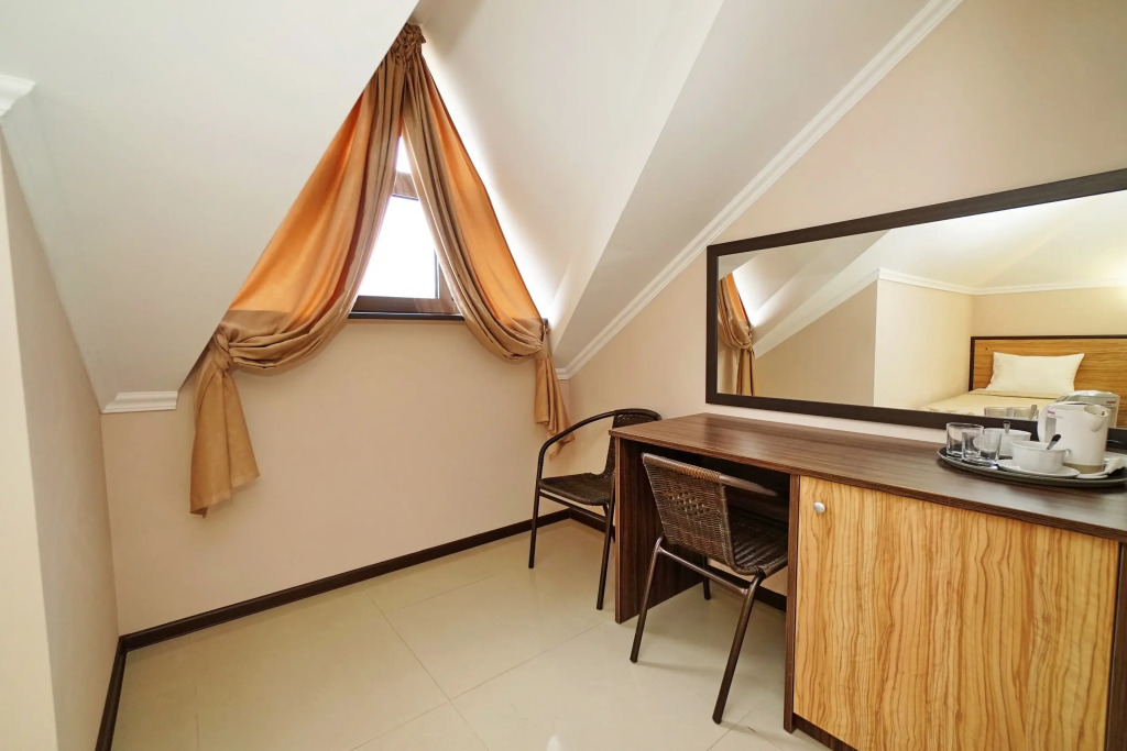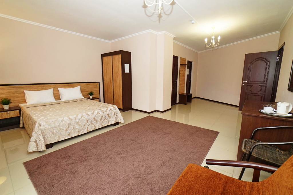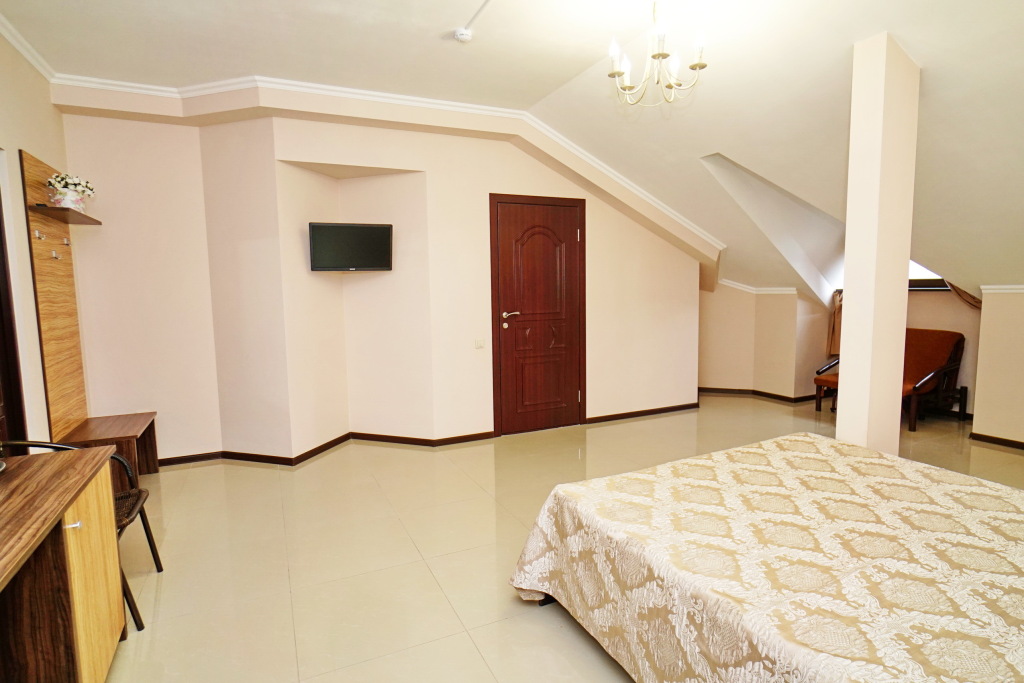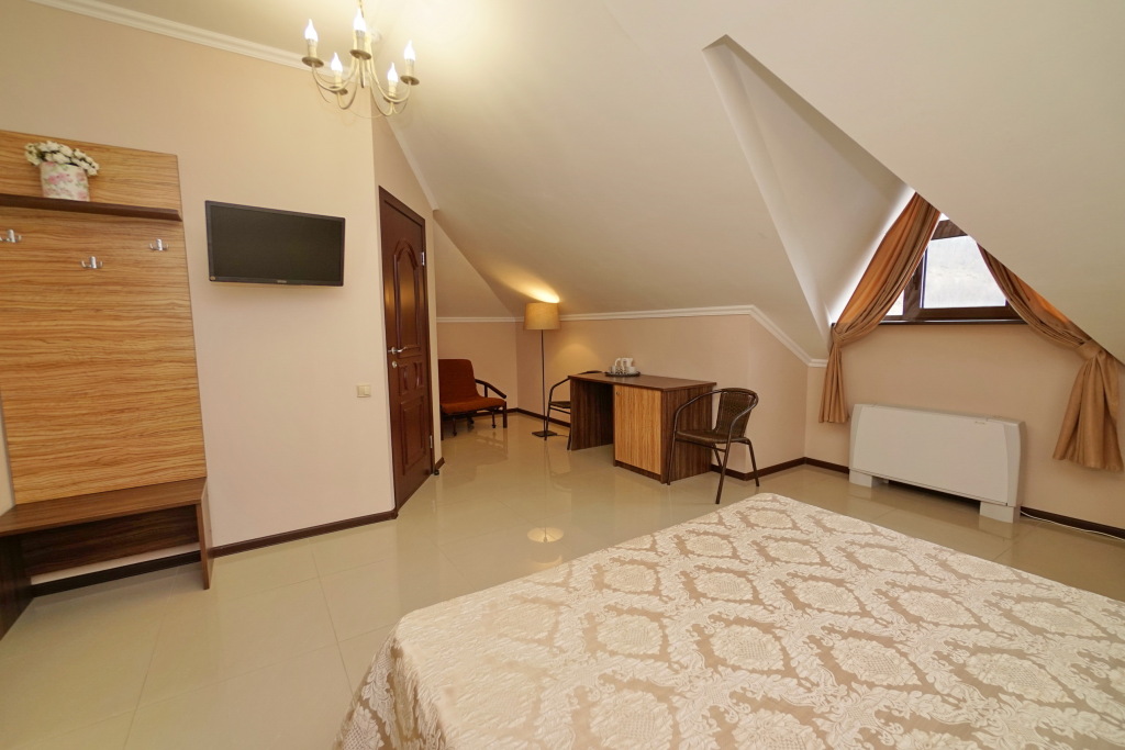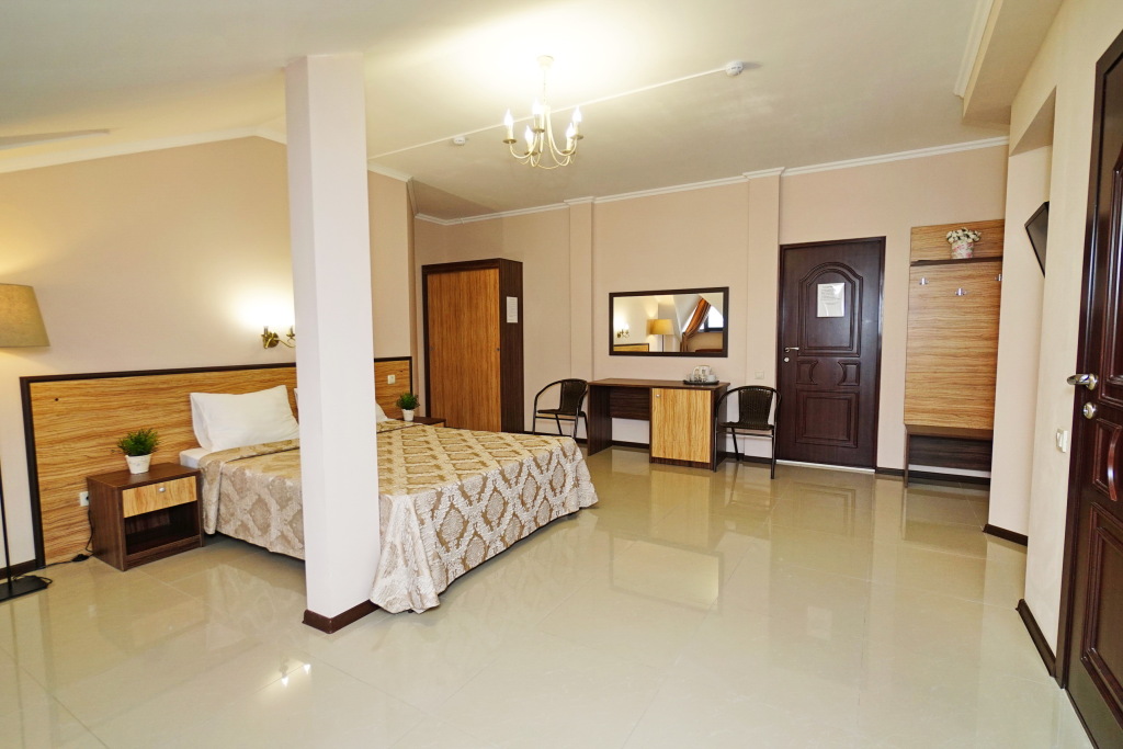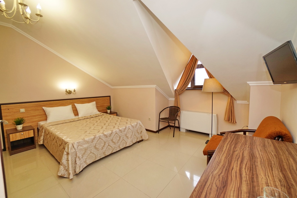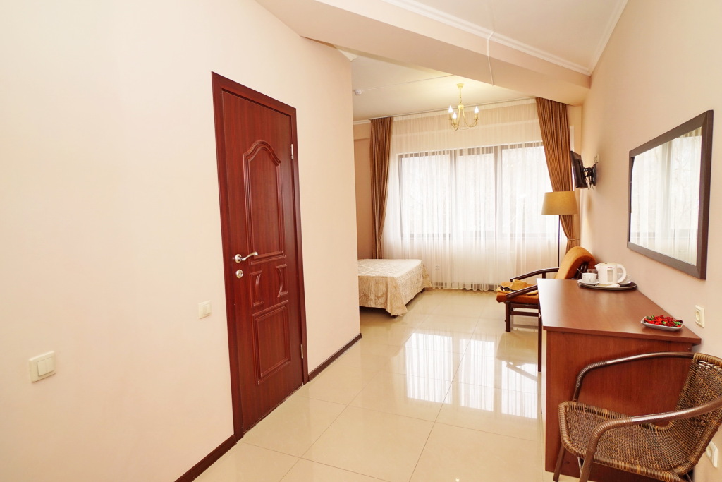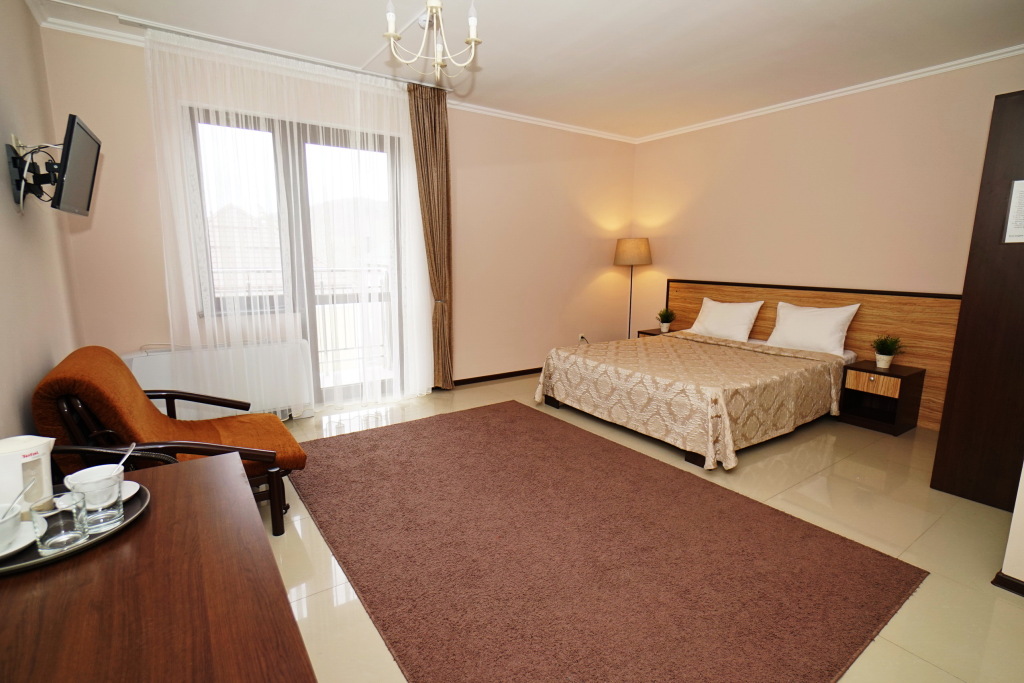 Номер уютно обставлен и оснащён необходимым, чтобы отдохнуть после долгого и насыщенного дня. Имеются телевизор. Оснащение зависит от выбранной категории номера.