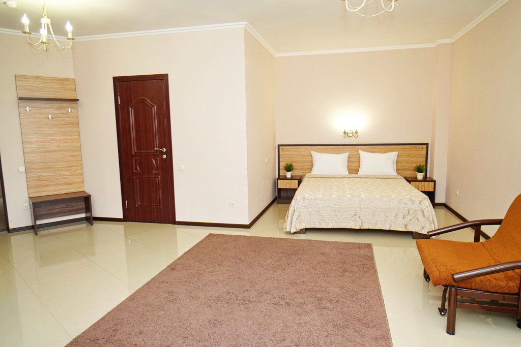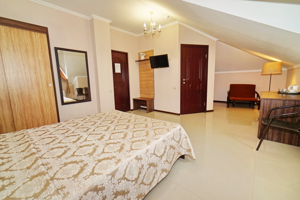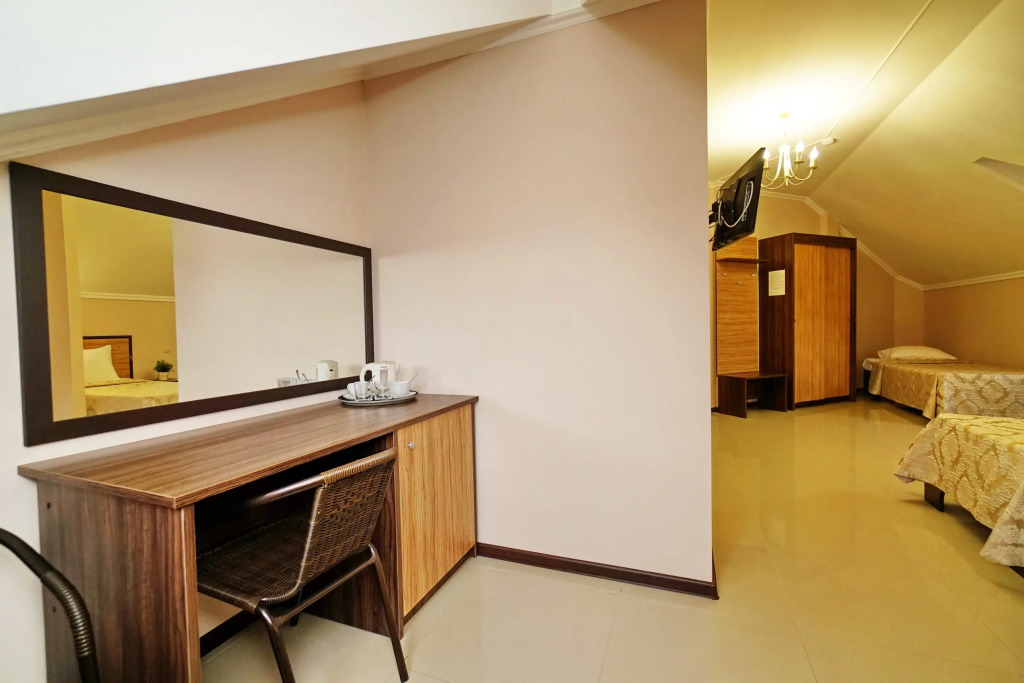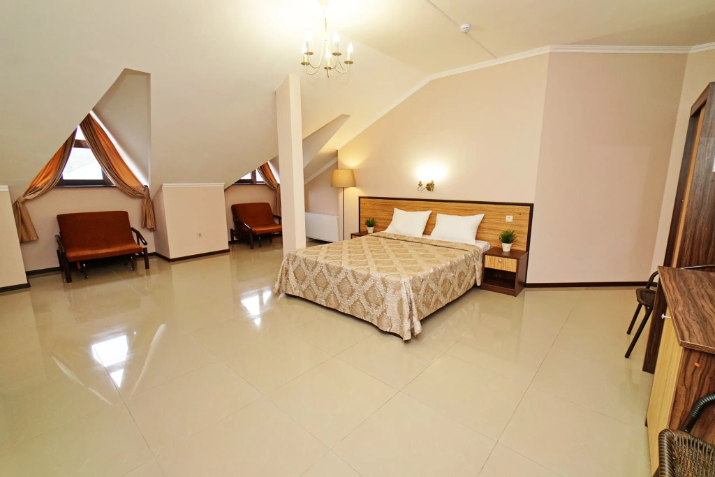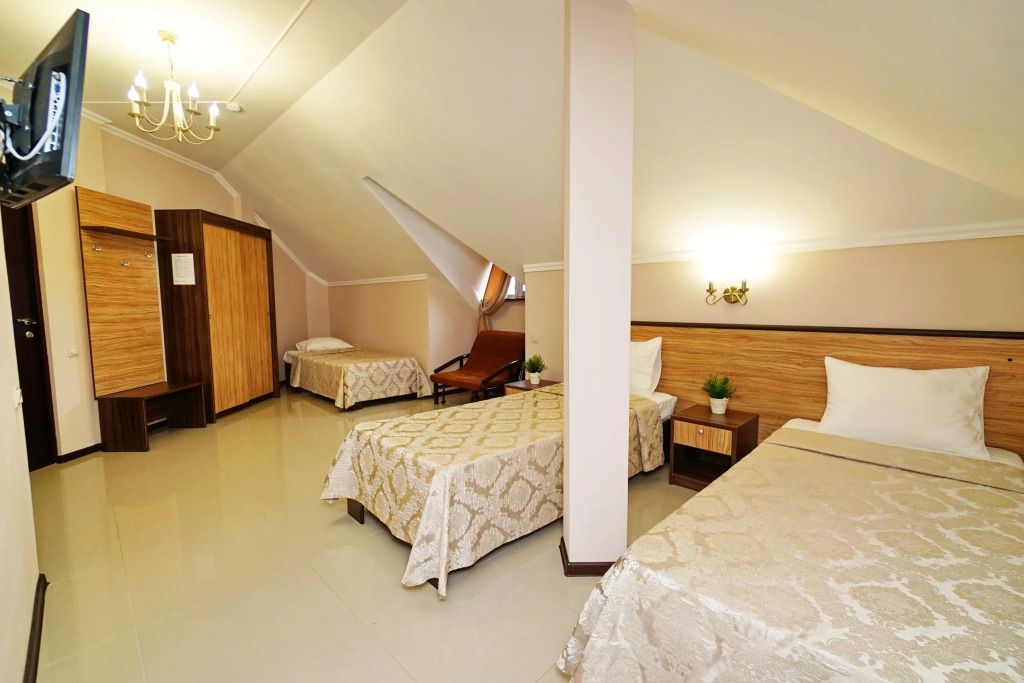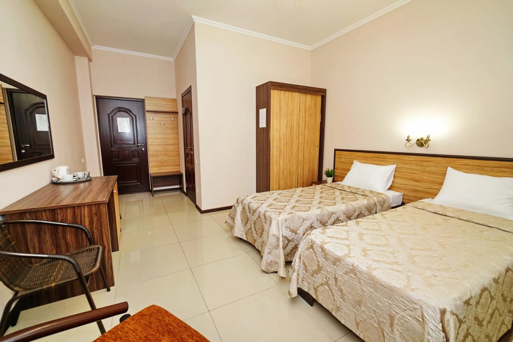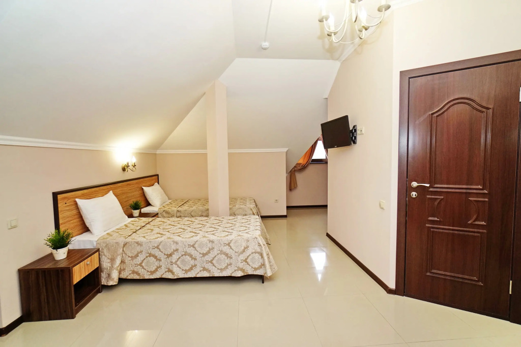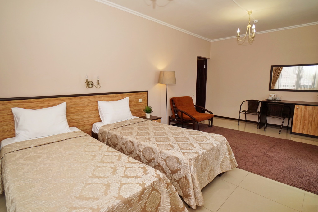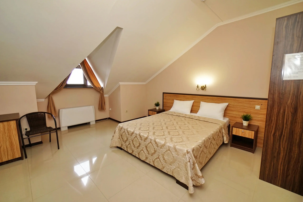 Номер уютно обставлен и оснащён необходимым, чтобы отдохнуть после долгого и насыщенного дня. Имеются телевизор. Оснащение зависит от выбранной категории номера.