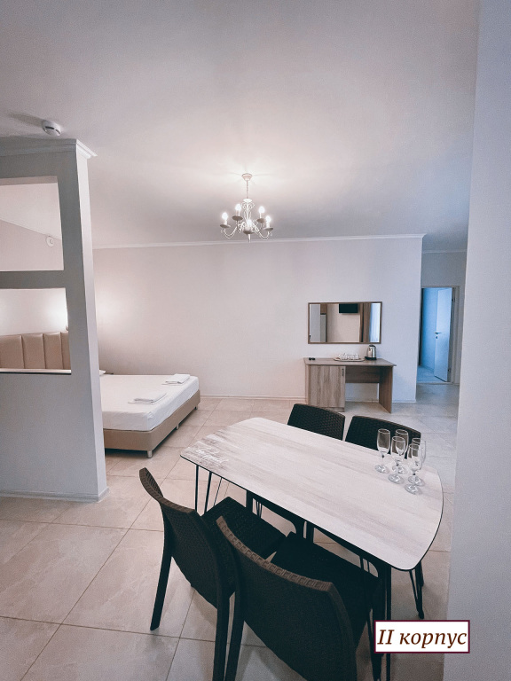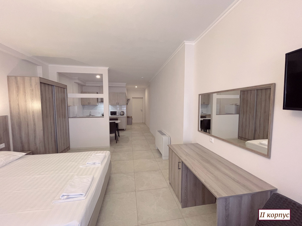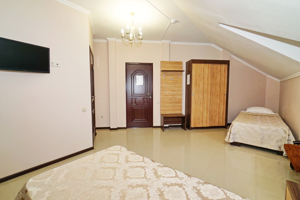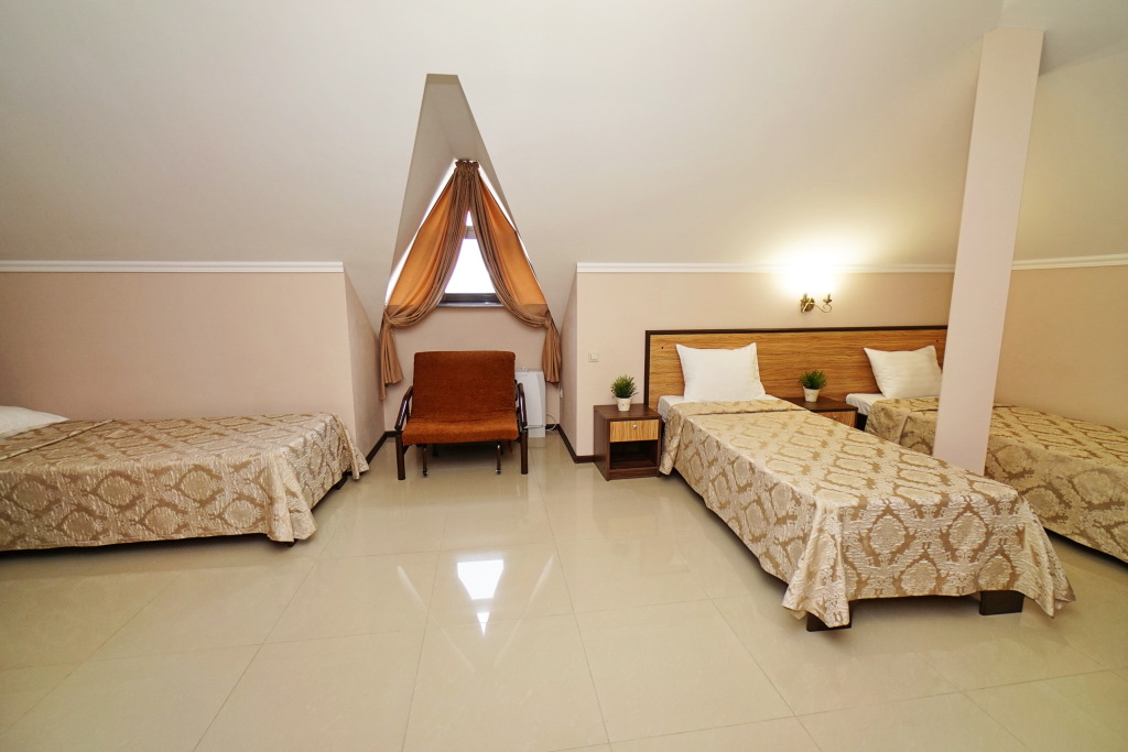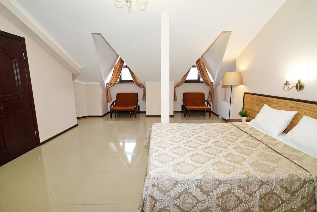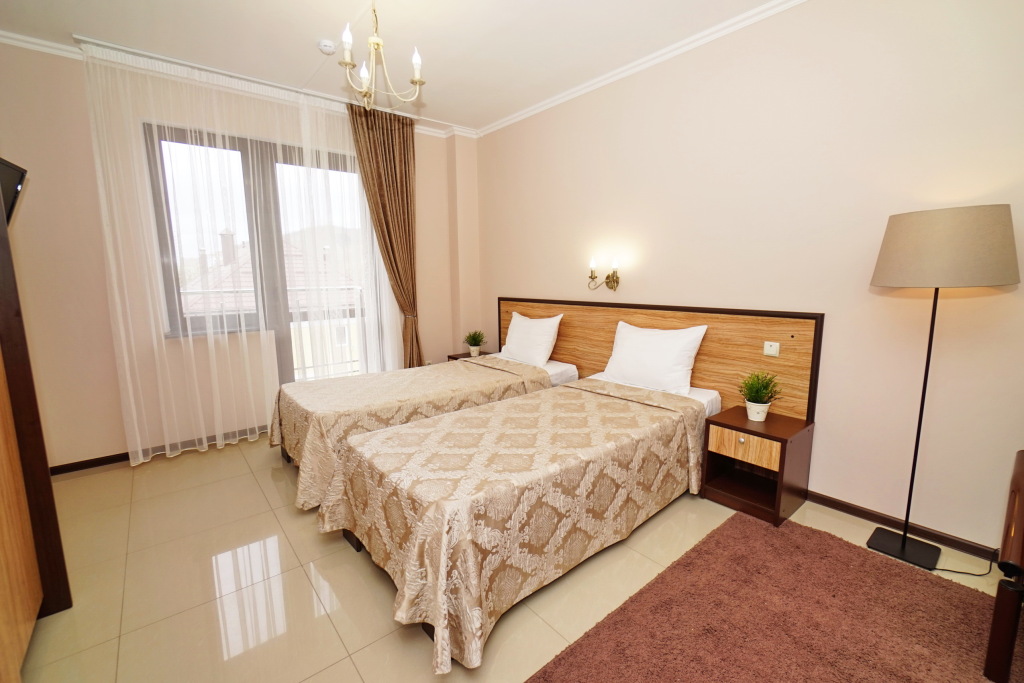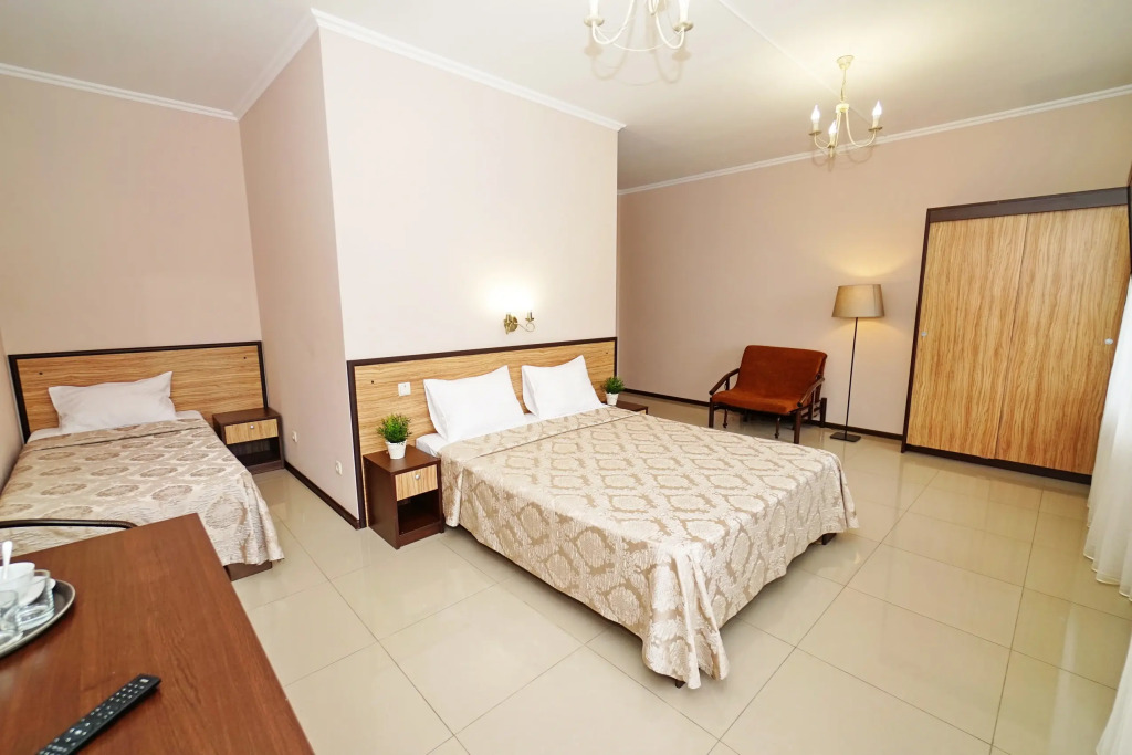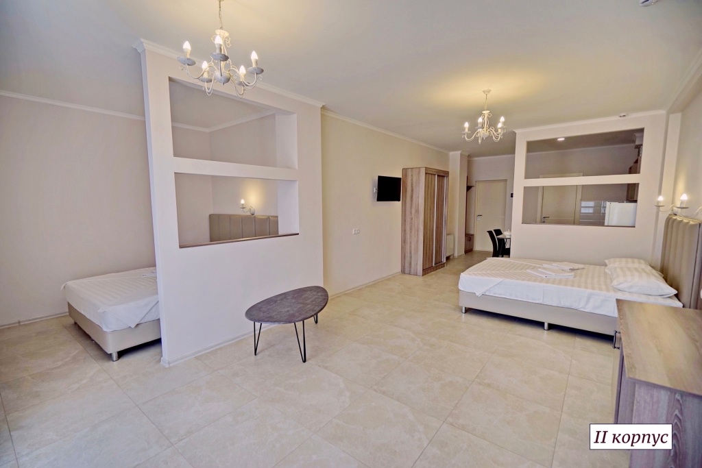 Номер уютно обставлен и оснащён необходимым, чтобы отдохнуть после долгого и насыщенного дня. Имеются телевизор. Оснащение зависит от выбранной категории номера.