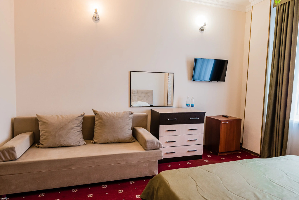 Номер уютно обставлен и оснащён необходимым, чтобы отдохнуть после долгого и насыщенного дня. Имеются телевизор. Перечисленные услуги есть не во всех номерах.