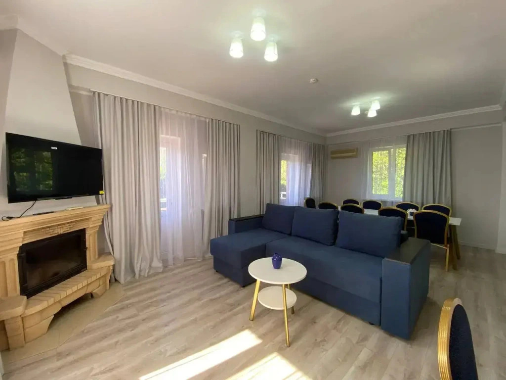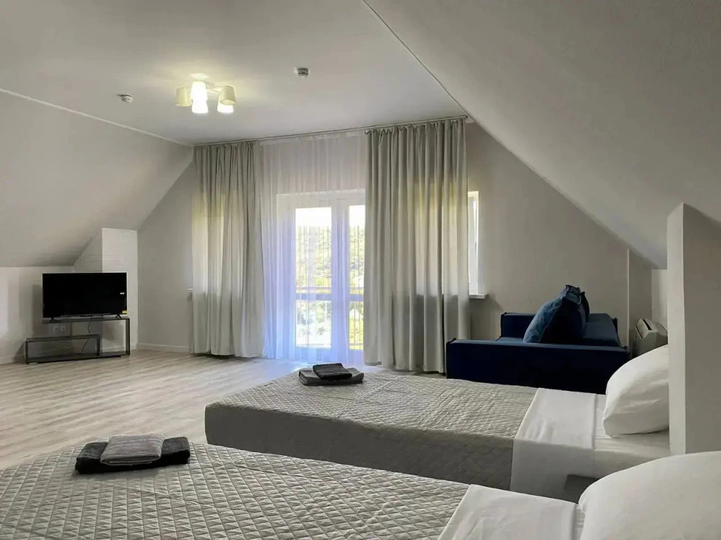 Гостям доступны номера люкс с панорамным видом на горы, семейные полулюксы, номера категории комфорт и стандартные номера. Для больших компаний и семей имеются трёхэтажные коттеджи.