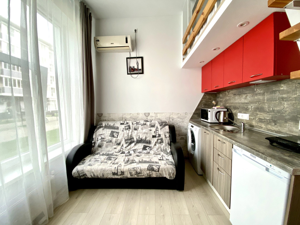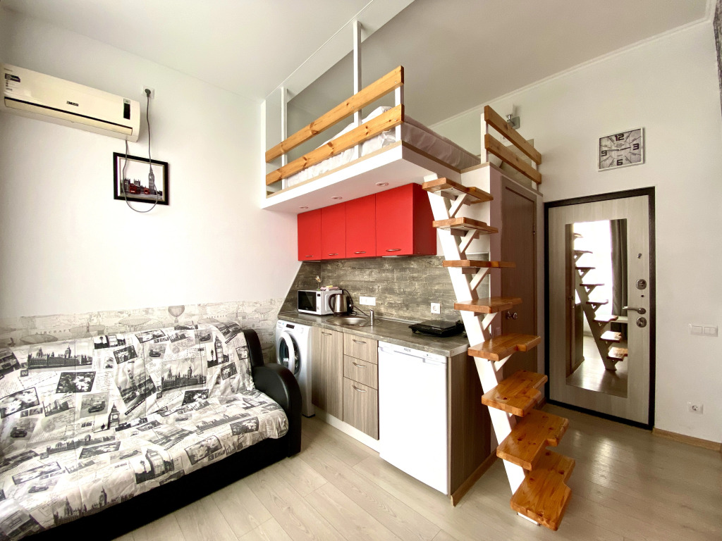 Планируем ещё приехать в эти же аппартаменты. 1) Нет разделения кухни и жилой части, так как это студия