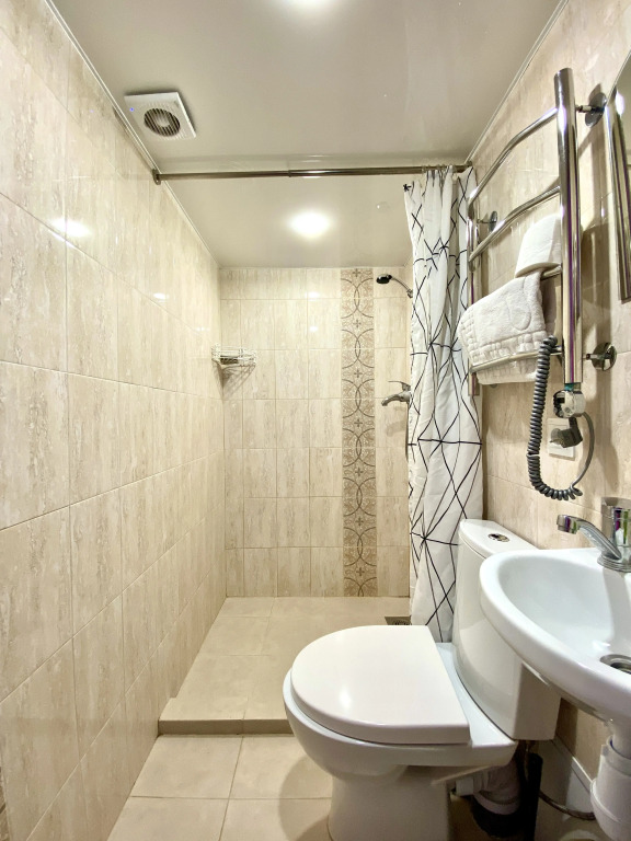 Номер хороший, постельное белье белоснежное, чистое, хорошая бытовая техника (не самая дешевая), много спальных мест, есть вся необходимая посуда. Есть ванные принадлежности (кроме бальзама для волос)), фен, сушилка для белья, даже стремянка. Мы жили на первом этаже, без балкона, окна во двор, по соседству массажный кабинет.