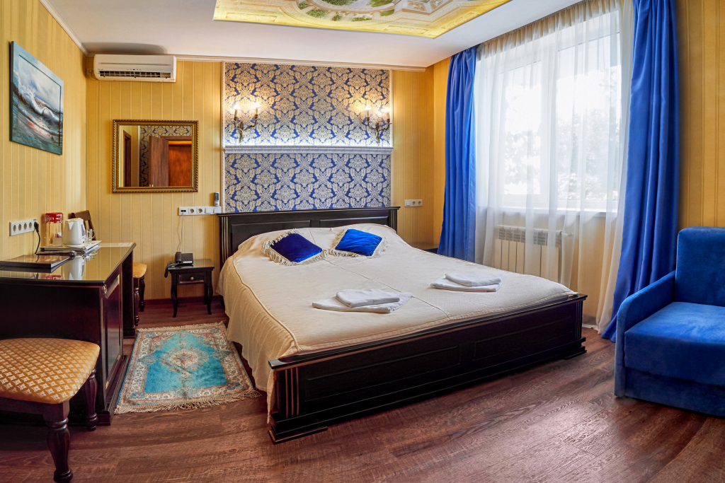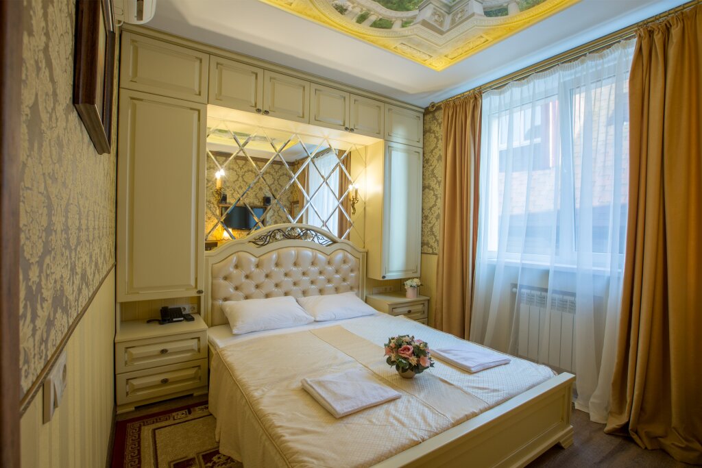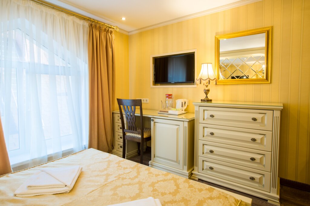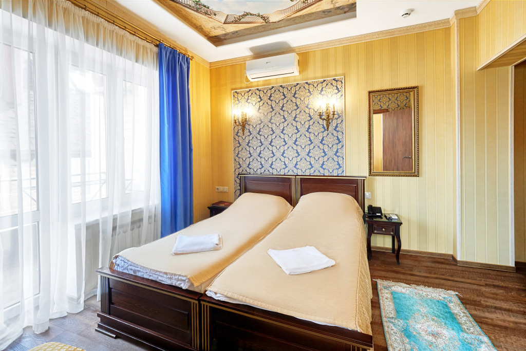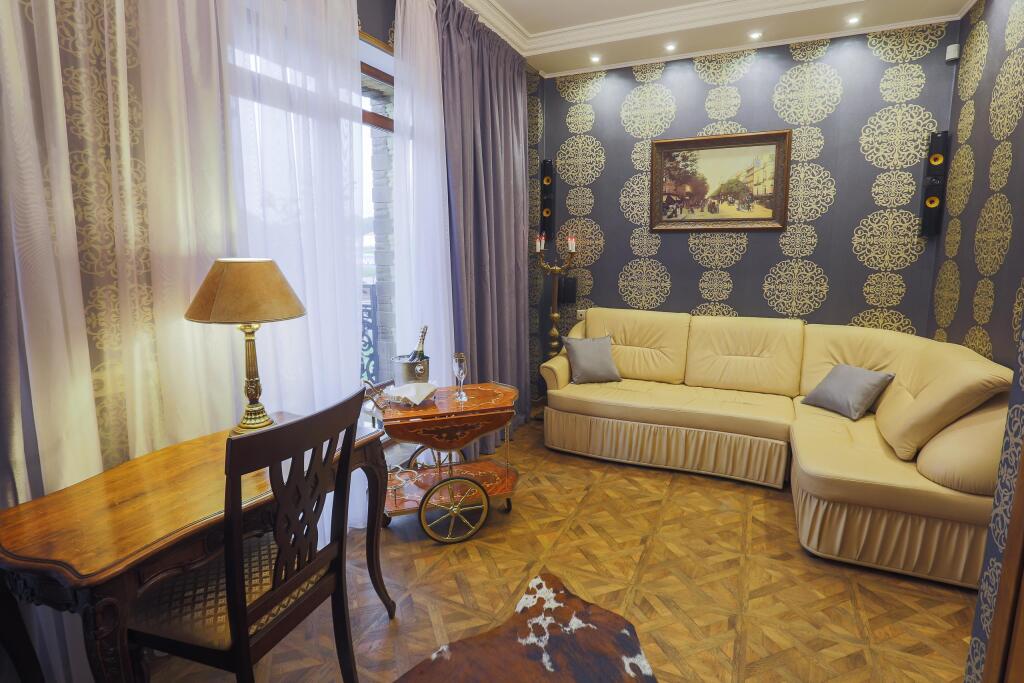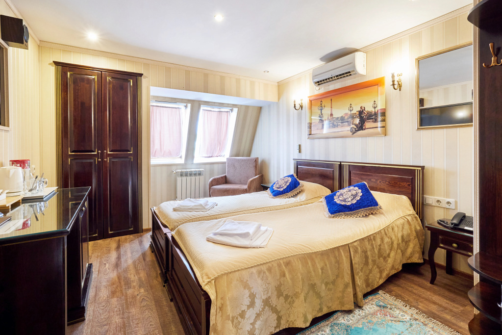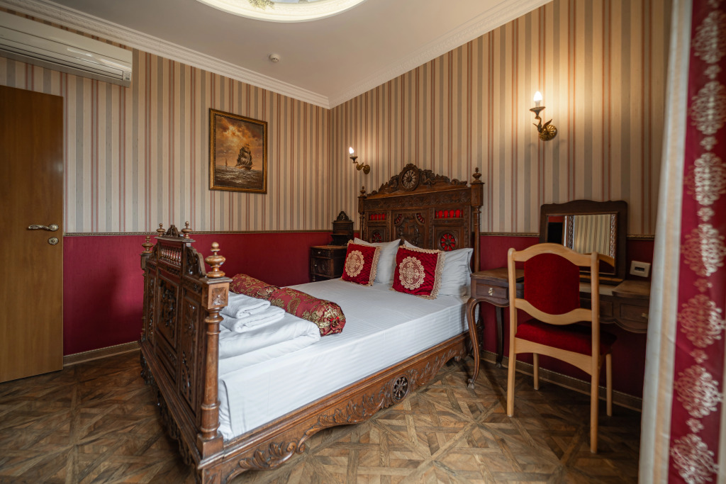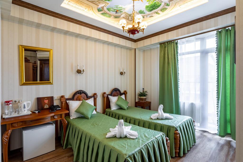 Корпуса «Поручик Ржевский» и «Наташа Ростова» находятся на расстоянии 100 м друг от друга. К услугам гостей отель предлагает 31 номер в различных категориях. Во всех номерах: система климат-контроля, телевизор, беспроводной доступ в интернет, сейф, фен, тапочки. В номерах повышенной комфортности предлагаются дополнительные удобства и услуги.