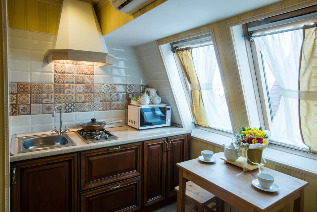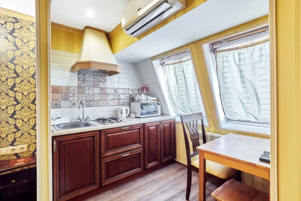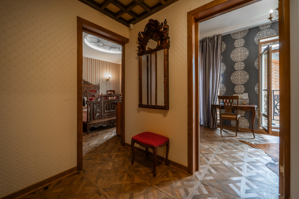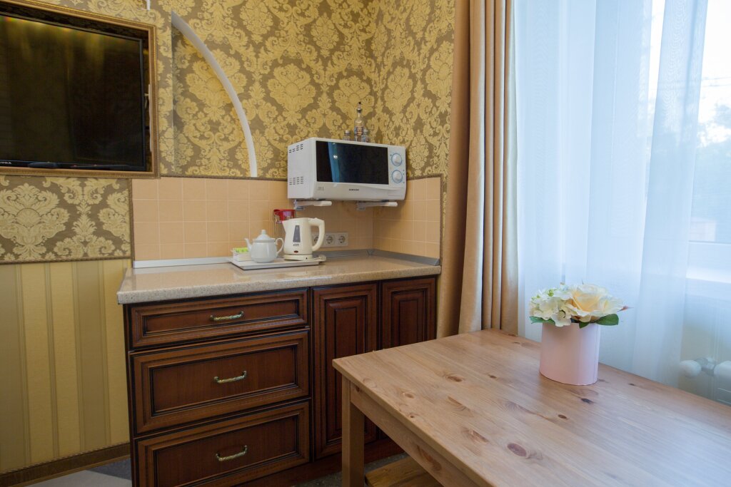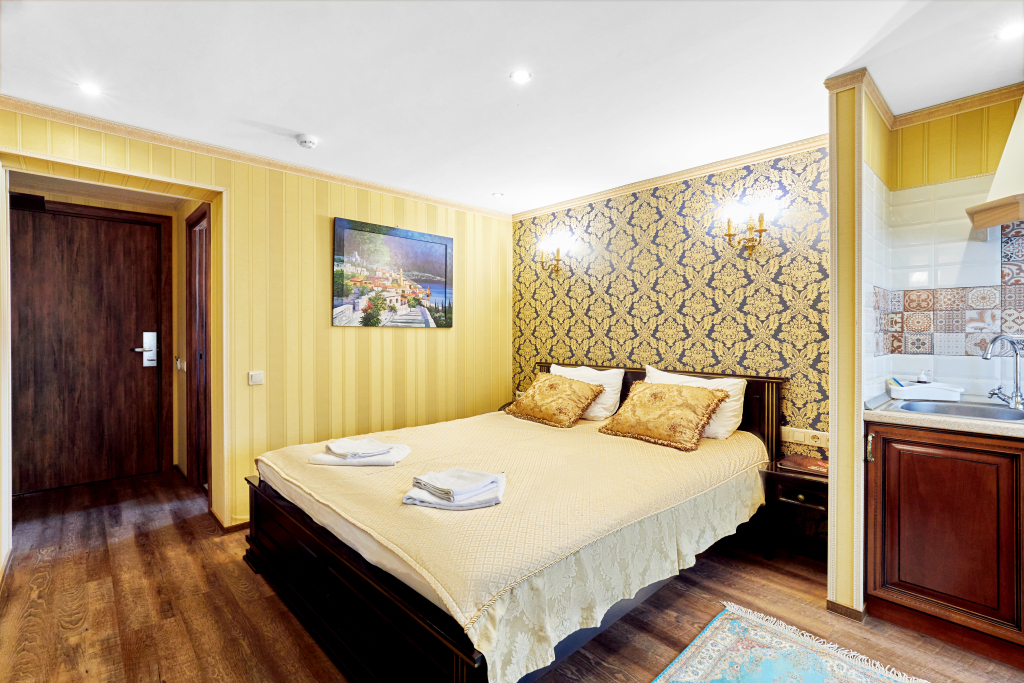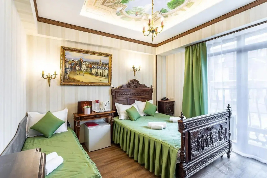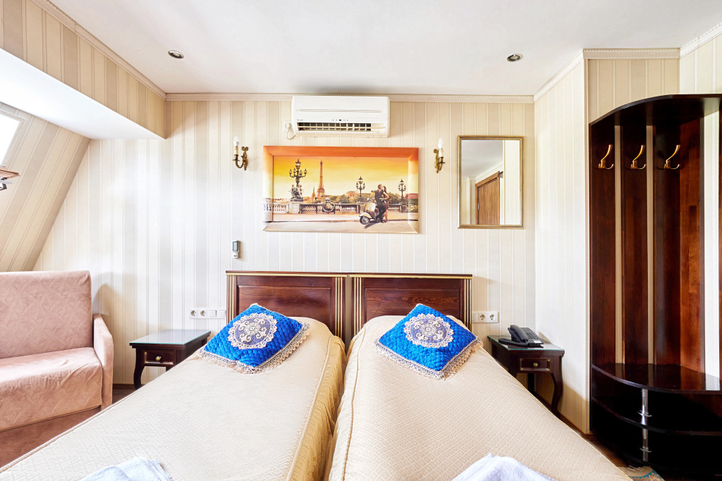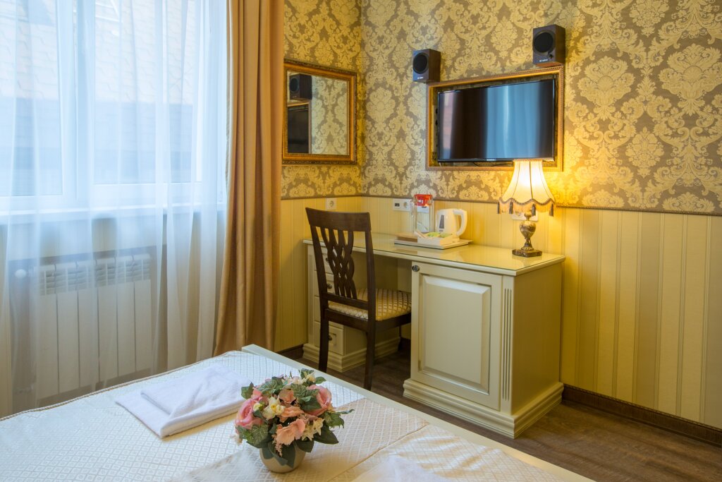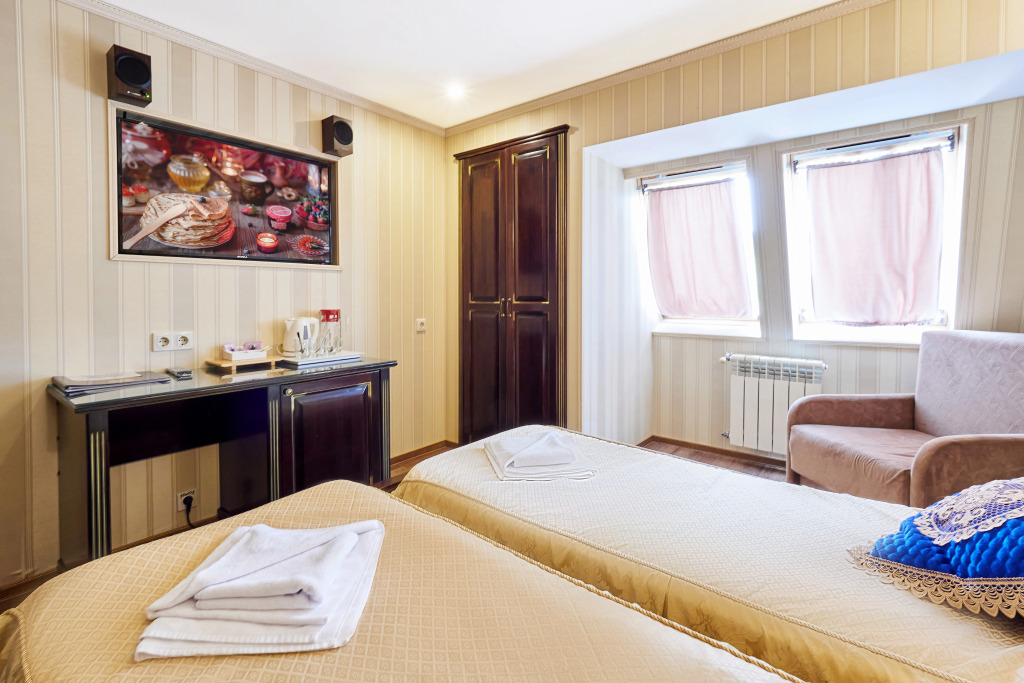Корпуса «Поручик Ржевский» и «Наташа Ростова» находятся на расстоянии 100 м друг от друга. К услугам гостей отель предлагает 31 номер в различных категориях. Во всех номерах: система климат-контроля, телевизор, беспроводной доступ в интернет, сейф, фен, тапочки. В номерах повышенной комфортности предлагаются дополнительные удобства и услуги.