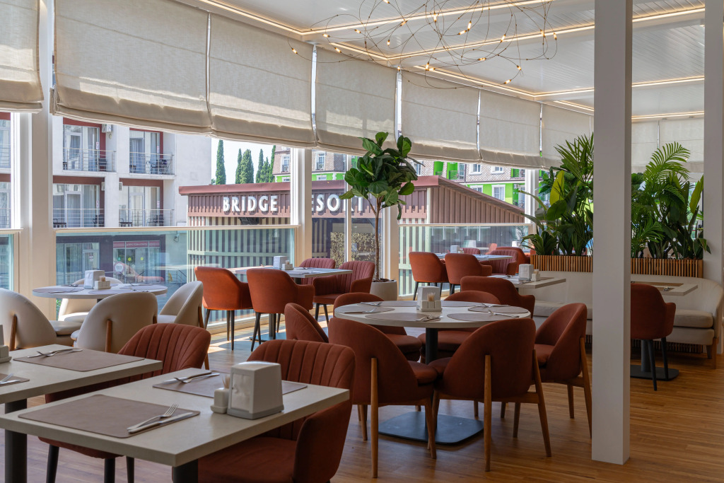 Санаторно-курортный комплекс «Bridge Resort» располагает 700 просторными номерами с балконами, в каждом из которых есть кондиционер, телевизор с плоским экраном, сейф и минибар.