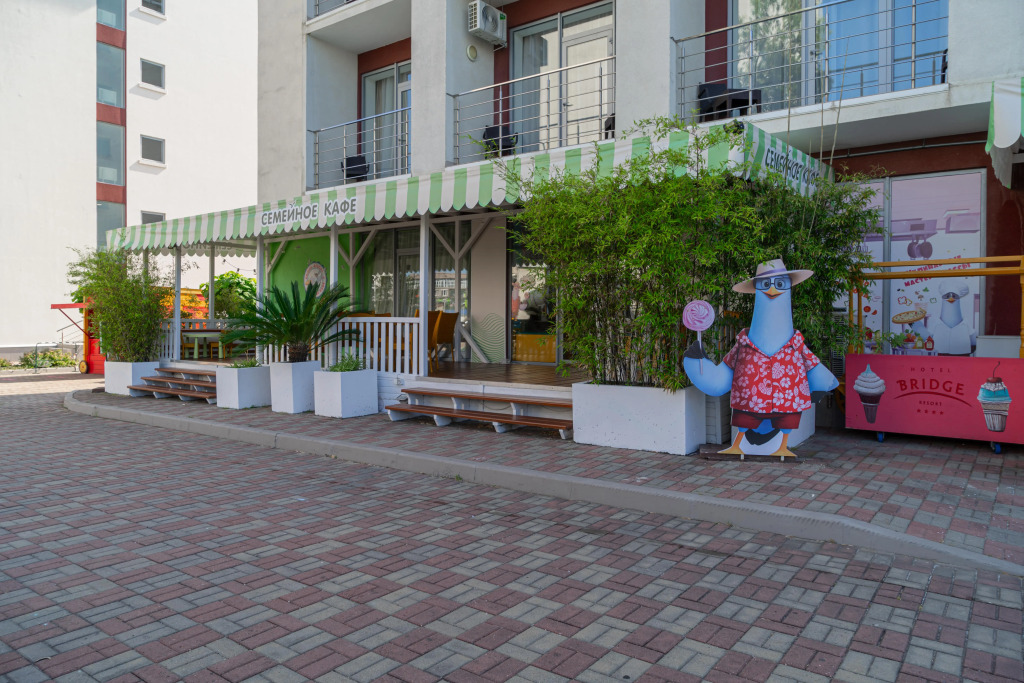 Санаторно-курортный комплекс «Bridge Resort» расположен в центре Адлера, в 10 минутах езды от Олимпийского кластера. Расстояние до международного аэропорта Сочи составляет 12 км. В пешей доступности находятся черноморские пляжи.