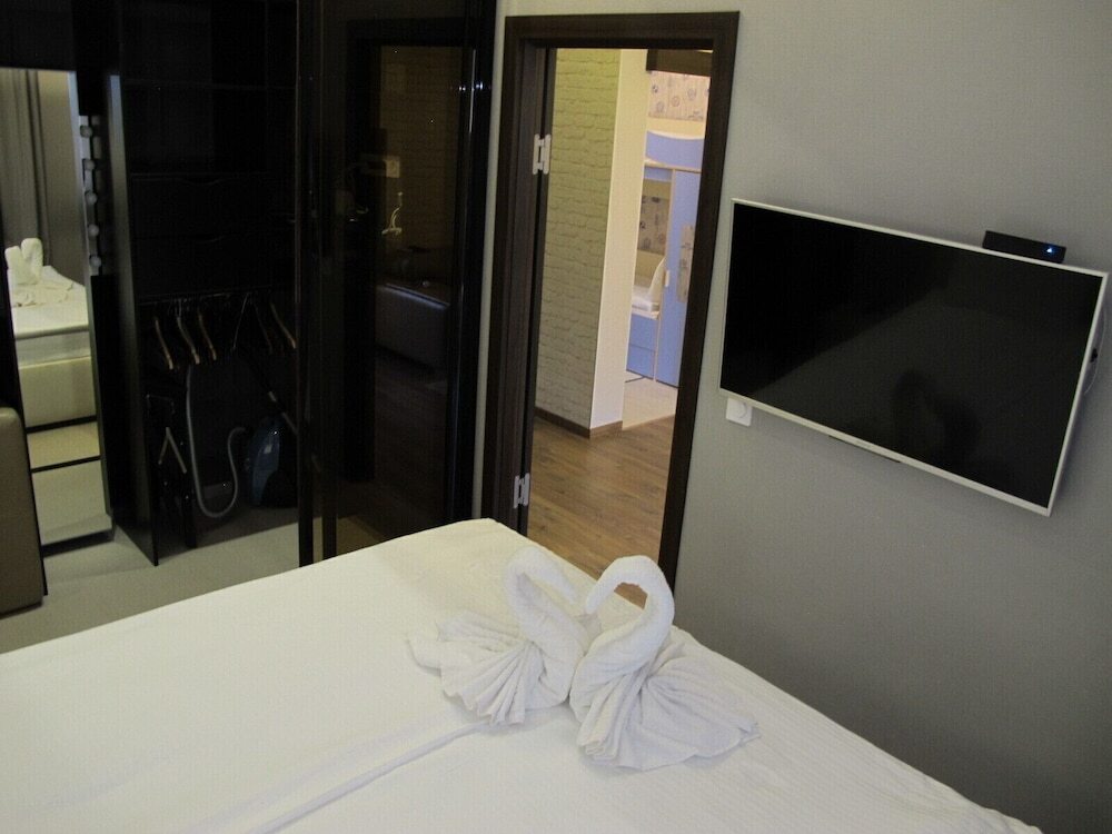 Здесь будем баловать себя водными процедурами: есть крытый бассейн. Сотрудники апартаментов по запросу организуют гостям трансфер.