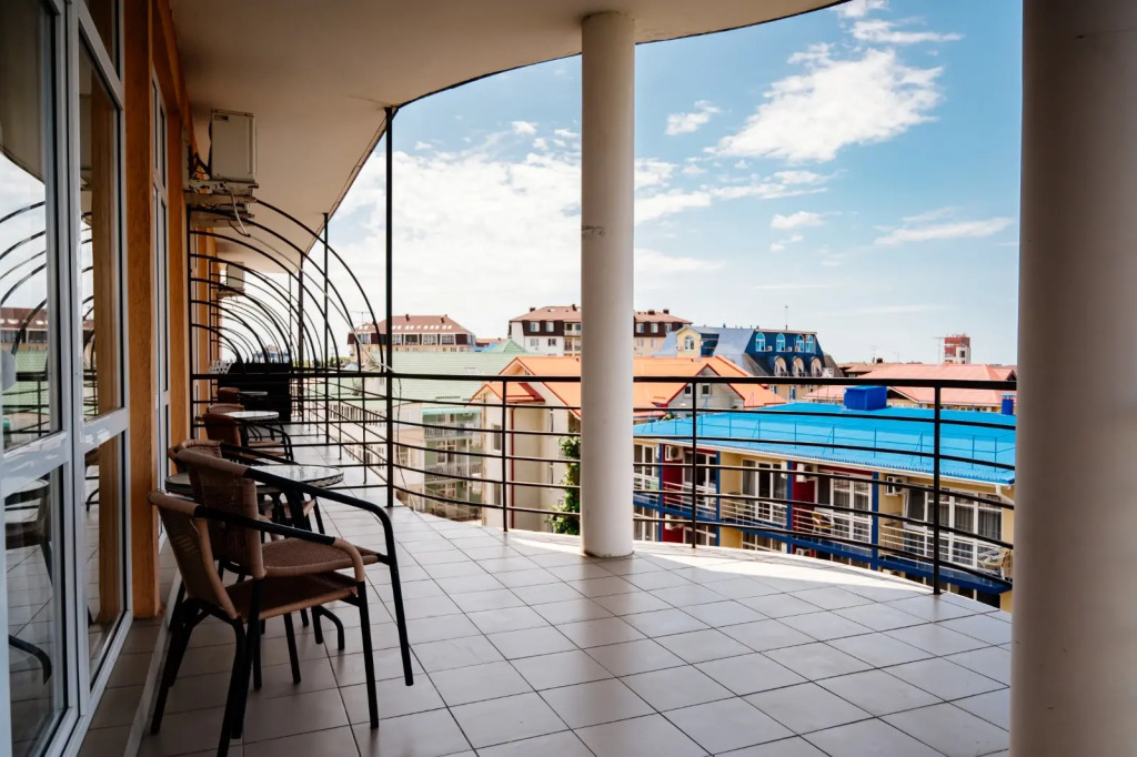 К услугам гостей: бассейн с шезлонгами, двор с зоной отдыха и детской площадкой.