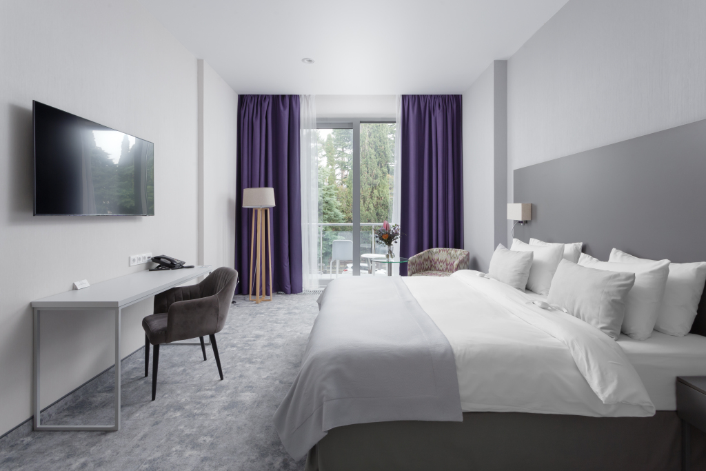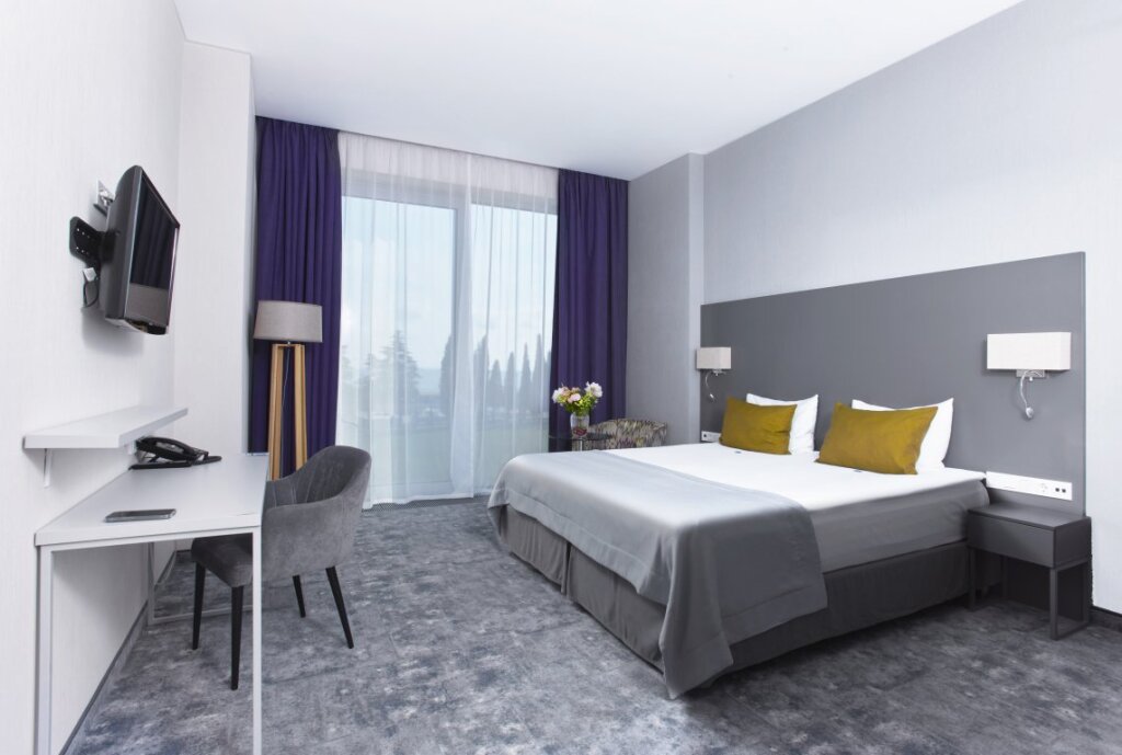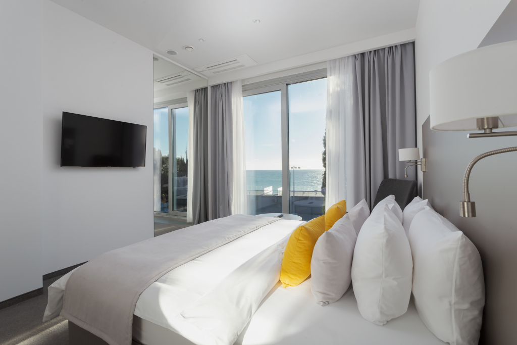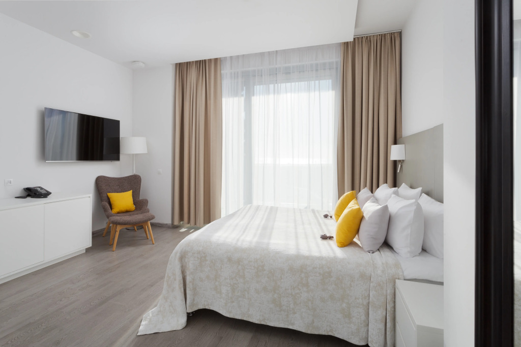 Номера оборудованы кондиционером, мини-баром и телевизором с плоским экраном, письменным столом, сейфом. В номерах категории «Студио» имеется мини-кухня. Собственная ванная комната с душем укомплектована халатами, тапочками, феном и бесплатными туалетно-косметическими принадлежностями. Из окон ряда номеров открывается вид на море.