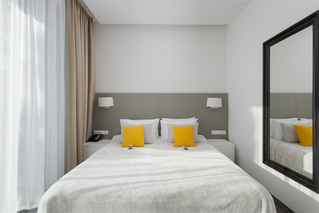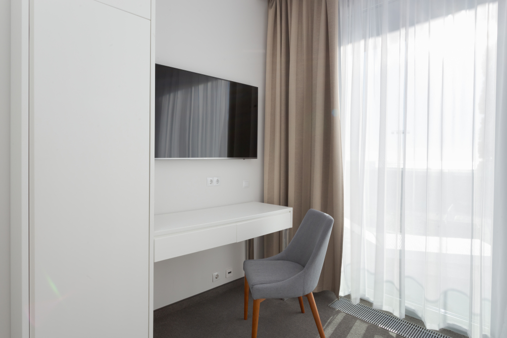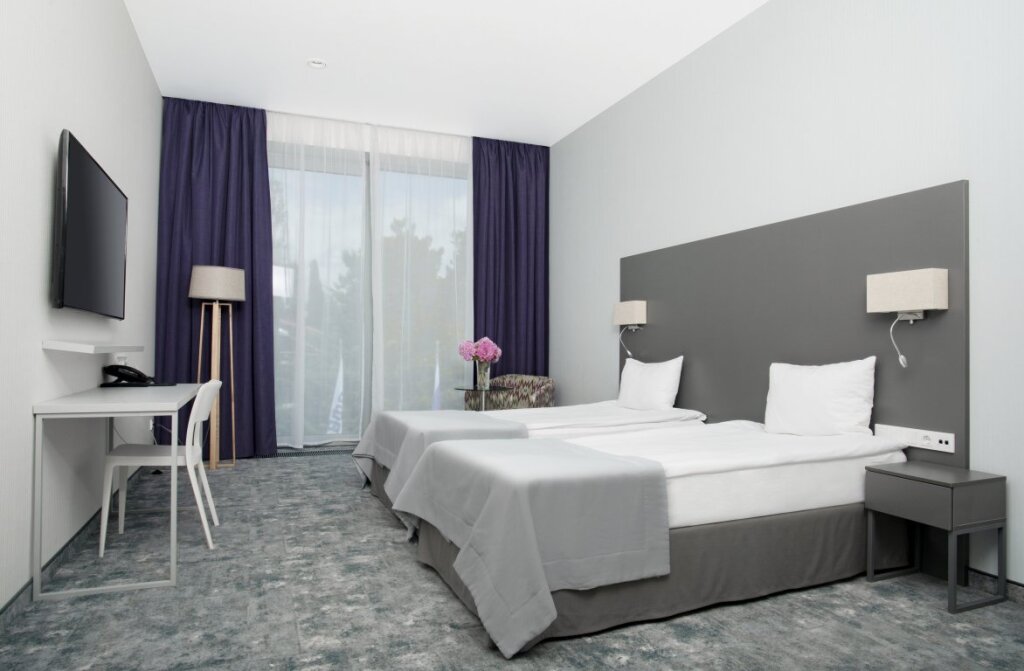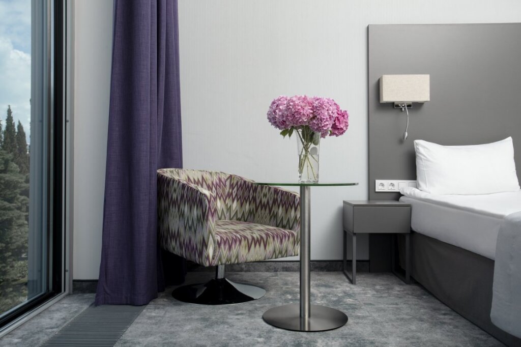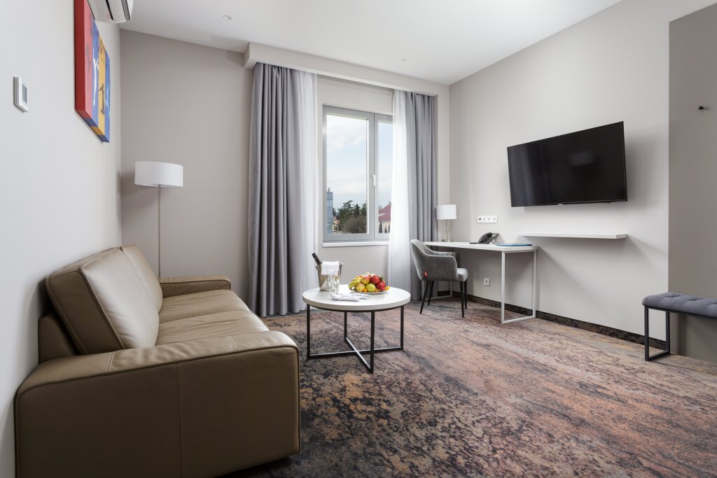 Номера оборудованы кондиционером, мини-баром и телевизором с плоским экраном, письменным столом, сейфом. В номерах категории «Студио» имеется мини-кухня. Собственная ванная комната с душем укомплектована халатами, тапочками, феном и бесплатными туалетно-косметическими принадлежностями. Из окон ряда номеров открывается вид на море.