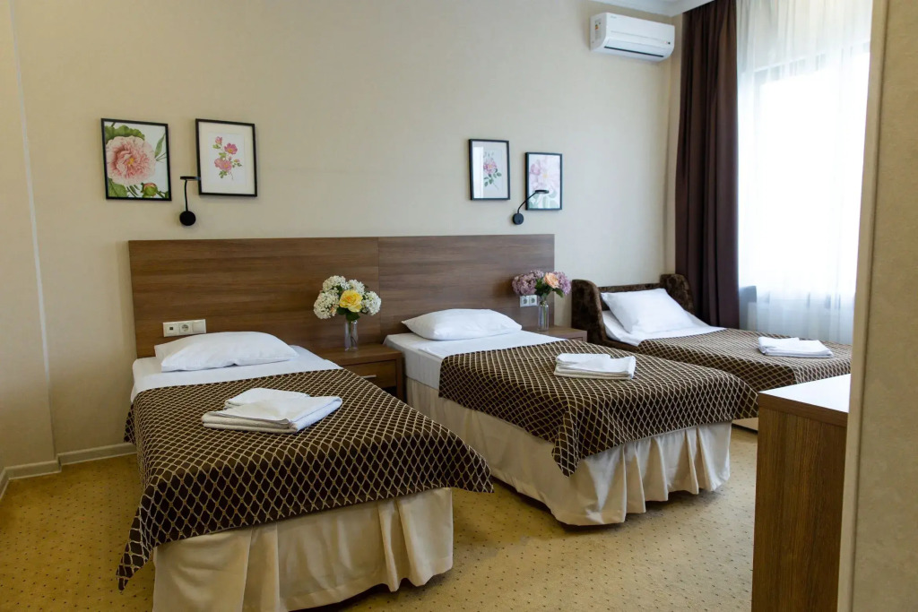 Уютный отель. Номер просторный и уютный. Везде чистота. Расстояние до пляжа - метров 300. Вблизи супермаркеты, сувенирные лавочки, кафе, рестораны, столовые.