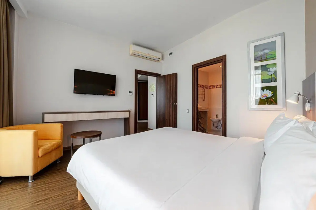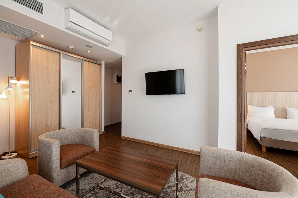 В номере гостей ждут телевизор. Оснащение зависит от выбранной категории номера.
