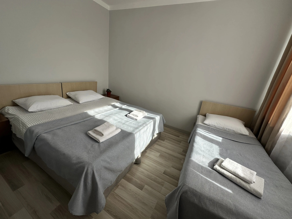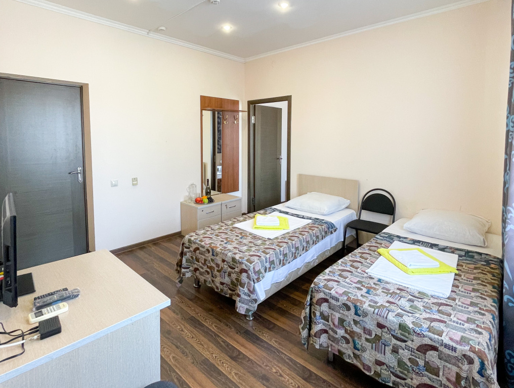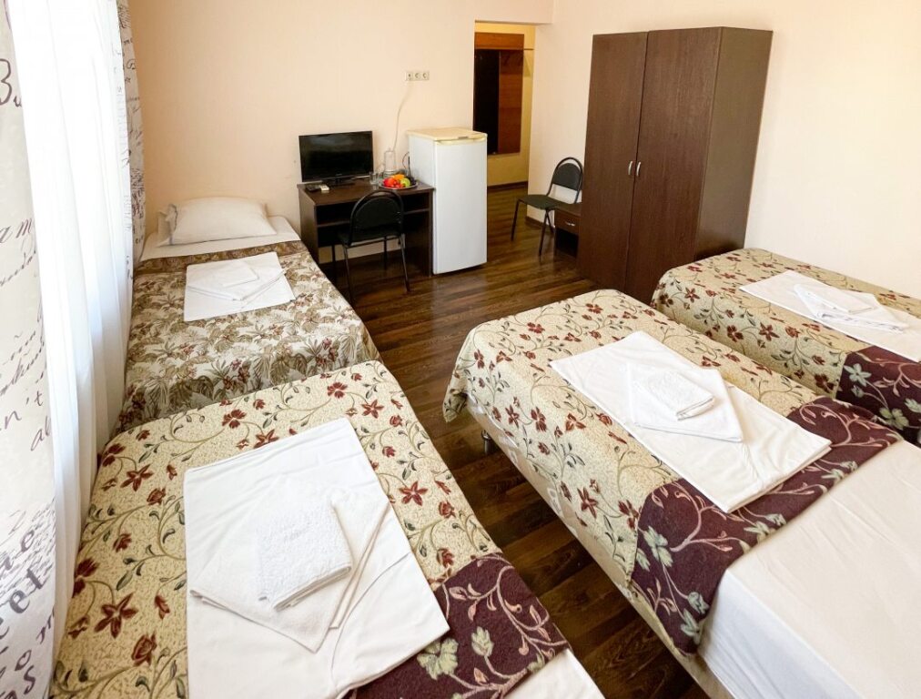 Кровати были просто ужасные, разваленные, холодильник просто ужас, ванная вообще страшная, даже принимать душ не стали, номер прям совковый, хотя девочки при заселении перепутали нашу бронь и поселили, как они считают, в номер лучшей категории