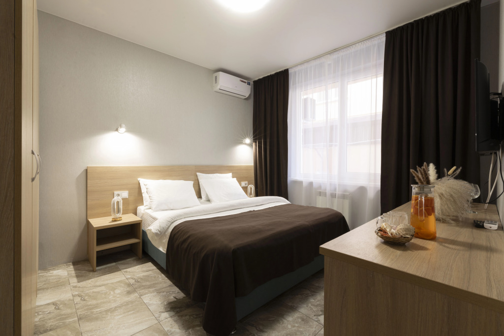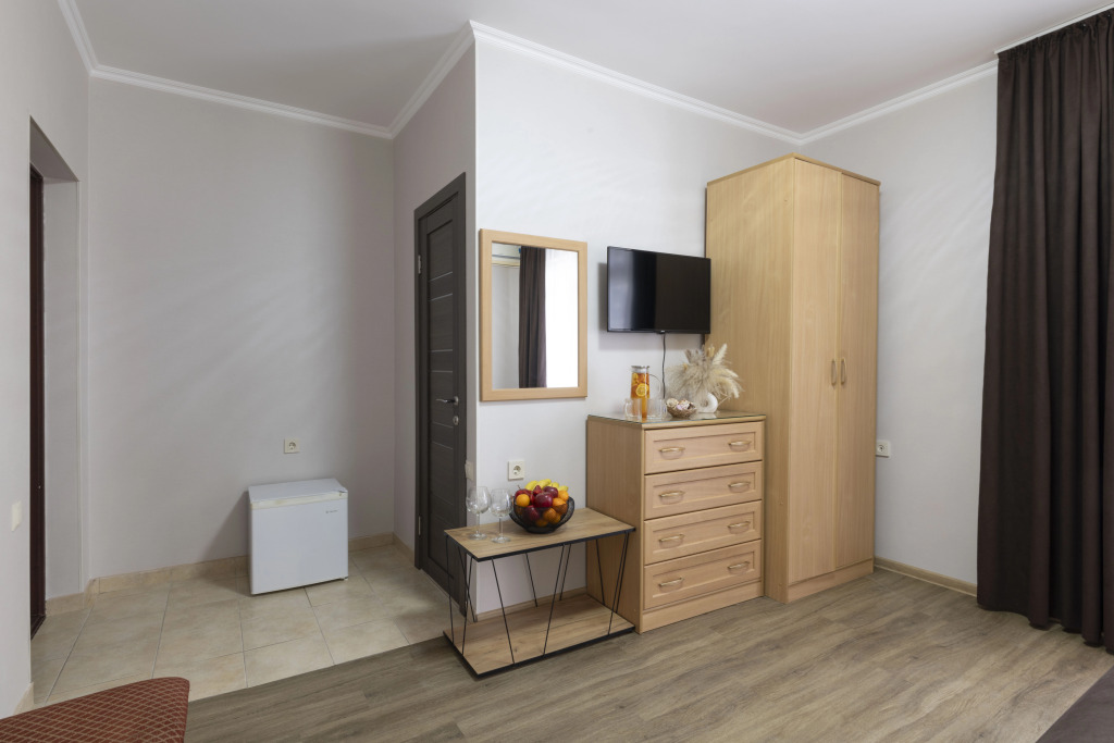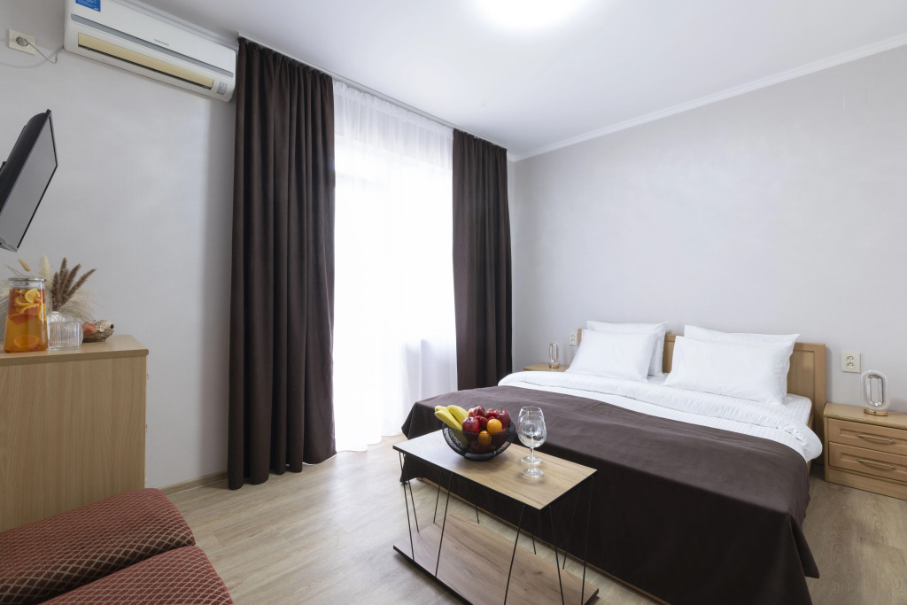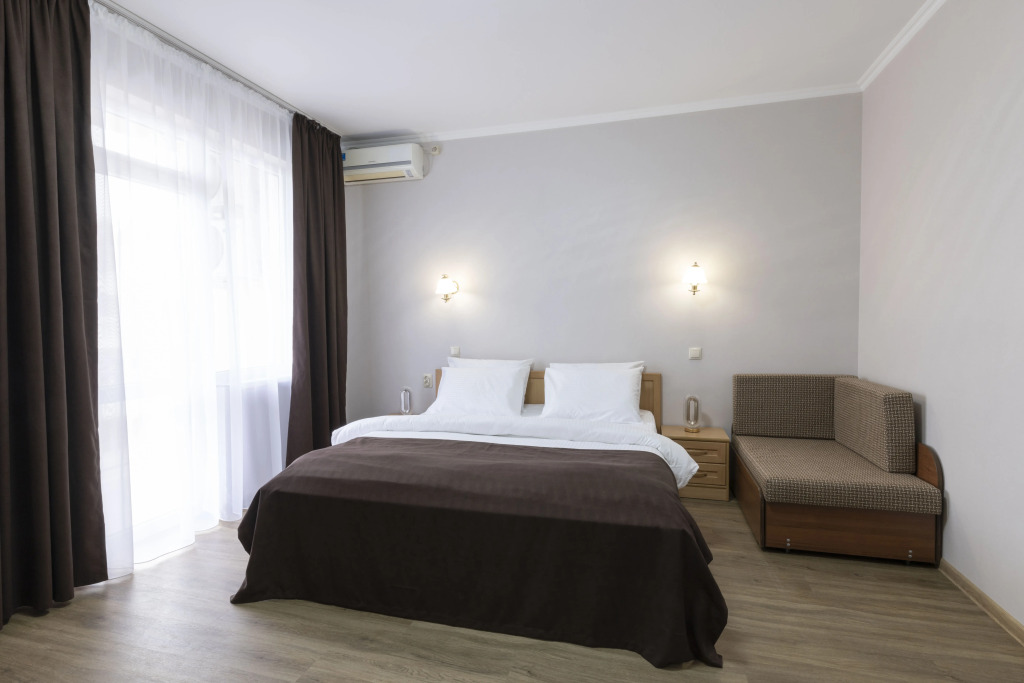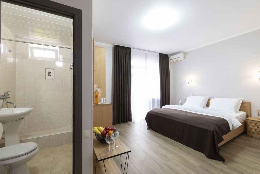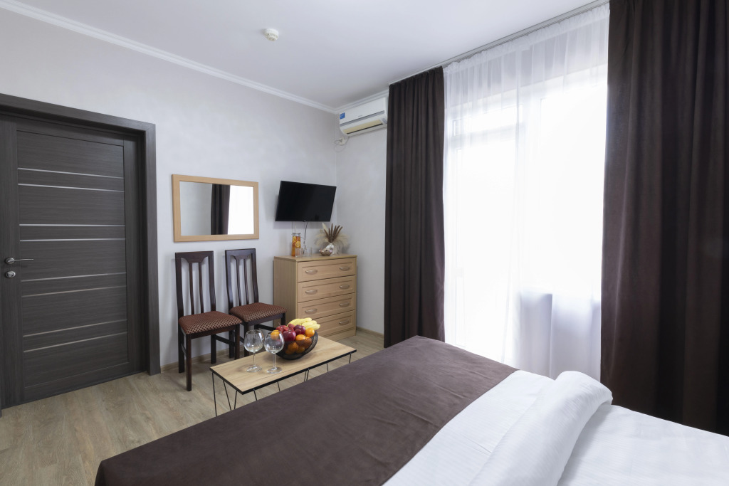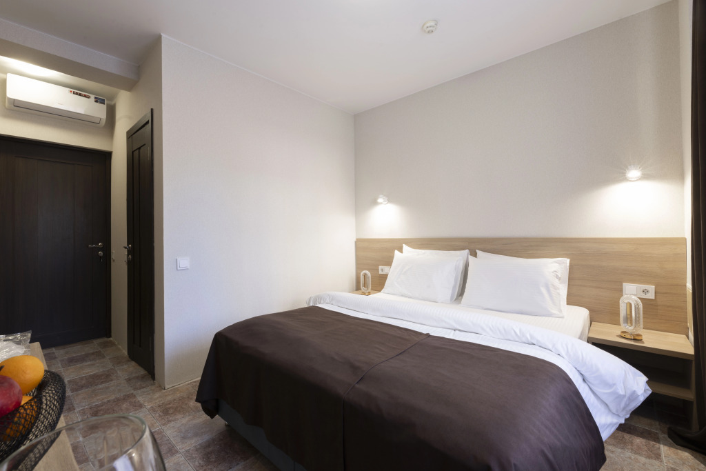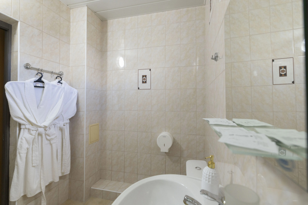 Номер уютно обставлен и оснащён необходимым, чтобы отдохнуть после долгого и насыщенного дня. Имеются телевизор и халат. Оснащение зависит от выбранной категории номера.