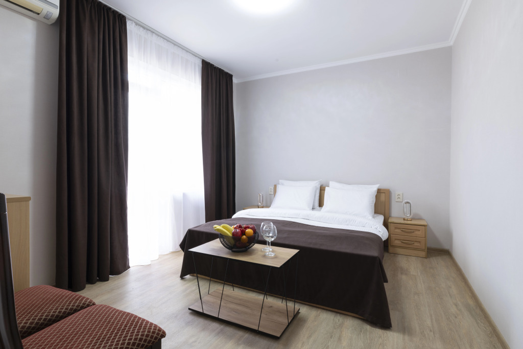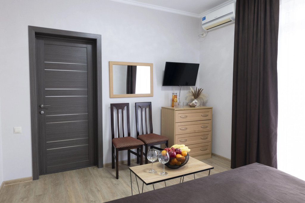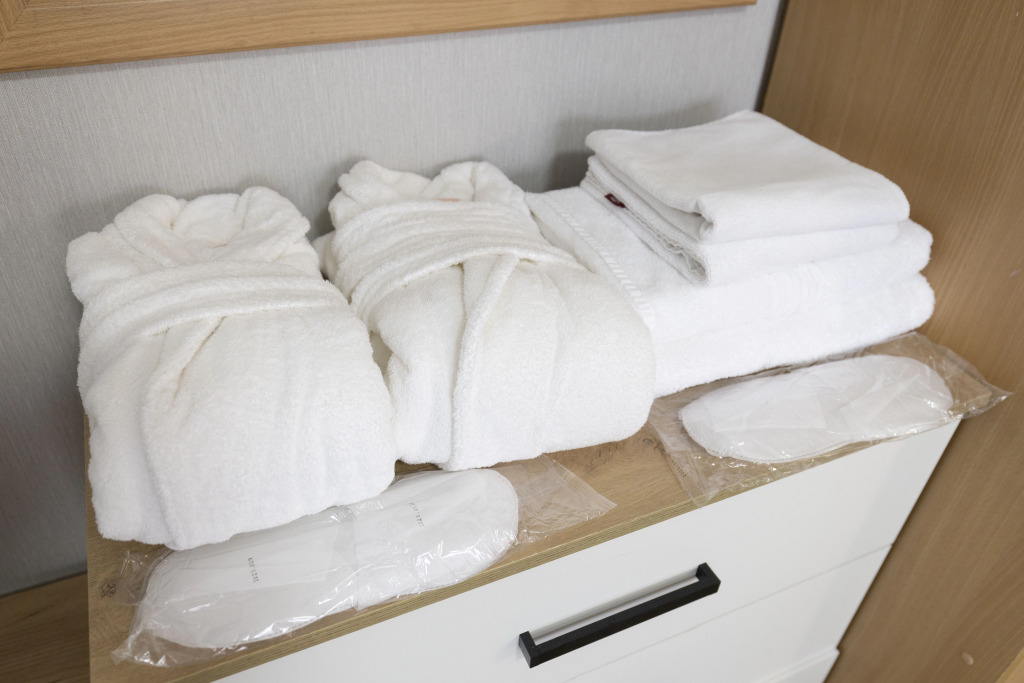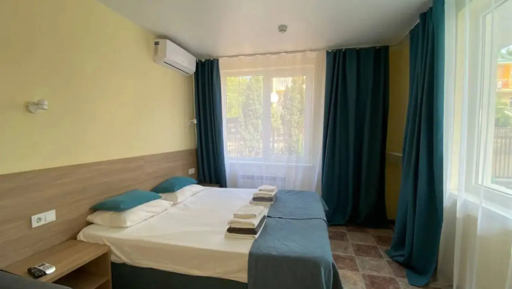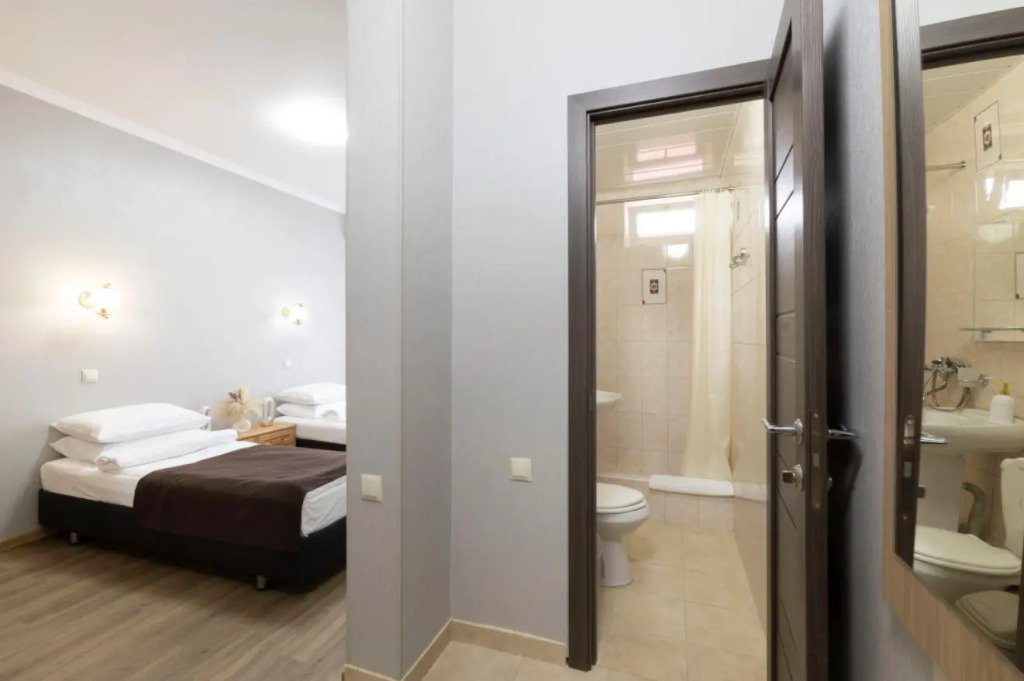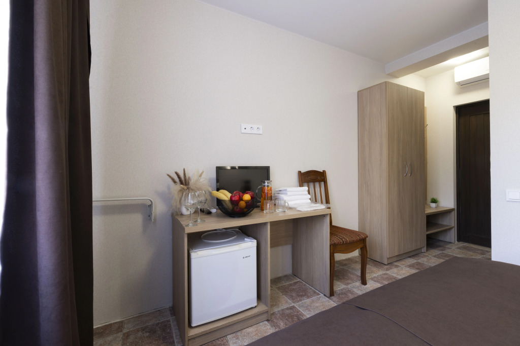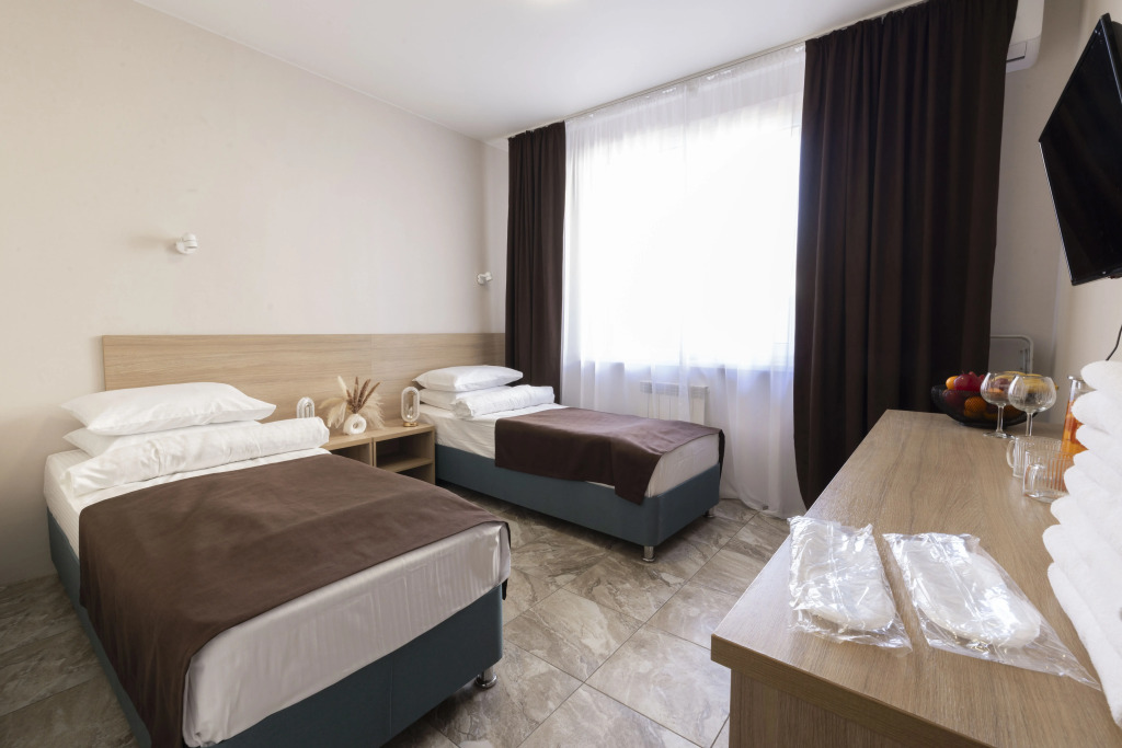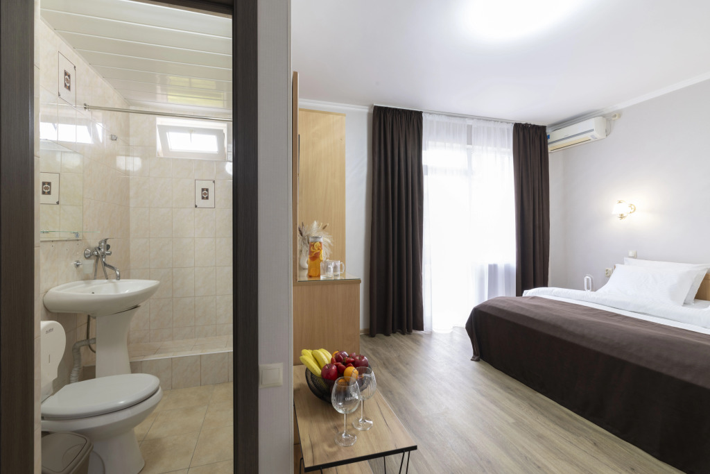 Номер уютно обставлен и оснащён необходимым, чтобы отдохнуть после долгого и насыщенного дня. Имеются телевизор и халат. Оснащение зависит от выбранной категории номера.