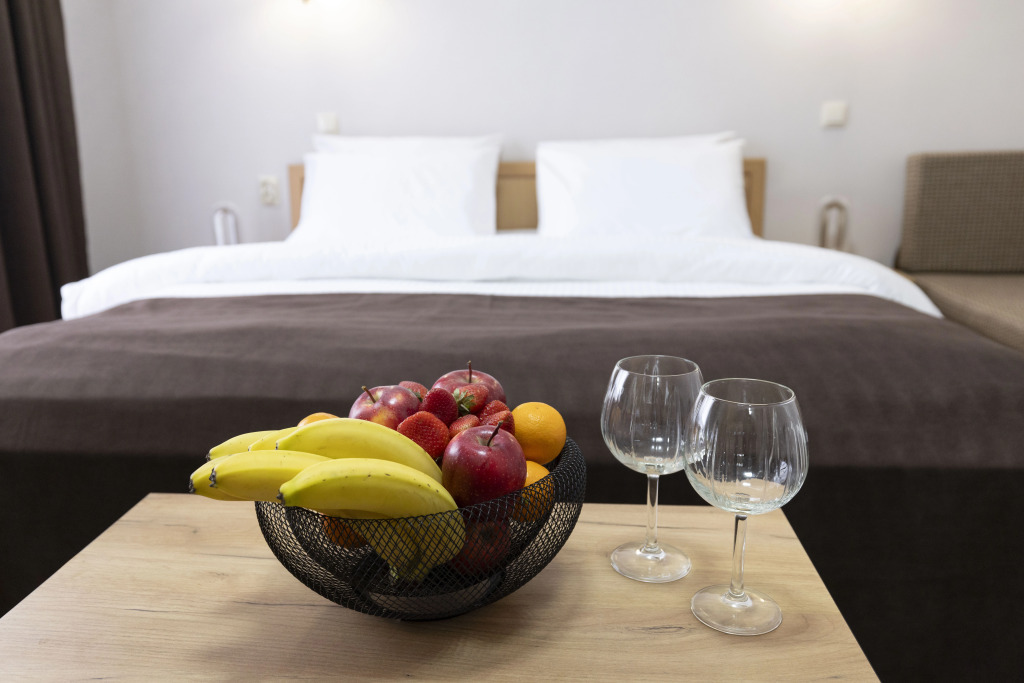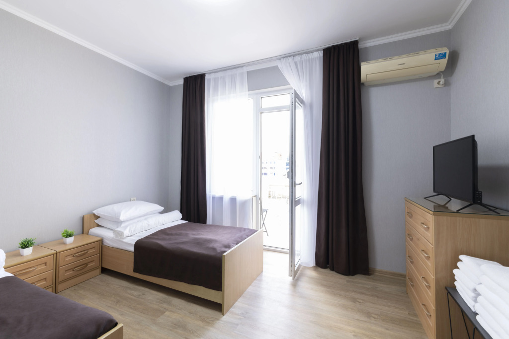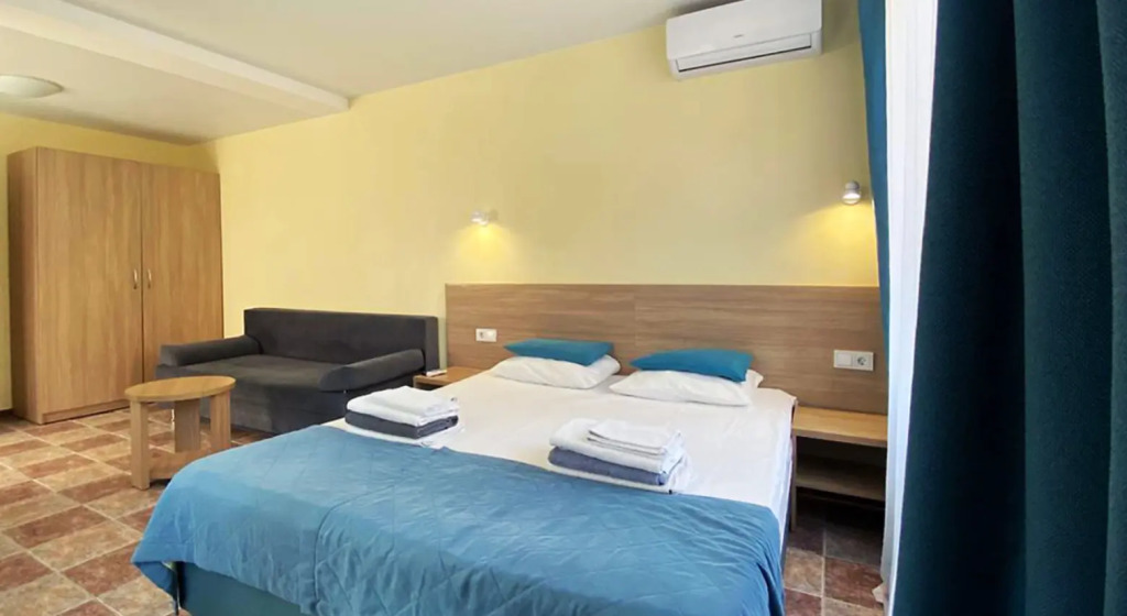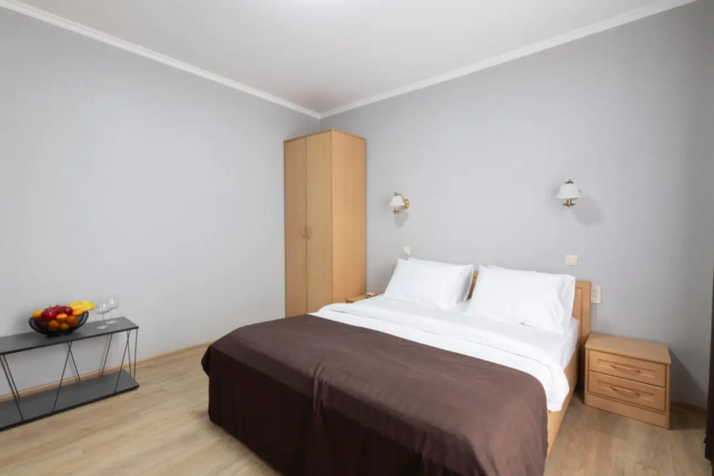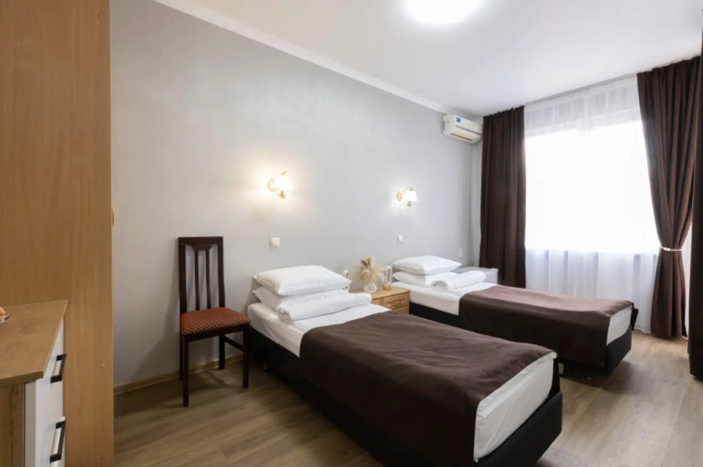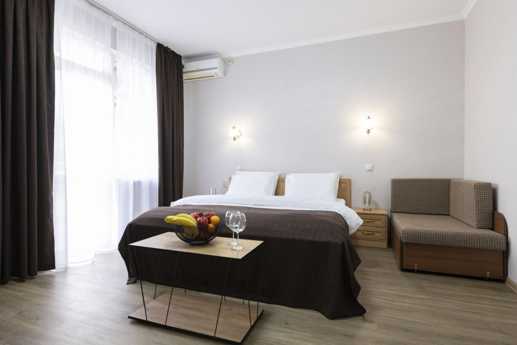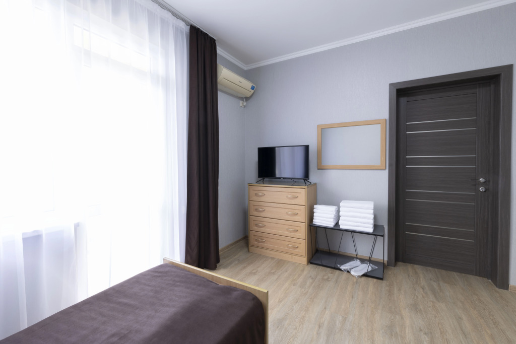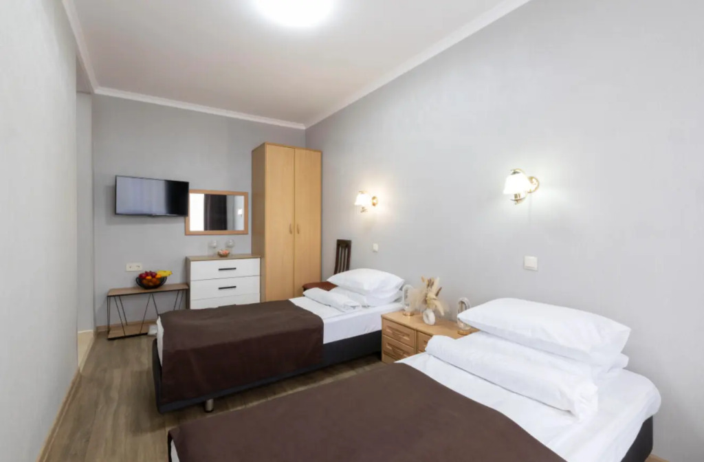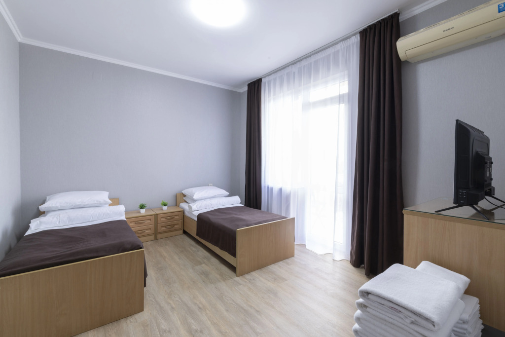 Номер уютно обставлен и оснащён необходимым, чтобы отдохнуть после долгого и насыщенного дня. Имеются телевизор и халат. Оснащение зависит от выбранной категории номера.