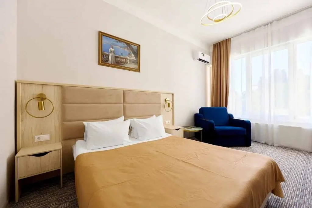 Номера всех категорий в комплексе оборудованы собственной ванной комнатой, кондиционером, телевизором, холодильником, мебелью, набором базовой посуды для напитков, средствами личной гигиены. Ванная комната в номере укомплектована бесплатными туалетно-косметическими принадлежностями. В некоторых номерах есть балкон с видом на море и лесопарковую зону.