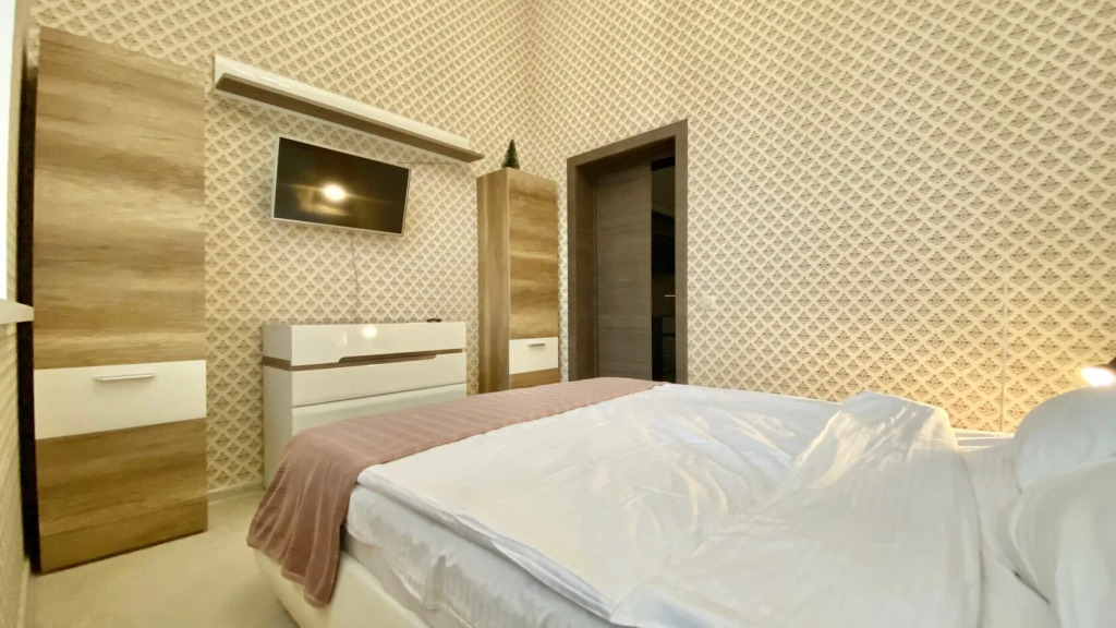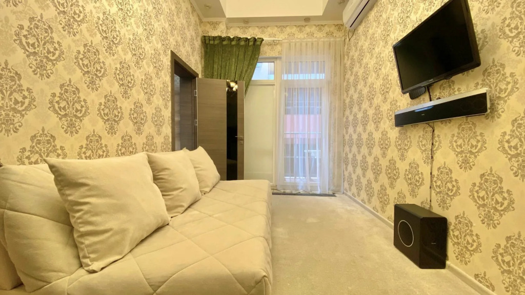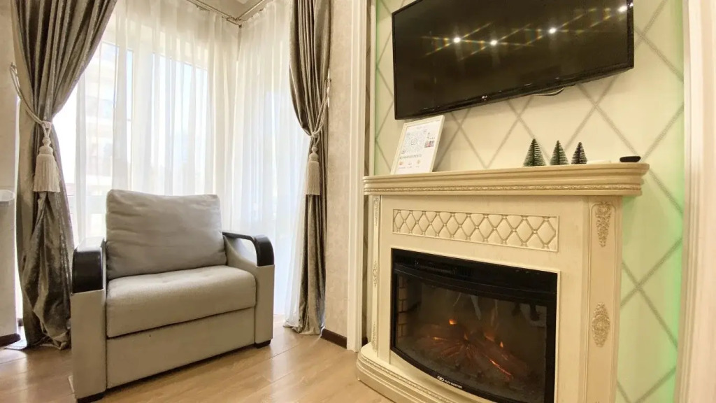 В номере вы найдёте телевизор. Оснащение зависит от выбранной категории номера.