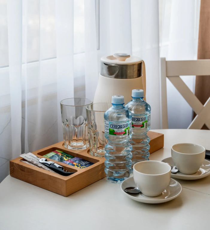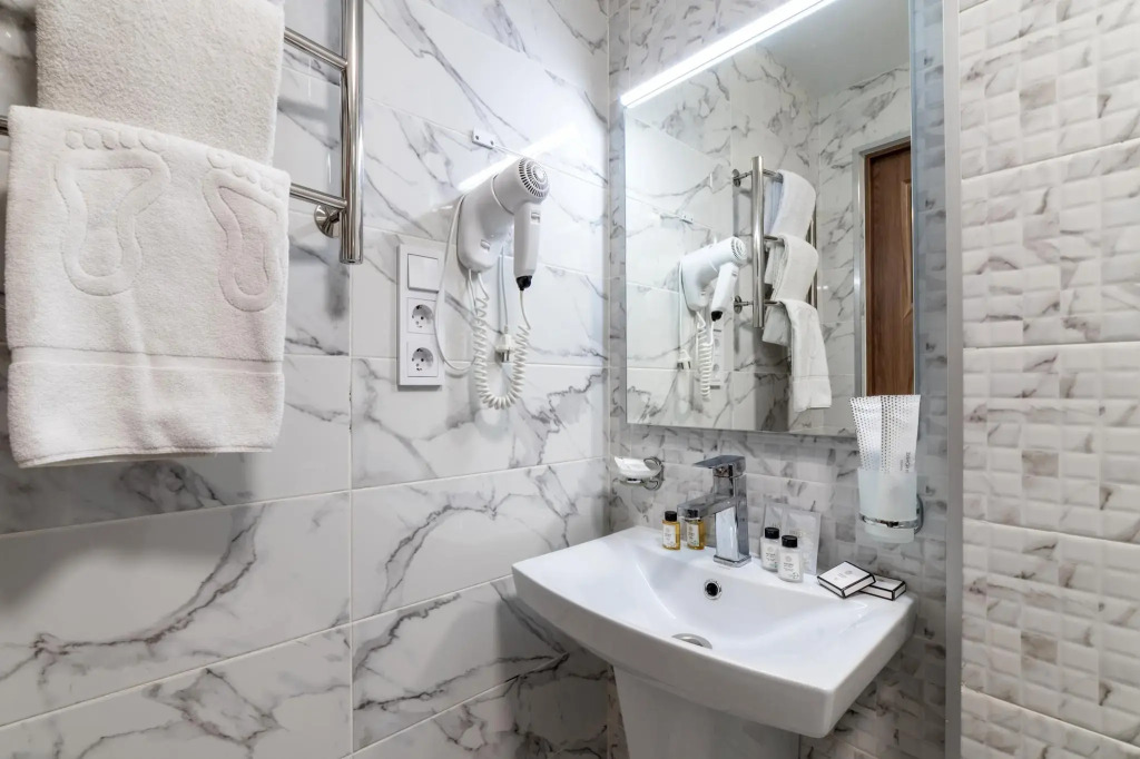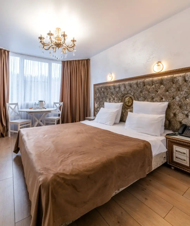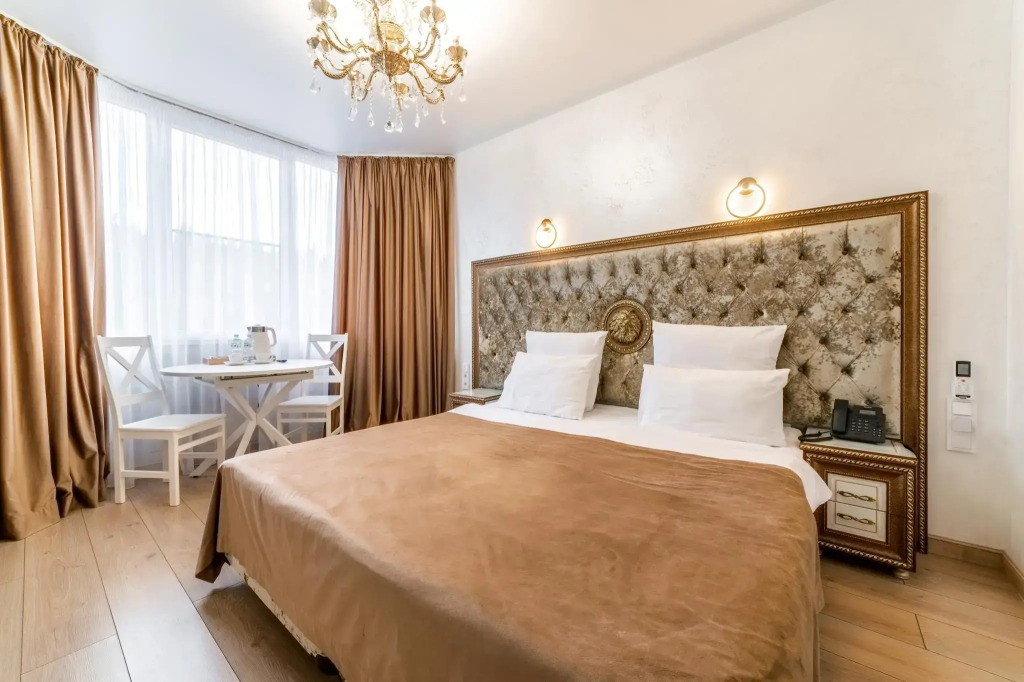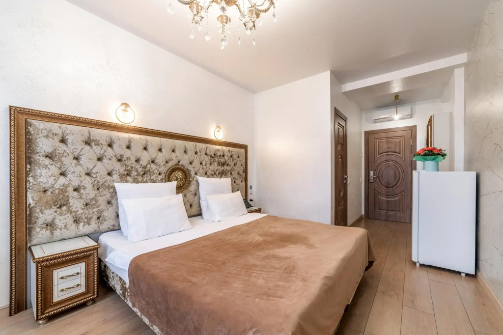 В номерах категорий: двухместный номер «Комфорт» с кроватью размера King-size, cтандартный двухместный номер с двуспальной кроватью, номер «Cтандарт» с балконом, «Улучшенный» номер, в качестве дополнительного места для третьего гостя предусмотрена раскладная кровать. У категории двухкомнатные апартаменты «Люкс» для четвертого и пятого гостя предусмотрены раскладные кровати.