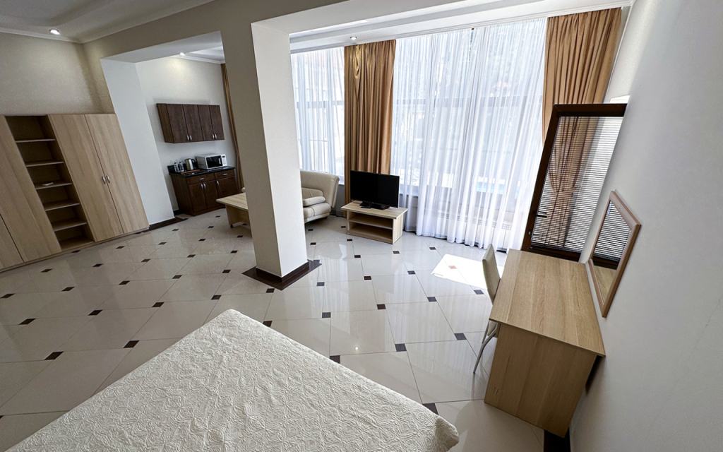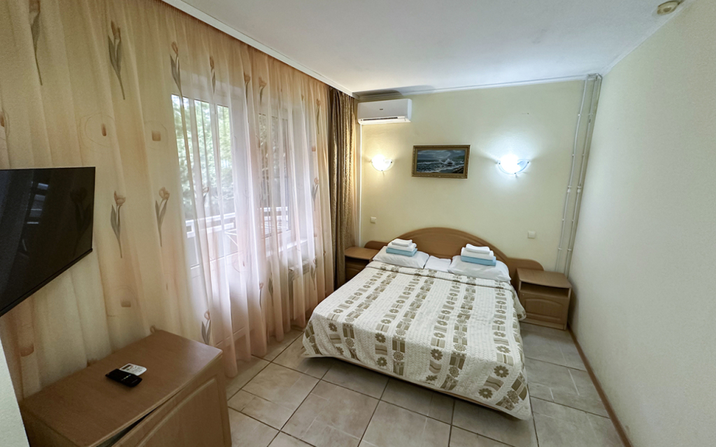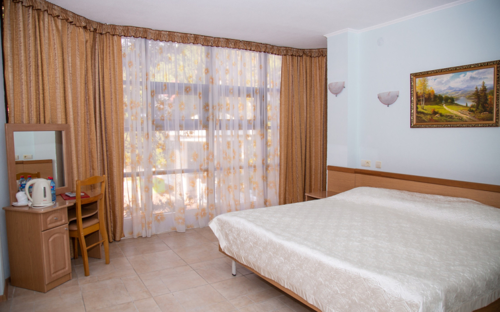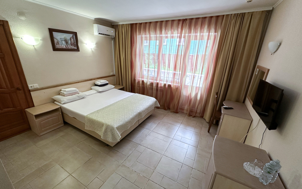 Чтобы вы могли отдохнуть после долгого дня, в номере есть телевизор и халат. Оснащение зависит от выбранной категории номера.
