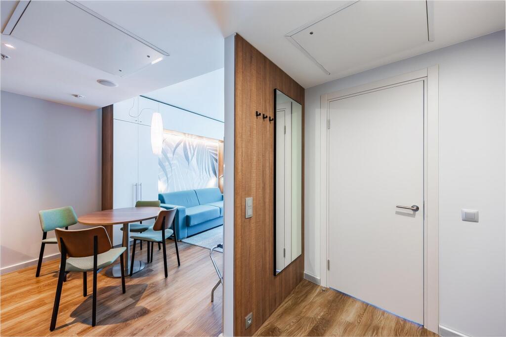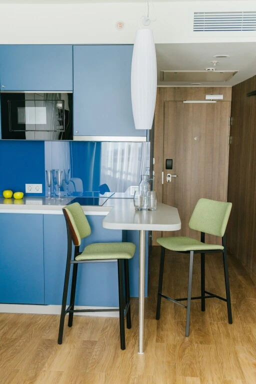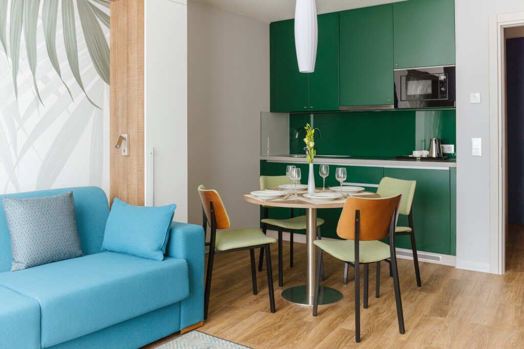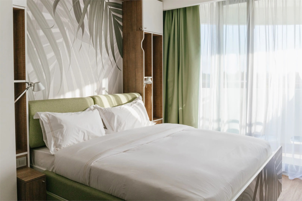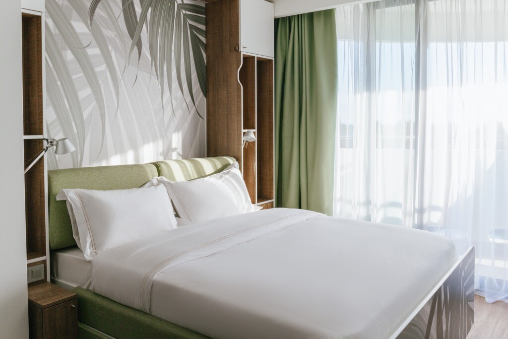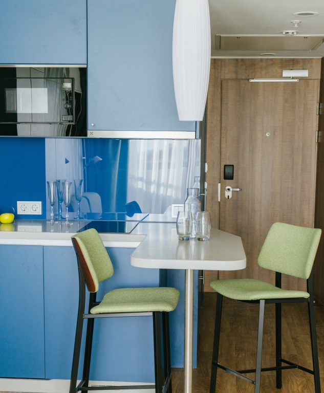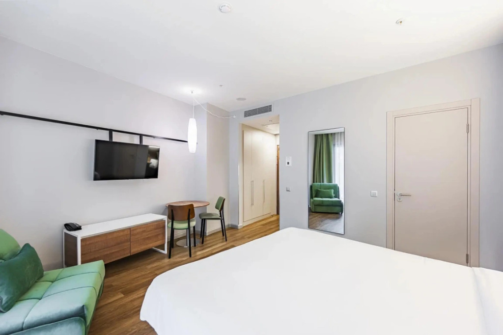 Отель располагает 458 апарт-номерами с собственной кухней, 1 конференц- залом и 3-мя переговорными, рестораном, барами, СПА с тренажёрным залом.