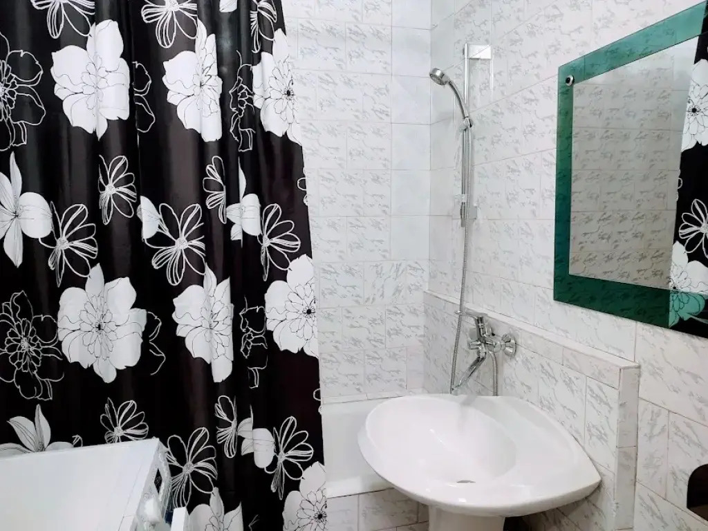 Квартира рассчитана на двух взрослых людей, снабжена всем бытовым и хозяйственным инвентарём для комфортного проживания гостей. На территории апартаментов работает бесплатный Wi-fi интернет.