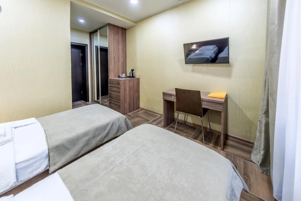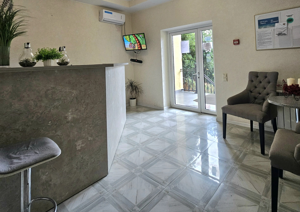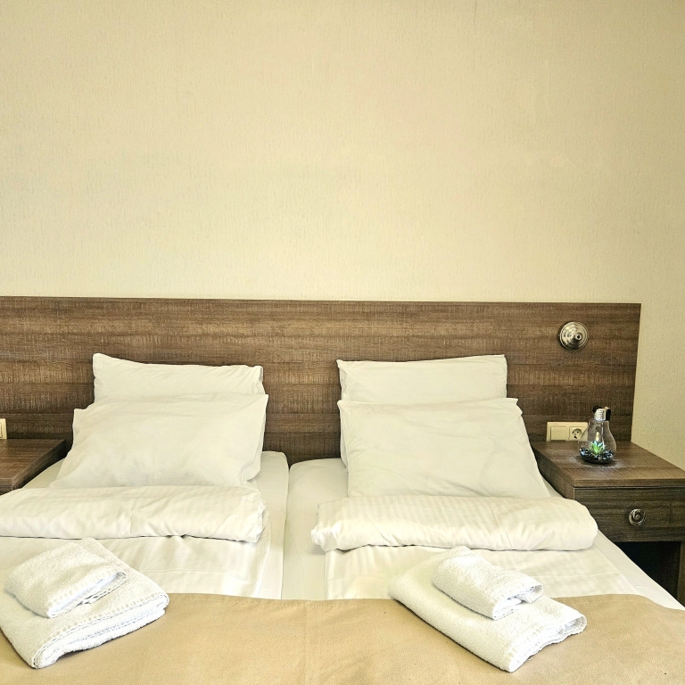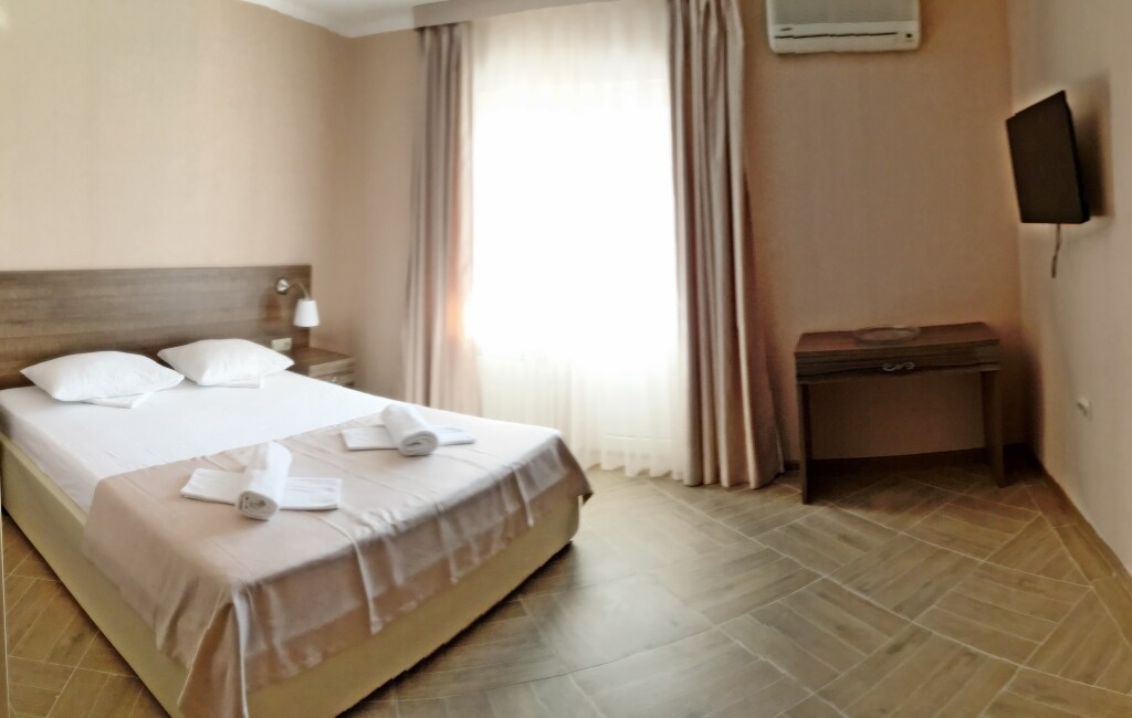 Отличное местоположение. До моря идти минут 7 до вокзала примерно 12. Порадовало наличие продуктовых магазинов рядом с отелем. Номер соответсвует своей цене , 1600 на двоих ). Отзывчивый и приветливый персонал, заселили раньше положенного времени , спасибо . Предоставляли возможность пользоваться своим зарядным устройством . Есть балкон. Порадовало наличие холодильника, чайника и фена . Вид из окна был на непонятные кусты, солнечные лучи практически не попадали в номер. При заселении обнаружили в номере чашки с кофейным осадком. Одну чашку помыли сами, вторую попросили поменять . На верхней полке в шкафу лежала коробка из под печенья , видимо, ещё предыдущие гости оставили ( не удивлюсь, что она до сих пор там ) . Очень удивило, что за 4 ночи ни разу не поменяли постельное белье и полотенца, которые , кстати , с дырками )))) Не было горячей воды, только тёплая. В душе тупо стоишь и мёрзнешь, а потом вытираешься вечно сырым и грязным полотенцем ))) Кондиционер до ужаса грязный!!!!! Так и не смогли его включить , может быть пульт не подходил, не знаю. Очень замученный чайник. Вся пластмасса высохла, пожелтела и потрескалась , а внутри белая накипь , которая попадает в Ваш чай )))) не вижу проблемы хотя бы избавиться от накипи лимонной кислотой .