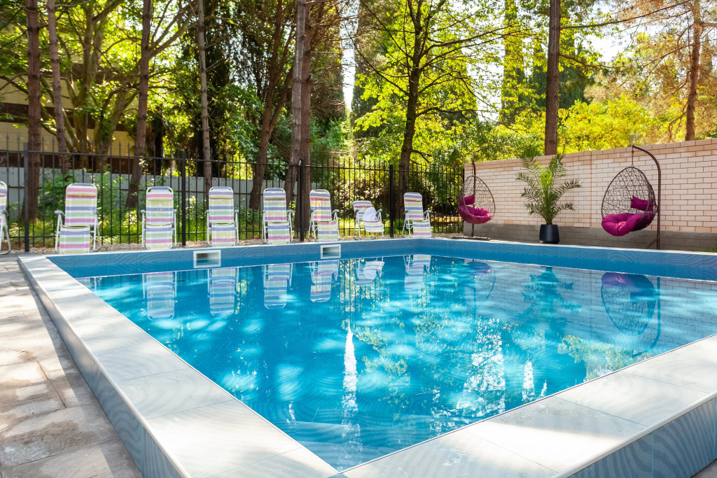 Своя парковка, детская площадка, зона для отдыха, всё оборудовано. Несмотря на то, что зима, в отеле не холодно, комфортно отдыхать. Есть также сауна с хамамом.