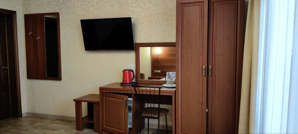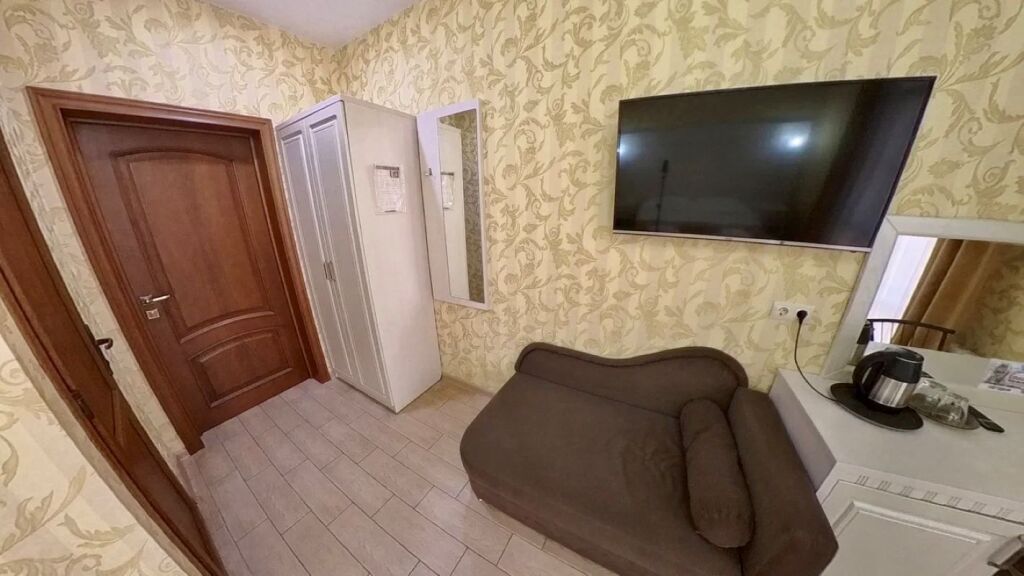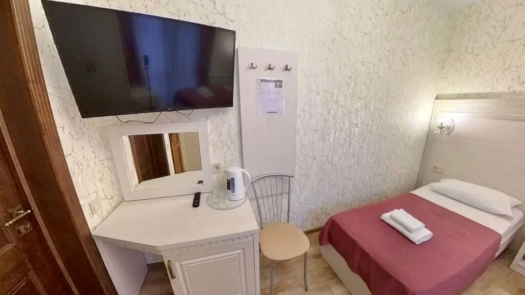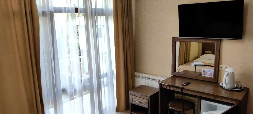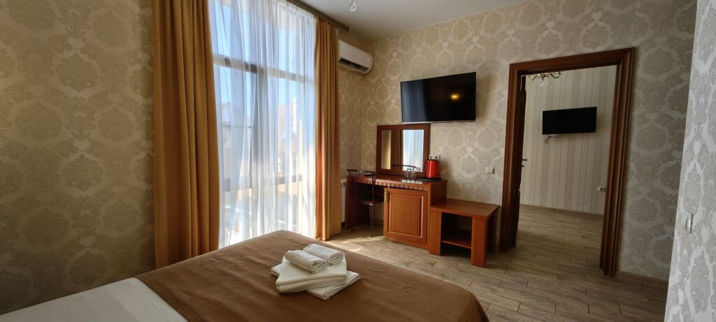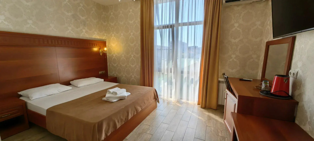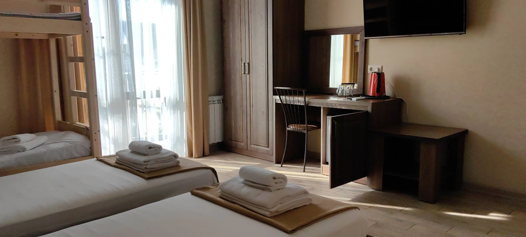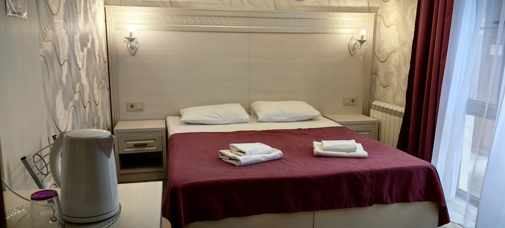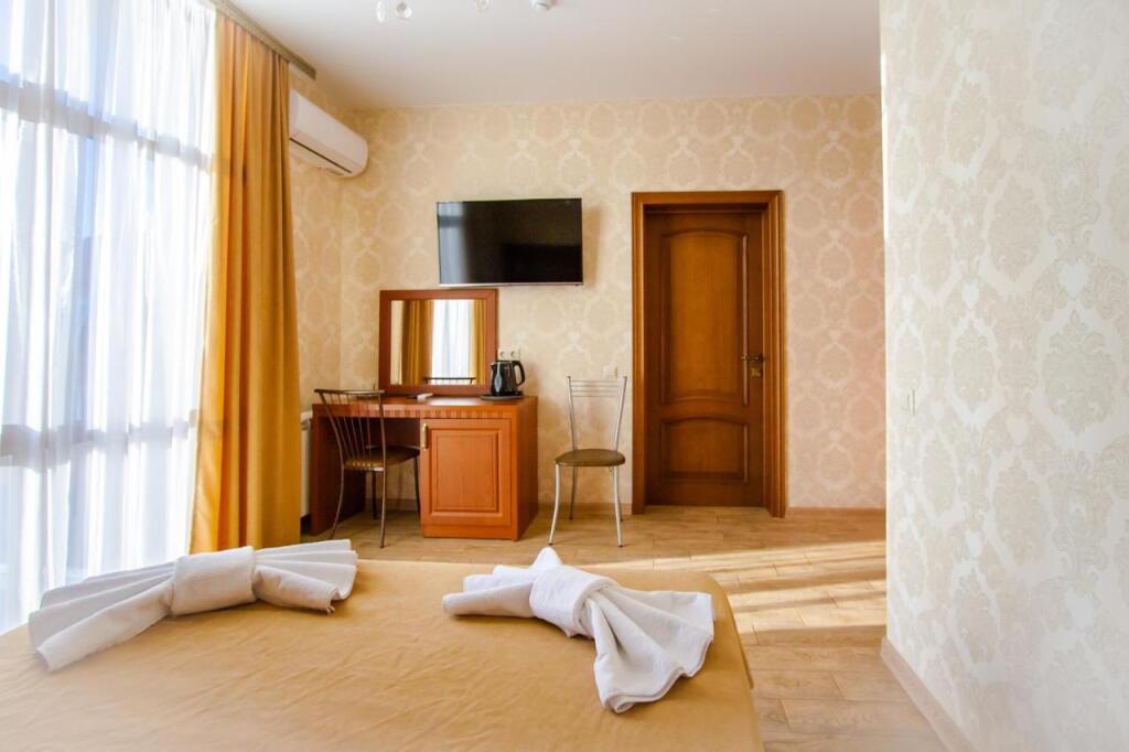 Номер уютно обставлен и оснащён необходимым, чтобы отдохнуть после долгого и насыщенного дня. Имеются телевизор и халат. Оснащение зависит от выбранной категории номера.